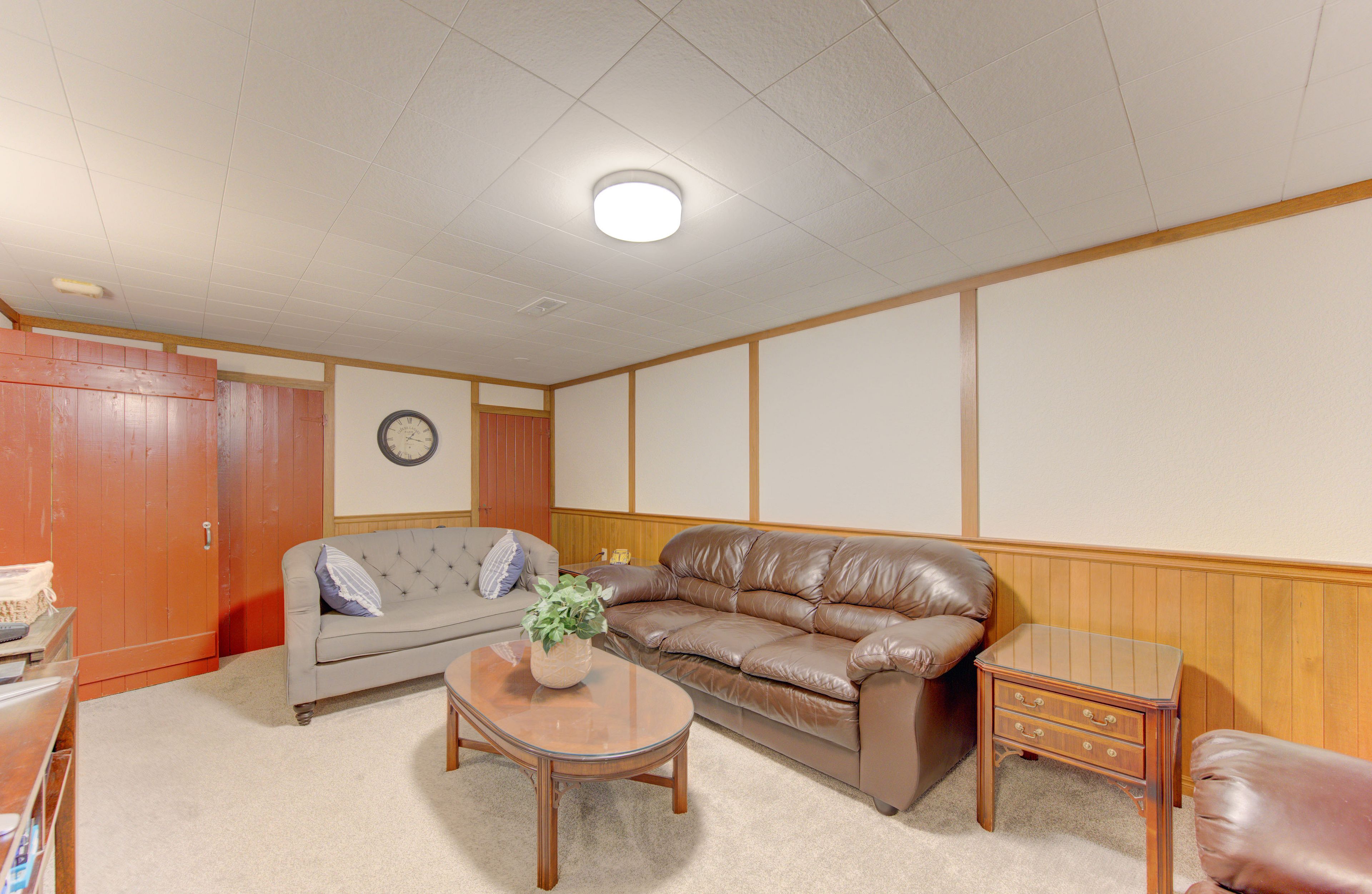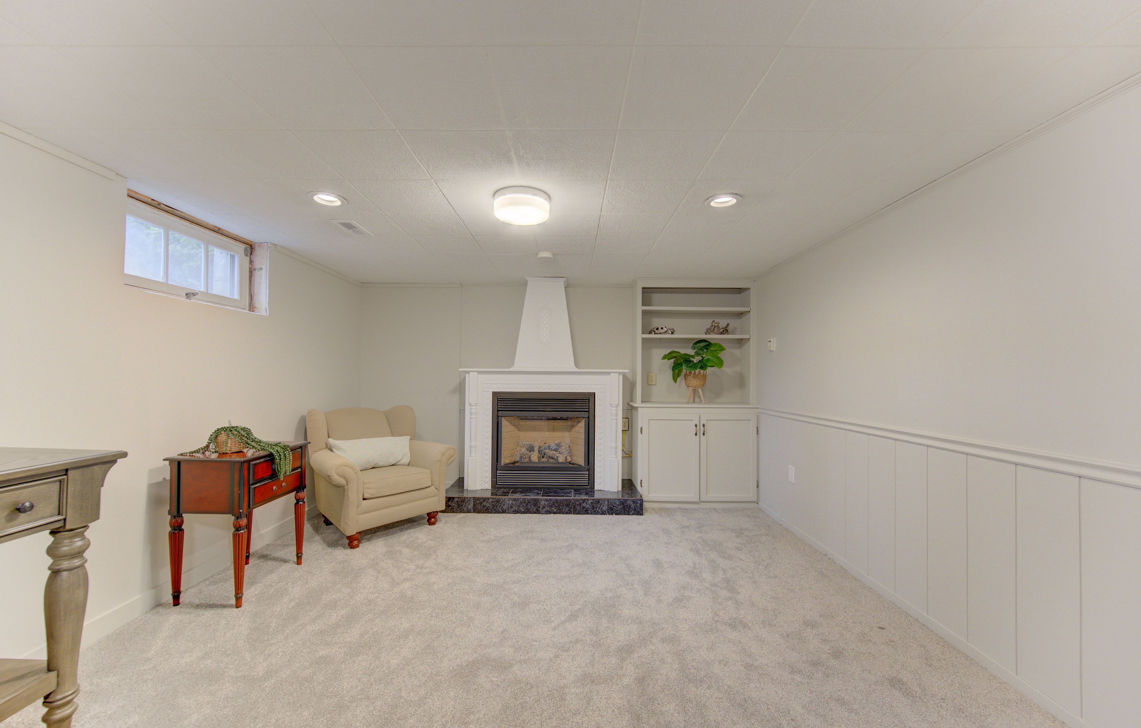 • Fully finished basement featuring a spacious rec room and cozy gas fireplace.