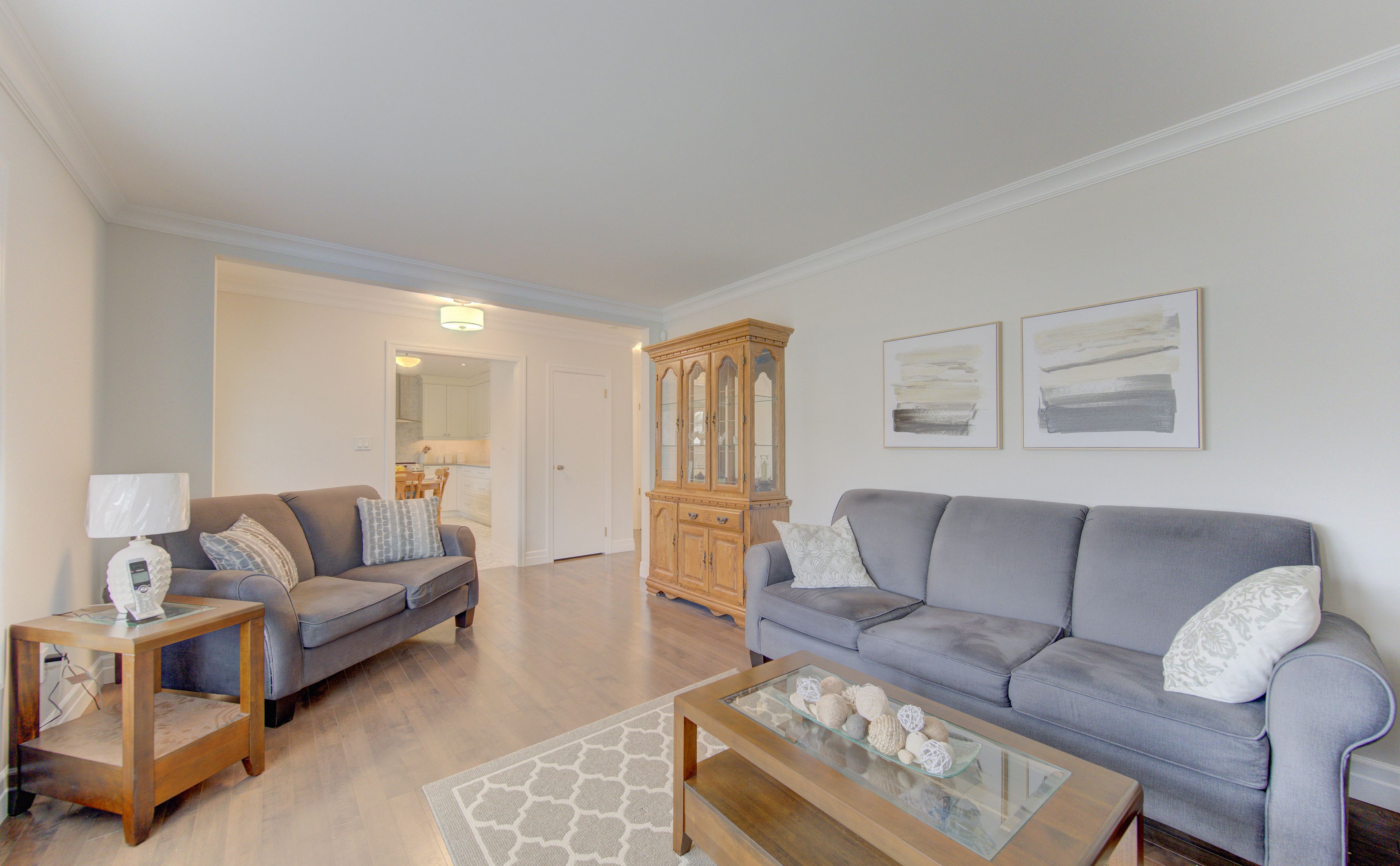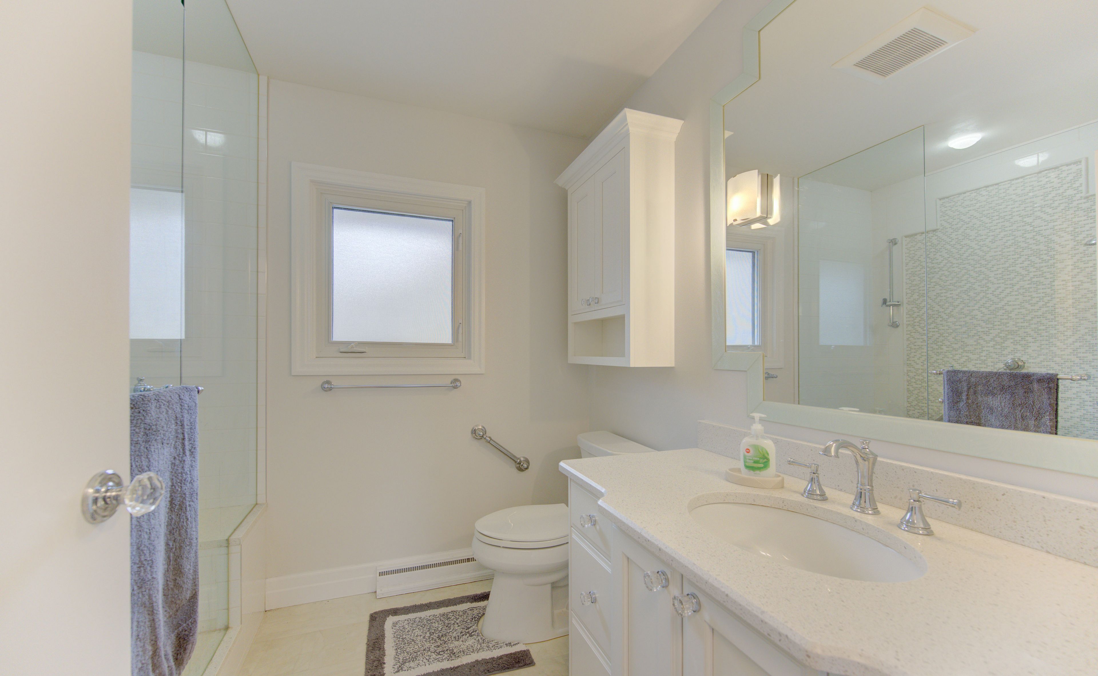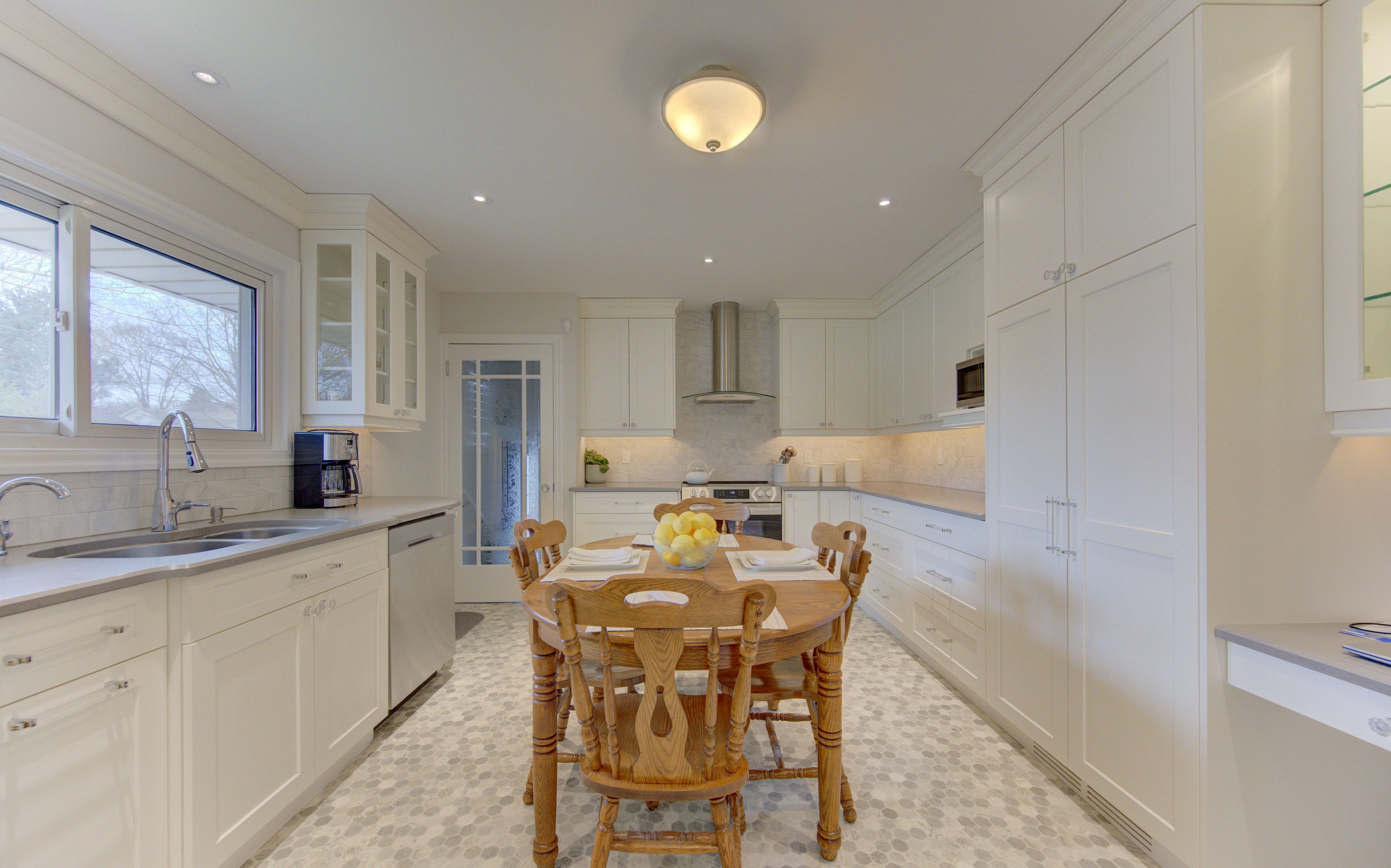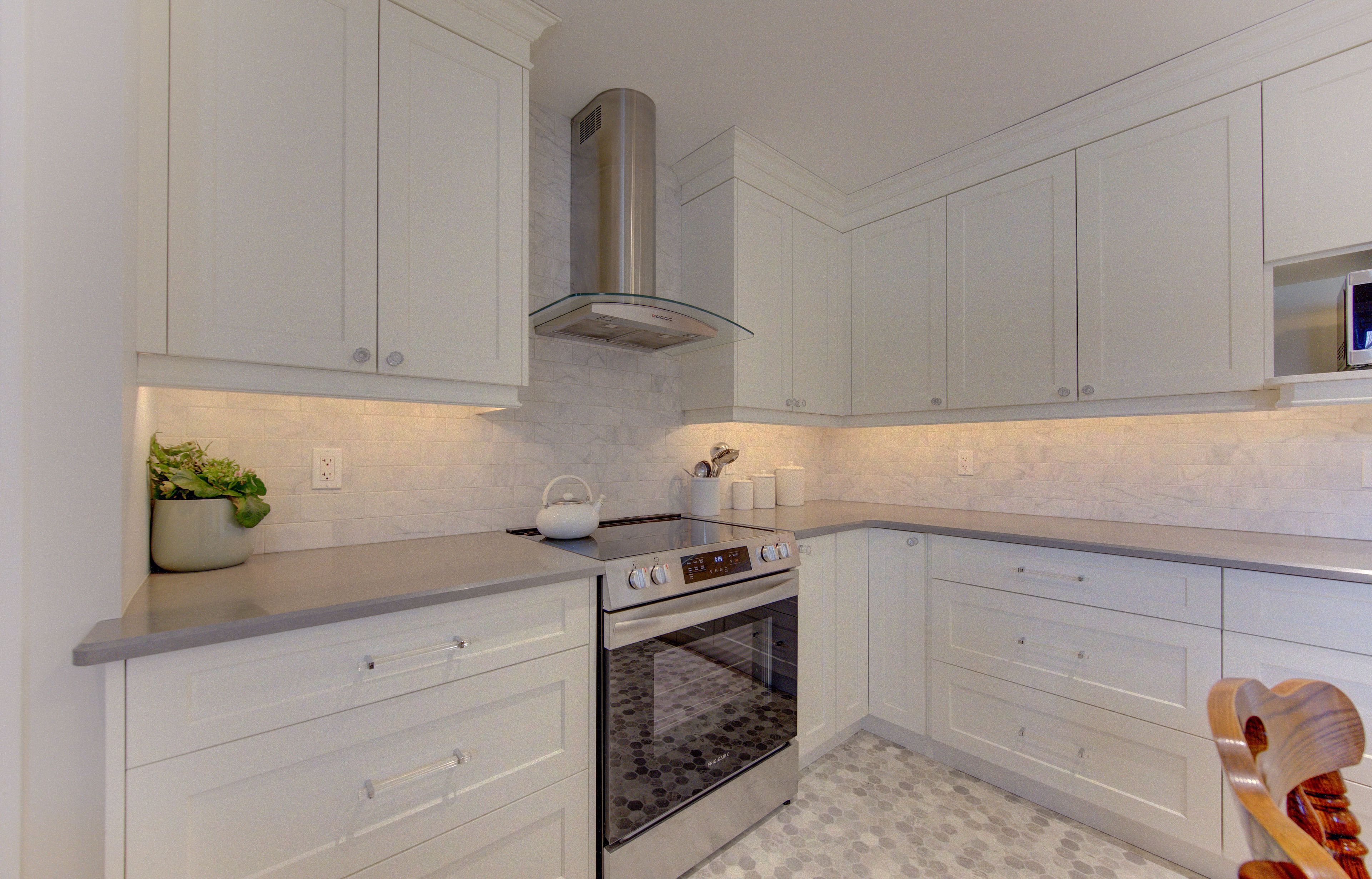 • Modern kitchen with custom cabinetry, quartz countertops, and stainless appliances.