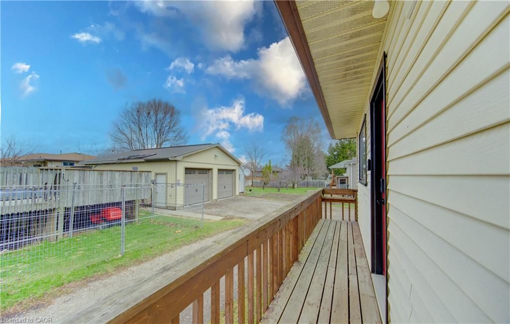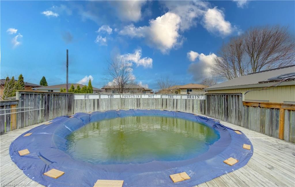 • Backyard retreat features an above-ground pool and deck for entertaining.