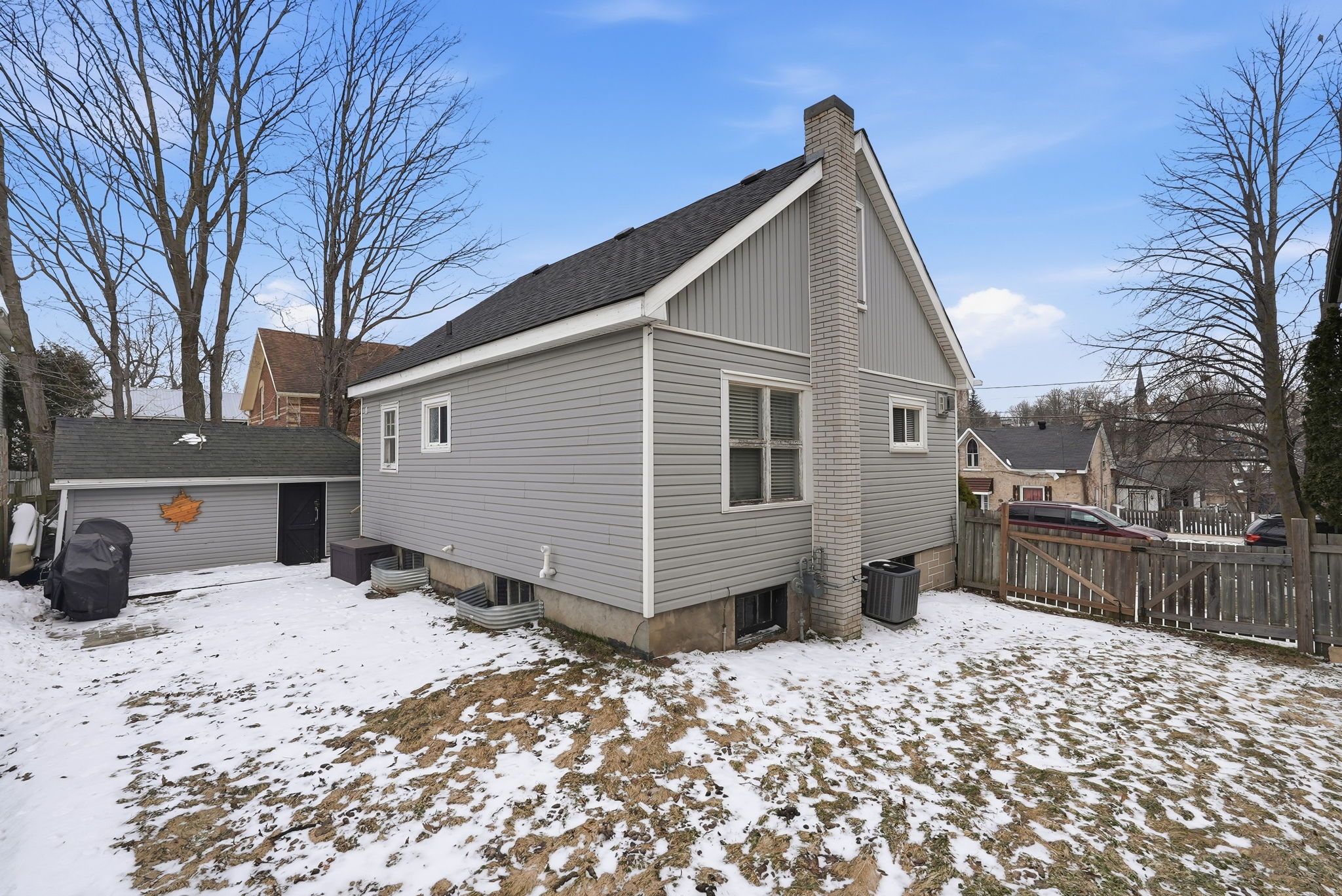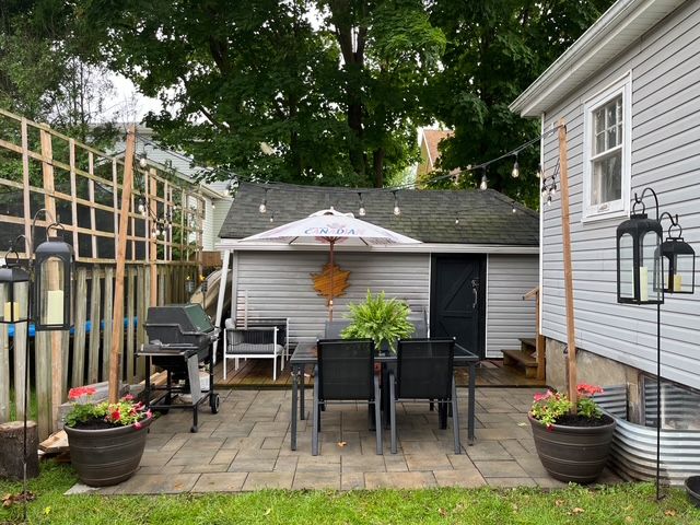 A fantastic opportunity to own a character home in an unbeatable location. This charming 1. 5-storey home offers incredible curb appeal and a lifestyle that's hard to beat. Featuring 3 bedrooms and 1 bath, this beautifully updated home has been preserved with its elegant original charm and features large baseboard trim throughout. Also including a detached garage with hydro and a recently updated, highly convenient mudroom. The bright kitchen showcases brand-new butcher block countertops and brand new classic subway tile backsplash, opening seamlessly into the spacious dining area-perfect for everyday living and entertaining . The sun-filled living room is warm and inviting, complete with a cozy gas fireplace (2021). The main floor offers the added benefit of a primary bedroom and a full 3-piece bath, ideal for those seeking the convenience of main-level living. Upstairs, you'll find two generously sized bedrooms along with a charming office nook that looks over the downtown core and offers potential to be converted into a 2-piece bathroom. The partially finished lower level provides additional living space with a comfortable tv/lounge area, plus a laundry room and ample storage. Step outside to enjoy the private patio area, perfect for relaxing or entertaining guests. Located just a short stroll to the vibrant downtown core, you'll enjoy easy access to pubs, restaurants, boutique shops, and cafés, all while taking in beautiful views of the grand river just a short stroll away. Key updates include: new waterproofing and weeping tile (2018), furnace (2021), a/c (2018), fireplace (2021), and water softener (owned - 2017), hot water tanks ( rental - 2026), recently updated with fresh paint on all trim and doors (2026)