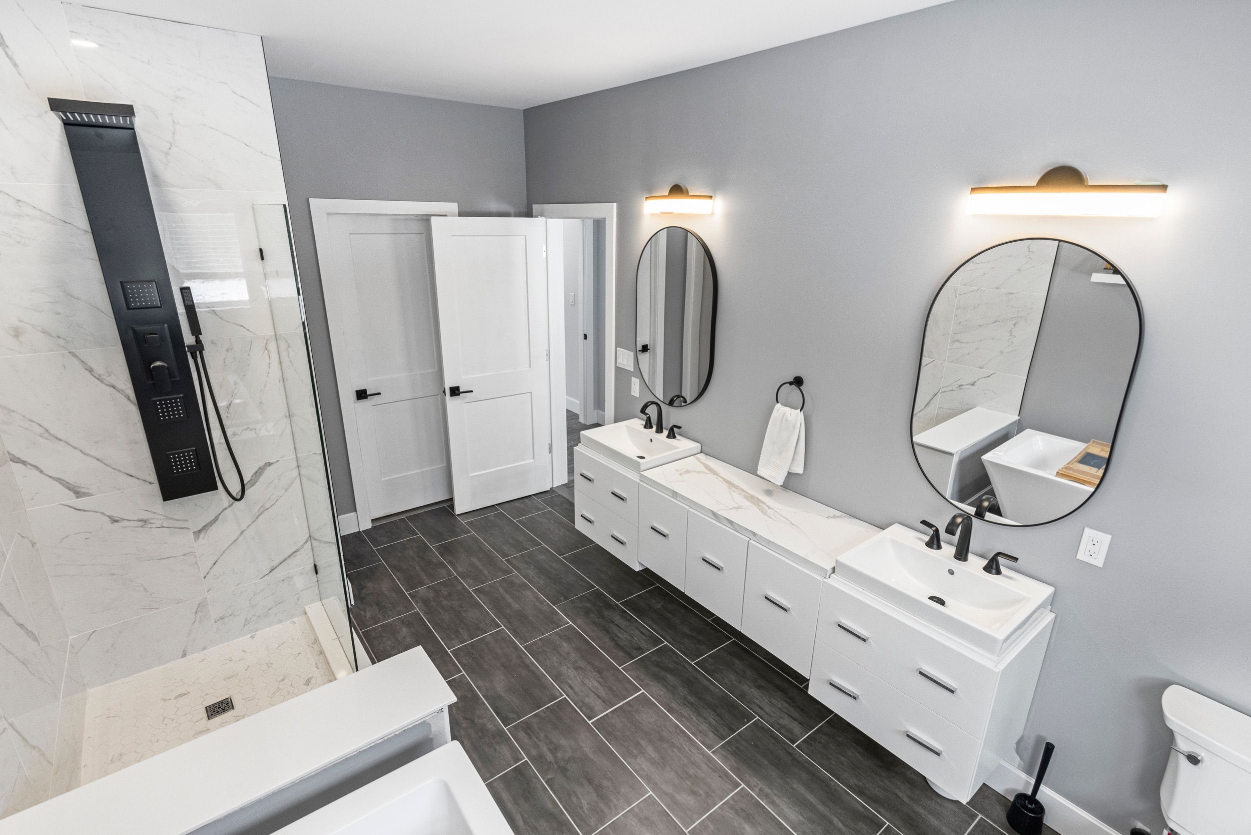 Welcome to this stunning custom-built bungalow, perfectly situated on a sprawling lot just under 2 acres. The striking stonework of the exterior sets a refined tone for this elegant home, showcasing its timeless design and exceptional craftsmanship. Inside, the oversized 3-car garage offers ample space for vehicles and storage, seamlessly complementing the homes thoughtful layout. The main living area is a true showstopper, with soaring 13-foot ceilings, a built-in electric fireplace, and a walkout to the deck and spacious backyardperfect for both relaxing and entertaining. Throughout the rest of the home, 9-foot ceilings maintain a sense of openness and elegance. The chefs kitchen is designed for both beauty and functionality, featuring quartz countertops, premium built-in appliances, and a layout ideal for hosting or everyday living. The primary suite is a luxurious retreat, complete with its own walkout to the deck, offering serene views and a seamless connection to the outdoors. The spa-inspired ensuite features his-and-her sinks and exquisite finishes, adding a touch of indulgence to your daily routine. Enjoy your own privacy, land, and piece of paradise, all while staying just minutes away from major shopping areas and highway 401. Set on a peaceful, expansive lot, this home offers a perfect blend of tranquility and convenience. Schedule your private tour today to experience this exceptional property for yourself!