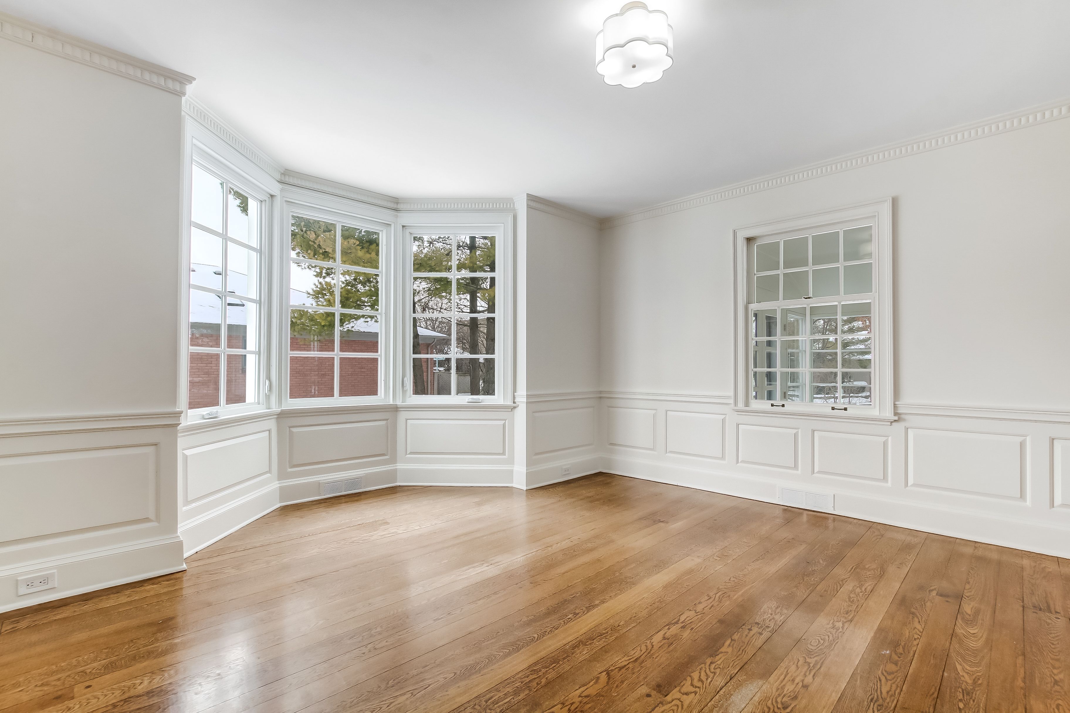 • Light-filled dining room featuring a beautiful bay window.