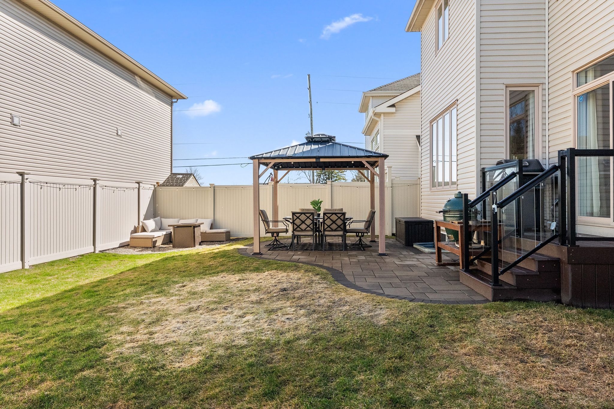 • Expansive outdoor patio and deck for enjoying the private backyard.