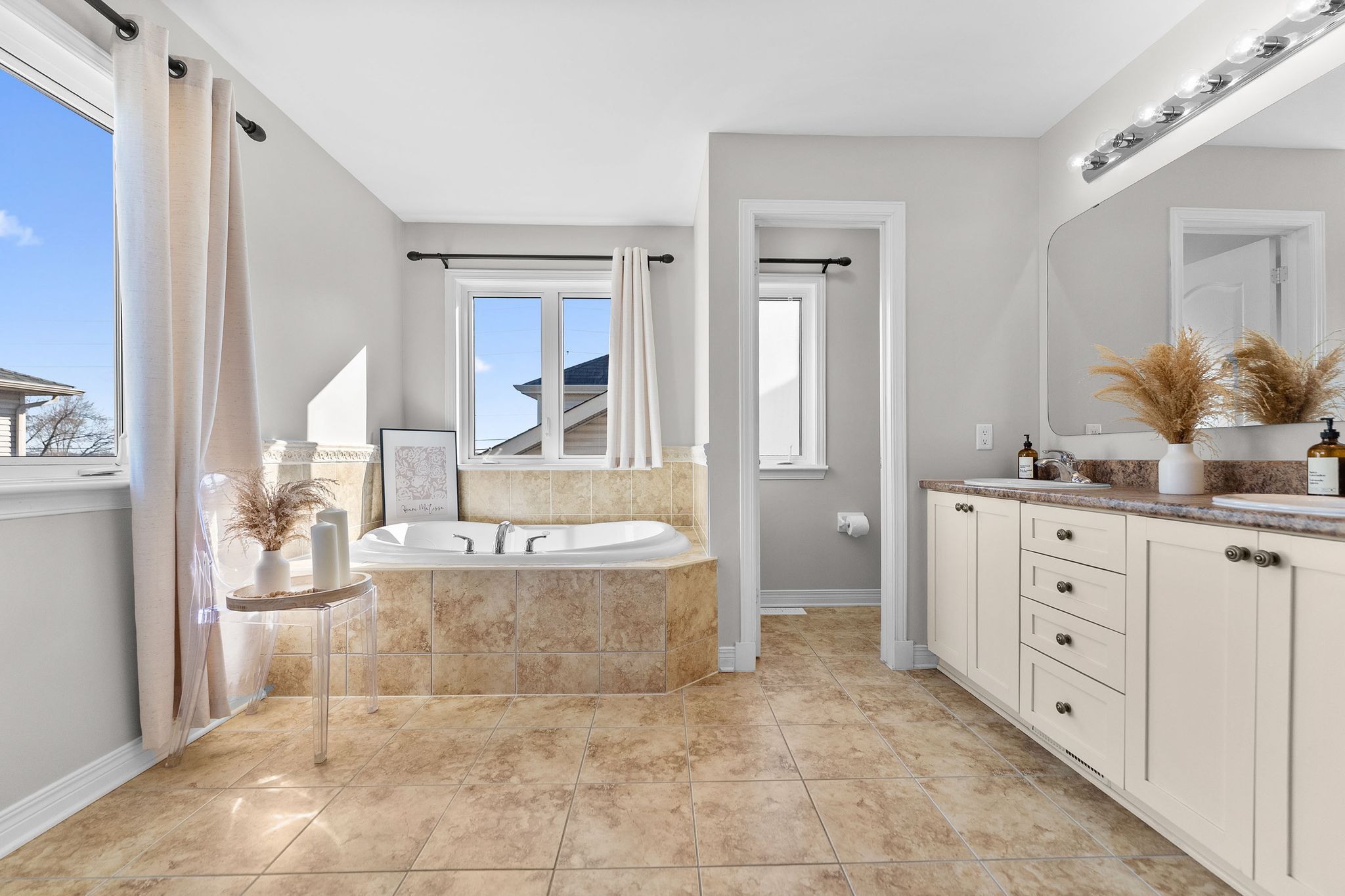 Welcome to 1965 montmere avenue - an exceptional former richcraft model home showcasing the prestigious floor plan offering over 3000 sq ft of refined, beautifully curated living space. Ideally situated in the heart of notting hill/summerside, this residence blends timeless architecture with thoughtful, high-quality enhancements that elevate both comfort and style. A grand, light-filled foyer introduces soaring ceilings, elegant detailing, and a spacious main-floor den perfect for work or quiet retreat. The formal living and dining areas flow seamlessly into a chef-inspired kitchen, complete with abundant cabinetry, a generous island, and a sun-filled eat-in area overlooking the private backyard. The adjoining family room, anchored by a striking gas fireplace, creates an inviting atmosphere for intimate evenings or memorable gatherings. Recent updates - including a beautifully built patio and deck (2019) - extend the living experience outdoors with ease. Upstairs, the versatile second-floor loft offers an elevated lounge, media space, or homework hub. All four bedrooms are impressively scaled, each with its own walk-in closet - a rare luxury that sets this model apart. The primary suite is a true sanctuary, featuring a spa-inspired ensuite with a double-sided fireplace, deep soaker tub, and oversized glass shower. Thoughtful touches such as custom blackout shades (2022) enhance comfort and privacy. The home has been meticulously maintained with meaningful upgrades that ensure peace of mind, including a new roof (2022), air conditioner (2023). The lower level offers exceptional potential with a large open footprint, ready to be transformed to suit your vision. Steps from parks, schools, transit, and the amenities of orleans, this home delivers a rare blend of sophistication, comfort, and convenience. A true showcase property - meticulously designed, beautifully maintained, and crafted for elevated modern living.