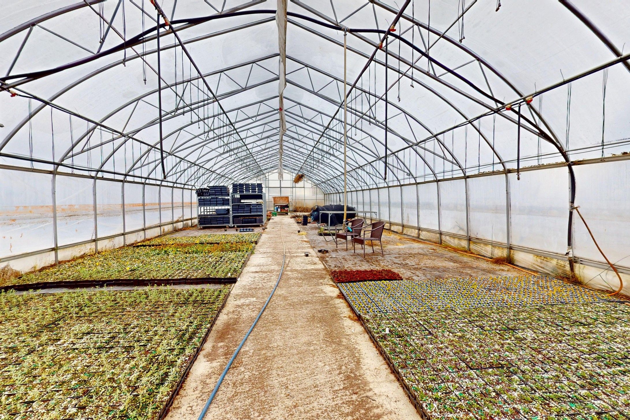 • Includes a workshop, bank barn, and multiple greenhouses with irrigation.