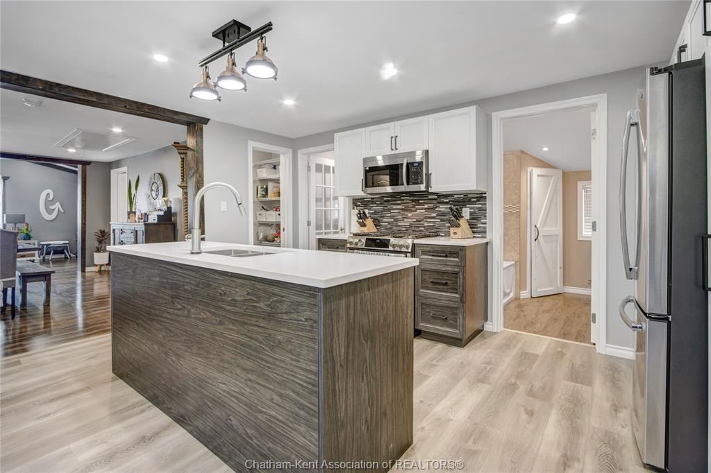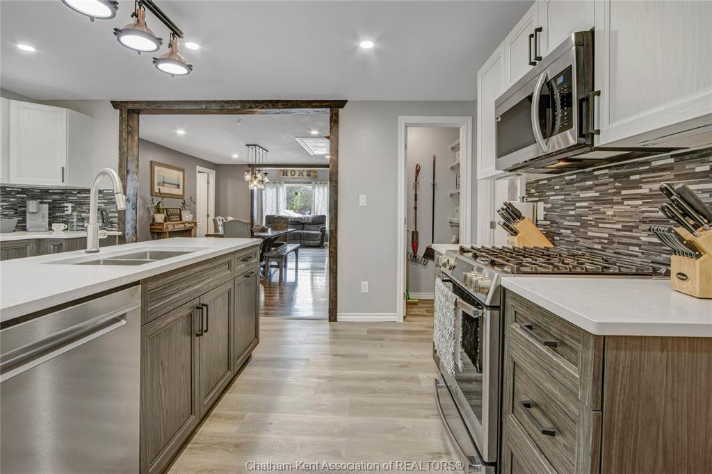 Enjoy peaceful living in the quiet community of dealtown with this beautifully renovated 3 bedroom, 1 bath ranch offering desirable main floor living and picturesque lake views. The brand new kitchen features an island with quartz countertops, stylish backsplash, stainless steel appliances, and a pantry that connect to the spacious dining and living room where you can take in tranquil views of lake erie. This home has been completely renovated, offering a 4pc piece bath with tiled shower, vanity with a granite countertop and numerous updates throughout. The heated double-car attached garage provides sheltered parking, a workshop, or extra storage, while the massive driveway offers ample parking for family and guests. Step outside to enjoy two relaxing decks one with a pergola overlooking the expansive . 46-acre property complete with a fire pit and stunning lake views. Situated on a paved road with natural gas and municipal water, this exceptional property combines modern comfort with the charm of country living! Book your private showing today!