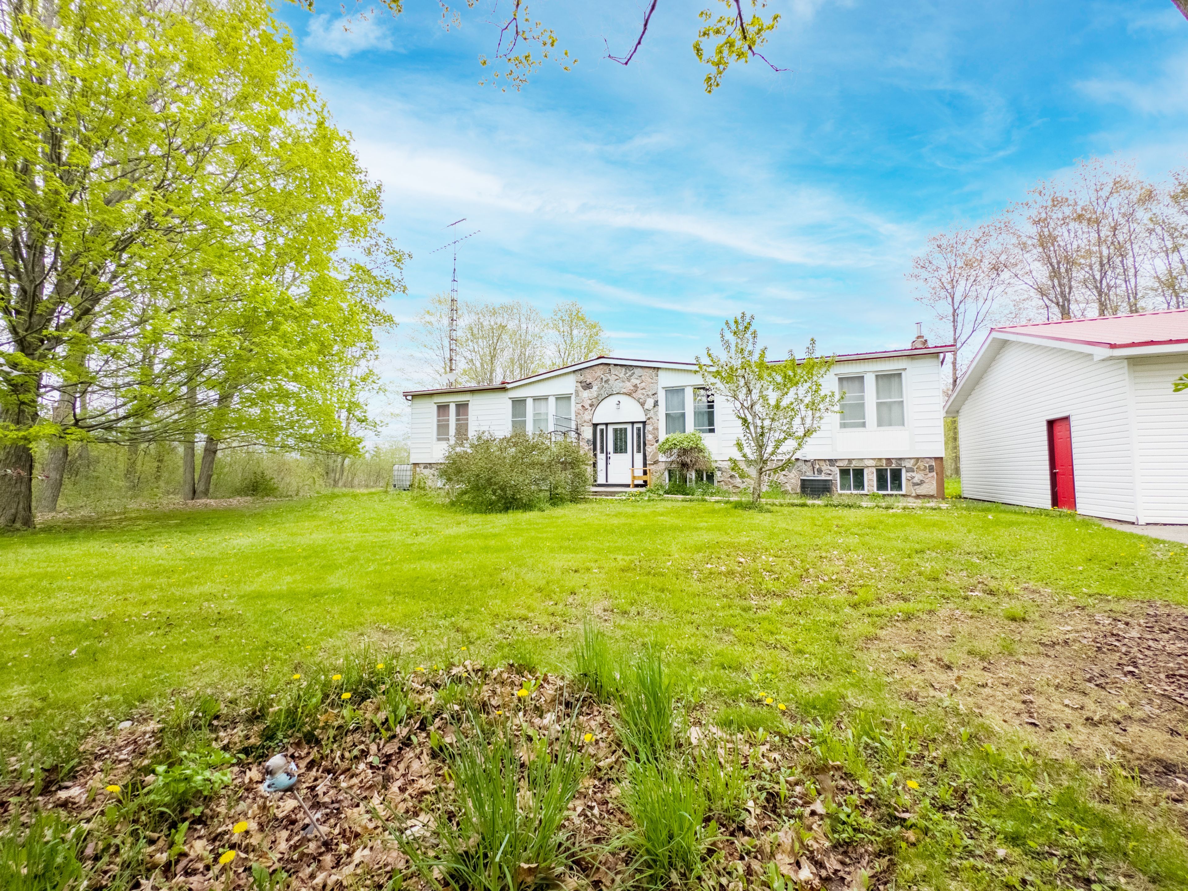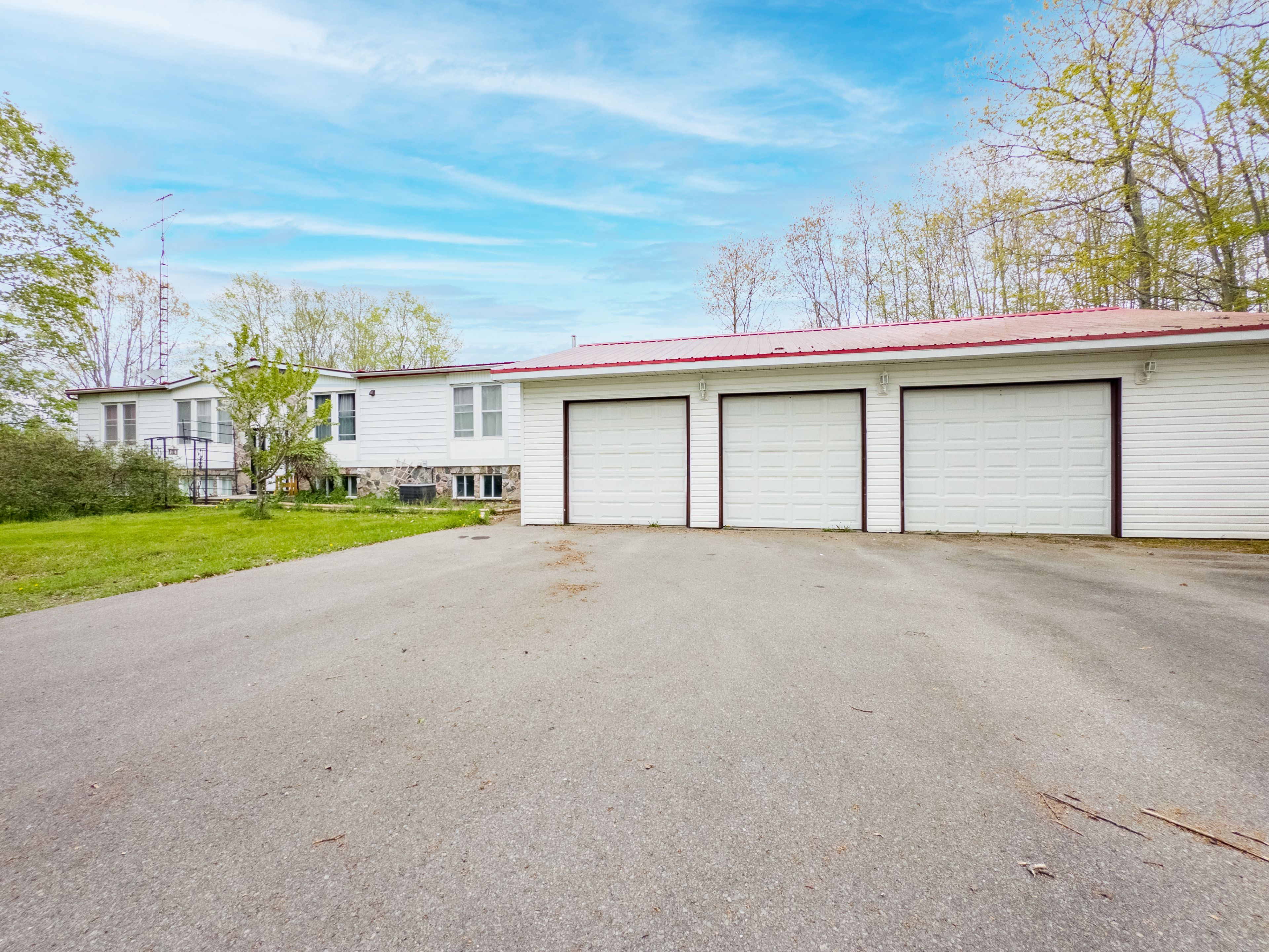 Lots of potential at this 3-bedroom, 2-bathroom raised bungalow on a 2-acre double lot. The home features hardwood floors, main floor laundry, and a large primary bedroom with a walk-in closet and ensuite with a soaker tub. Two patio doors on either side of the home lead to a deck overlooking the spacious backyard and reinforced with intention of supporting a hot tub, perfect for enjoying the outdoors in style. The lower level includes a sizeable rec room, providing extra living space and a pool table, while the 3-car garage offers ample storage and parking for all the toys. Located just minutes from consecon and neighbouring towns, this property combines rural living with convenience. The double lot may allow for a second dwelling to be built for additional income potentially very lucrative with the planned nordic spa (redtail hotel & spa) just minutes away. Buyers and agents to verify zoning and requirements. New hot water tank installed in 2025 (owned, not rented). Home is currently using a cistern, drip-fed from a well but can be converted to a regular well system. Don't miss this opportunity, book your showing today!