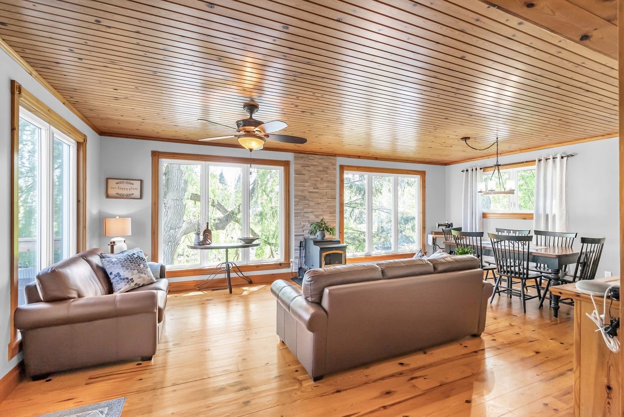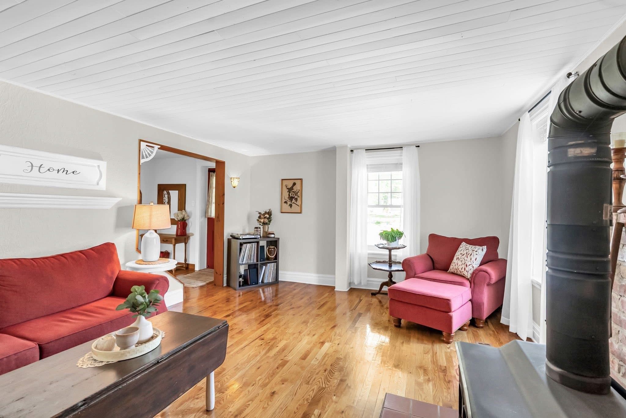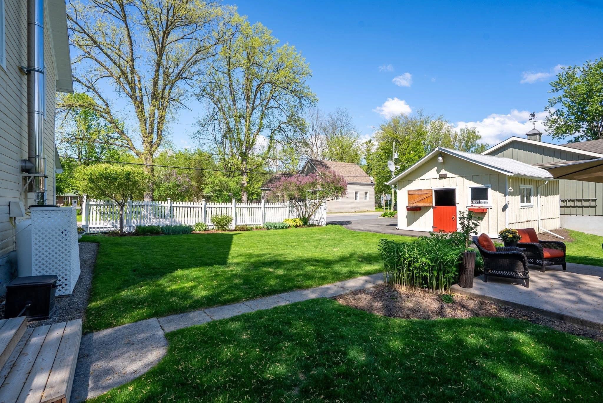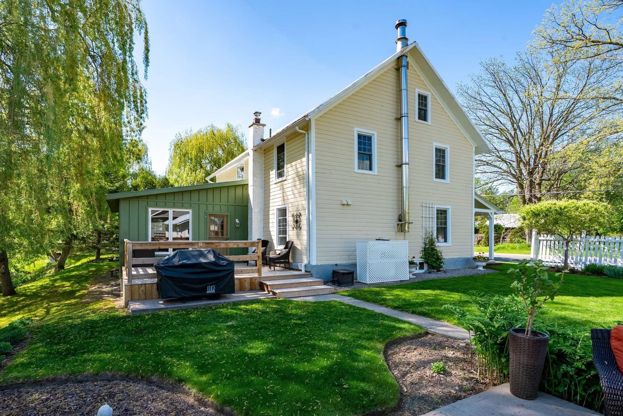 Step back in time and fall in love with this historic gem nestled in the heart of the charming village of williamstown. Built in 1884, this 4-bedroom, 2-bathroom home sits gracefully along the winding shore of the raisin river, offering a peaceful lifestyle full of timeless beauty and storybook surroundings. Full of rustic charm and character, this home invites you to imagine the stories it could tellif the walls could talk. Inside, youll find a spacious layout with updated hardwood flooring throughout, a generous kitchen with plenty of cabinetry, a tranquil living room with a wood burning stove and a main floor family room warmed by a cozy pellet stove with views of the serene backyard. The main floor also features a full bathroom with a vintage clawfoot tub that also accommodated the laundry and a private officeperfect for remote work or creative pursuits. Upstairs, four well-sized bedrooms and a second bathroom with a walk-in shower provide comfort and functionality for the whole family. Step outside to enjoy the immaculate yard, filled with vibrant perennial gardens, a large deck overlooking the river, a charming white picket fence, a she shed/workshop, and a paved driveway. The front deck is the perfect spot to unwind on the swing with a glass of wine and take in the peaceful village views as the sun sets. Located just across from the historic grounds of ontarios oldest fair, this one-of-a-kind home is a beautiful blend of heritage, charm, and tranquil country living. This well loved home is looking for its next keeper.