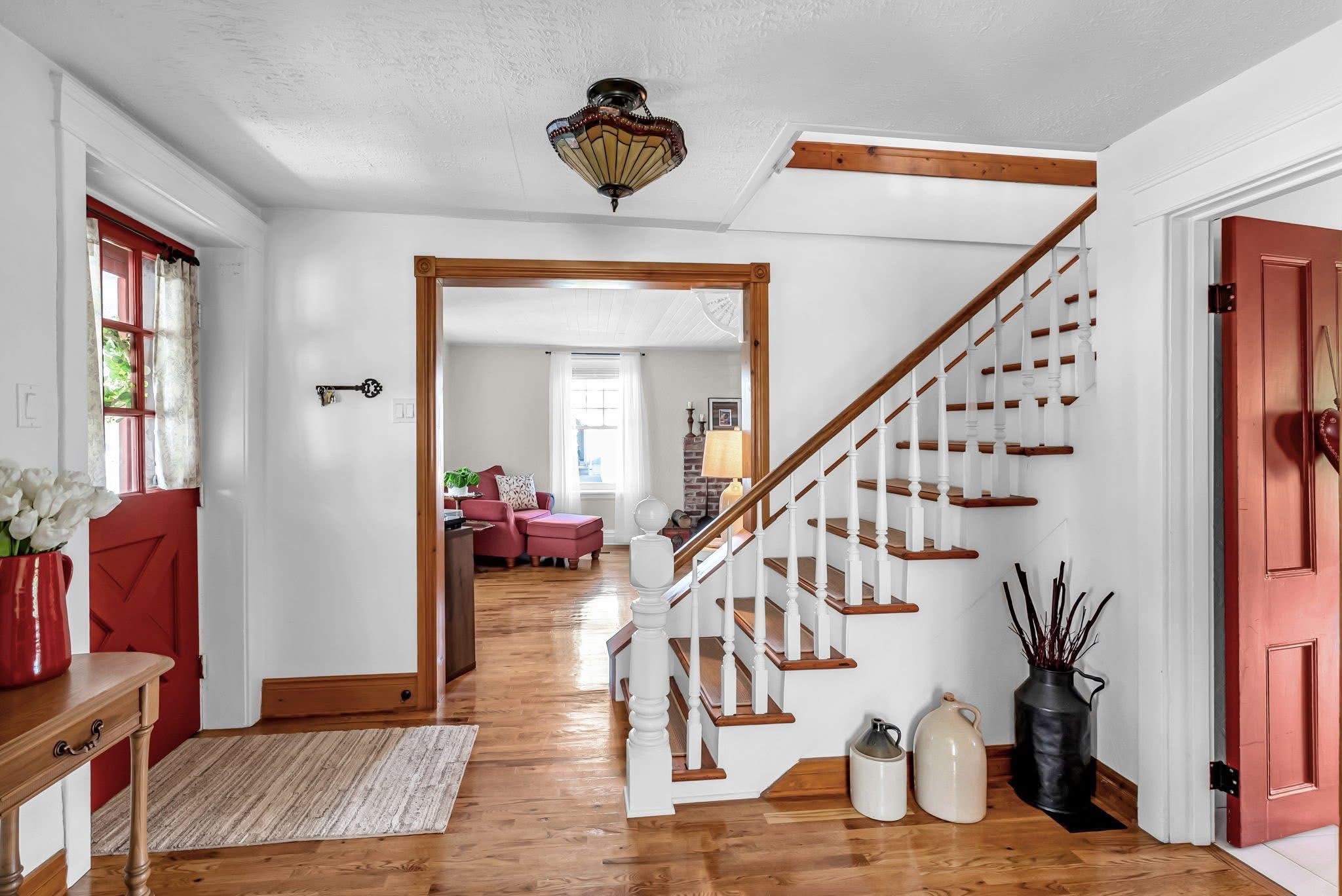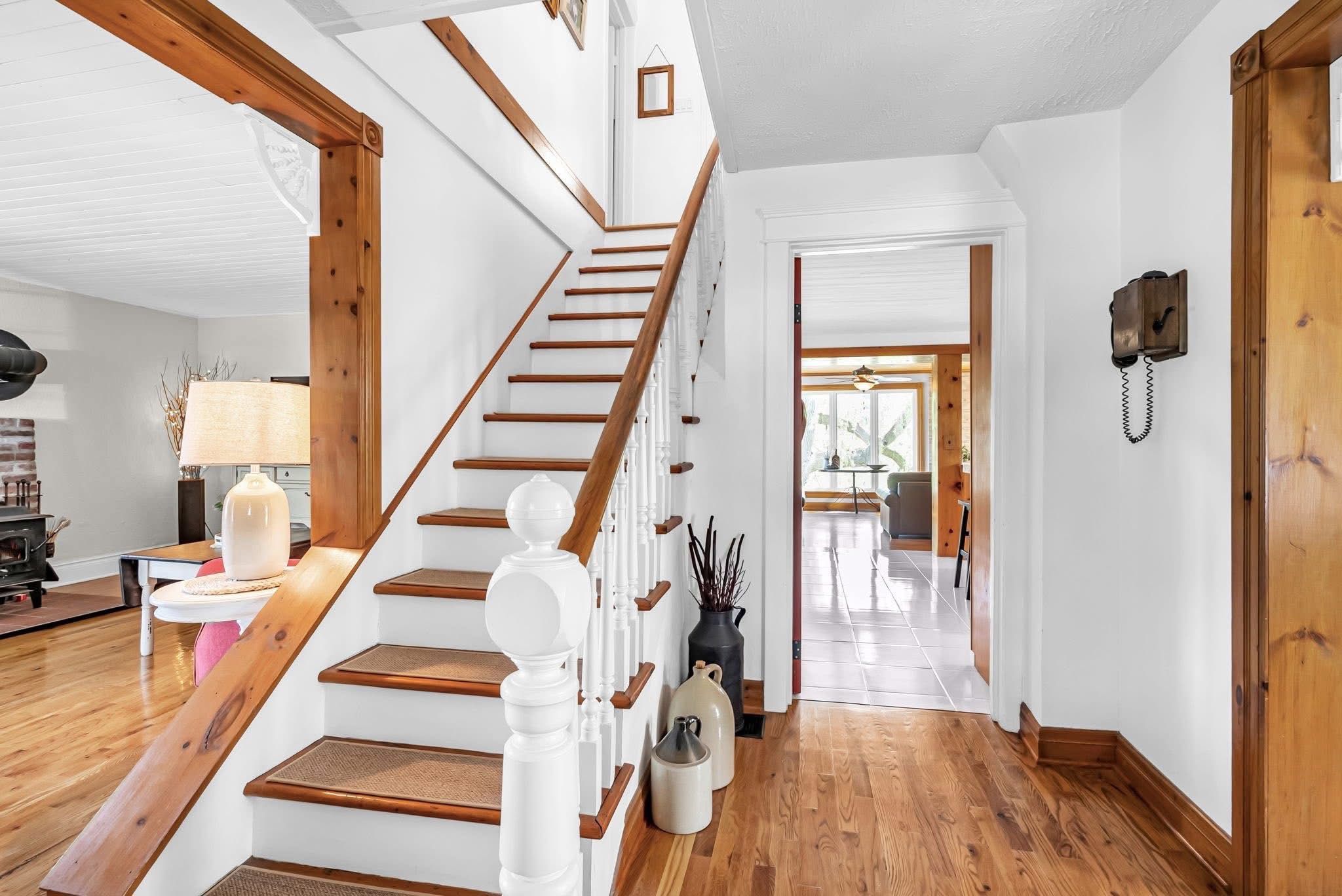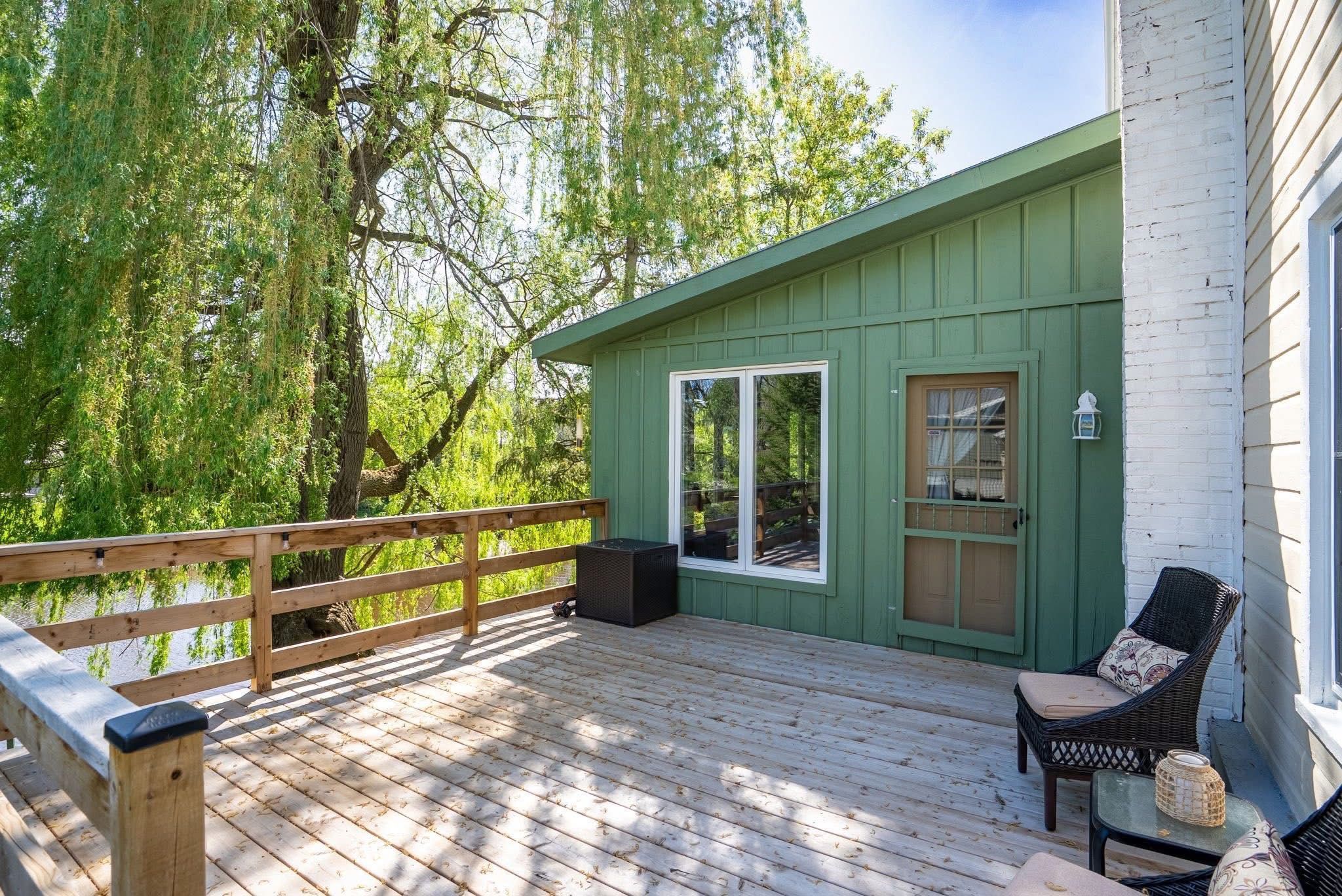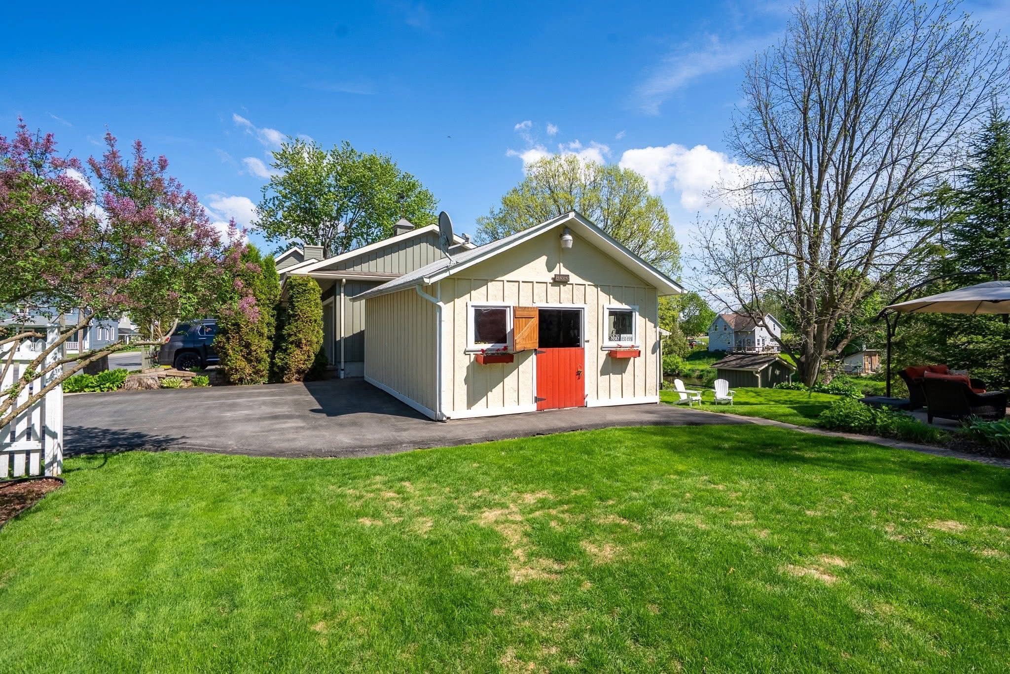 Step back in time and fall in love with this historic gem nestled in the heart of the charming village of williamstown. Built in 1884, this 4-bedroom, 2-bathroom home sits gracefully along the winding shore of the raisin river, offering a peaceful lifestyle full of timeless beauty and storybook surroundings. Full of rustic charm and character, this home invites you to imagine the stories it could tellif the walls could talk. Inside, youll find a spacious layout with updated hardwood flooring throughout, a generous kitchen with plenty of cabinetry, a tranquil living room with a wood burning stove and a main floor family room warmed by a cozy pellet stove with views of the serene backyard. The main floor also features a full bathroom with a vintage clawfoot tub that also accommodated the laundry and a private officeperfect for remote work or creative pursuits. Upstairs, four well-sized bedrooms and a second bathroom with a walk-in shower provide comfort and functionality for the whole family. Step outside to enjoy the immaculate yard, filled with vibrant perennial gardens, a large deck overlooking the river, a charming white picket fence, a she shed/workshop, and a paved driveway. The front deck is the perfect spot to unwind on the swing with a glass of wine and take in the peaceful village views as the sun sets. Located just across from the historic grounds of ontarios oldest fair, this one-of-a-kind home is a beautiful blend of heritage, charm, and tranquil country living. This well loved home is looking for its next keeper.