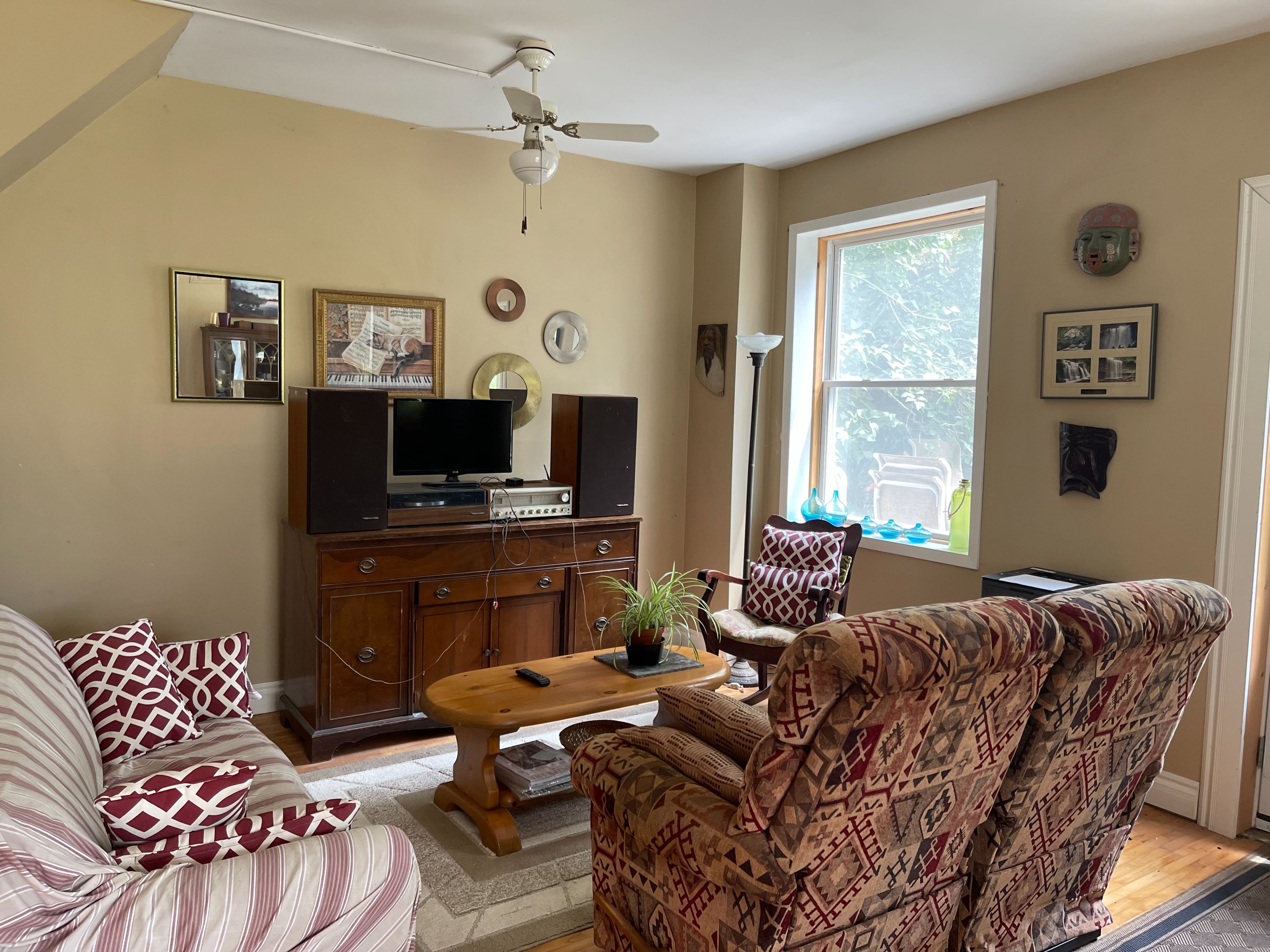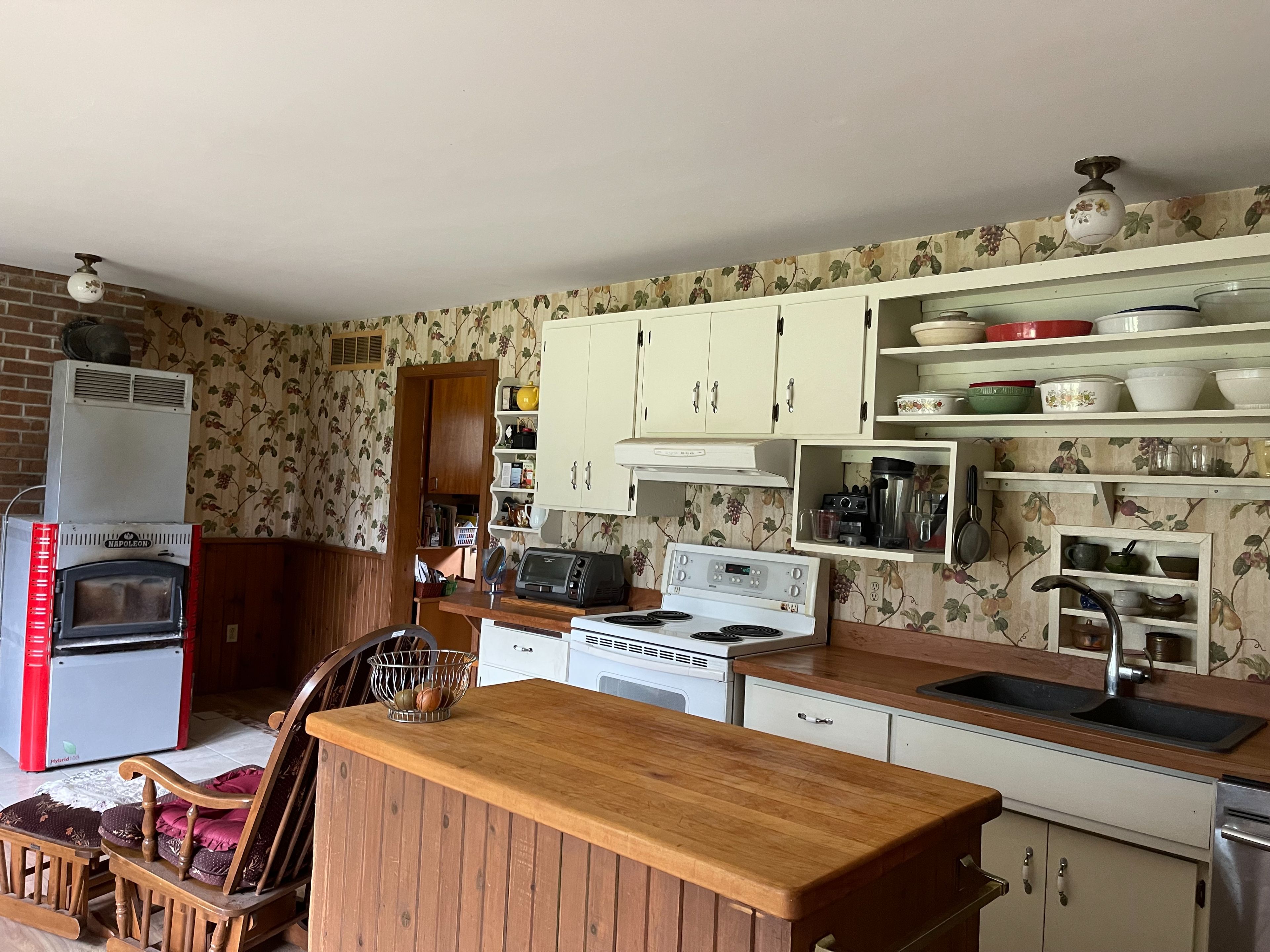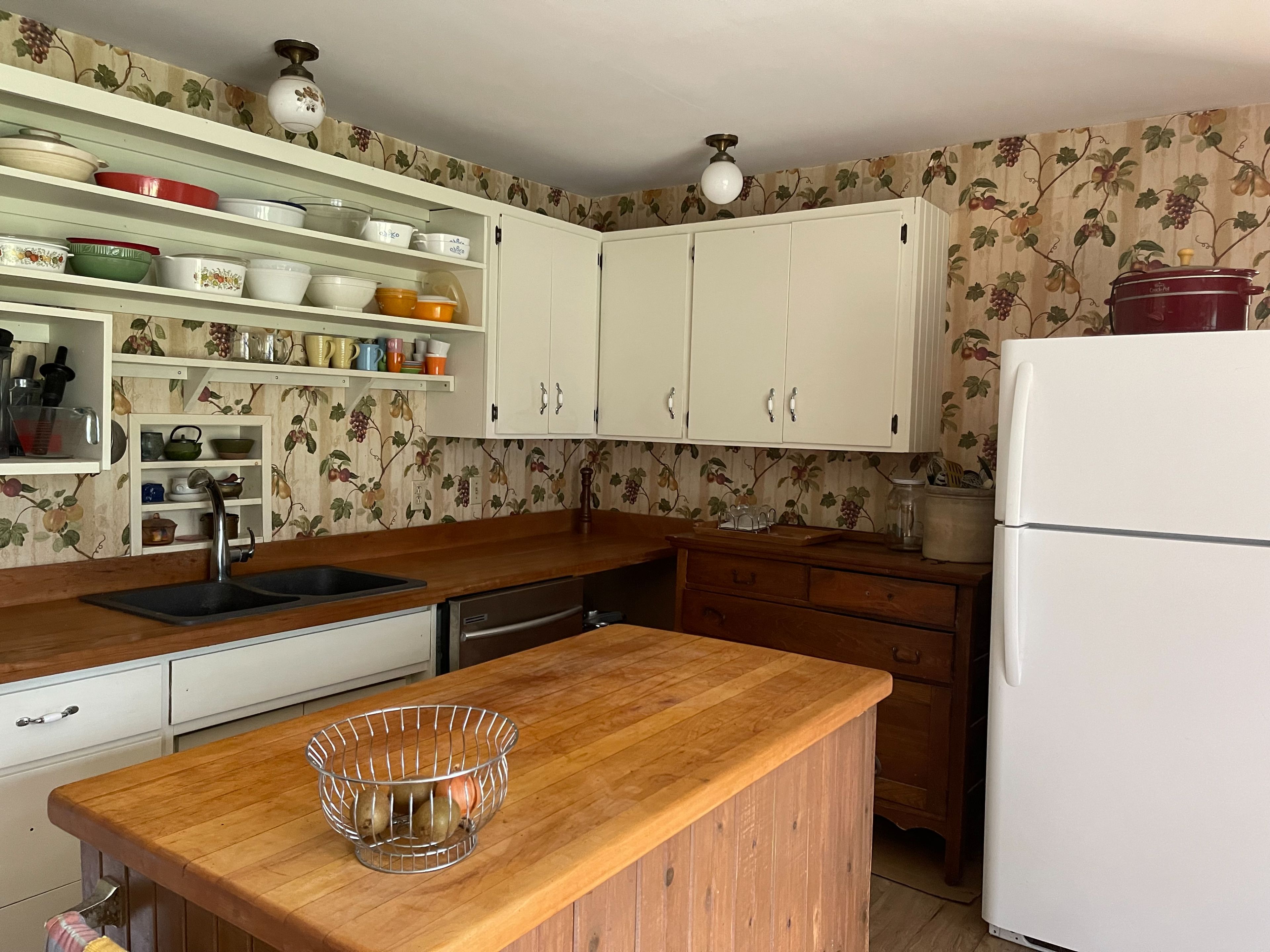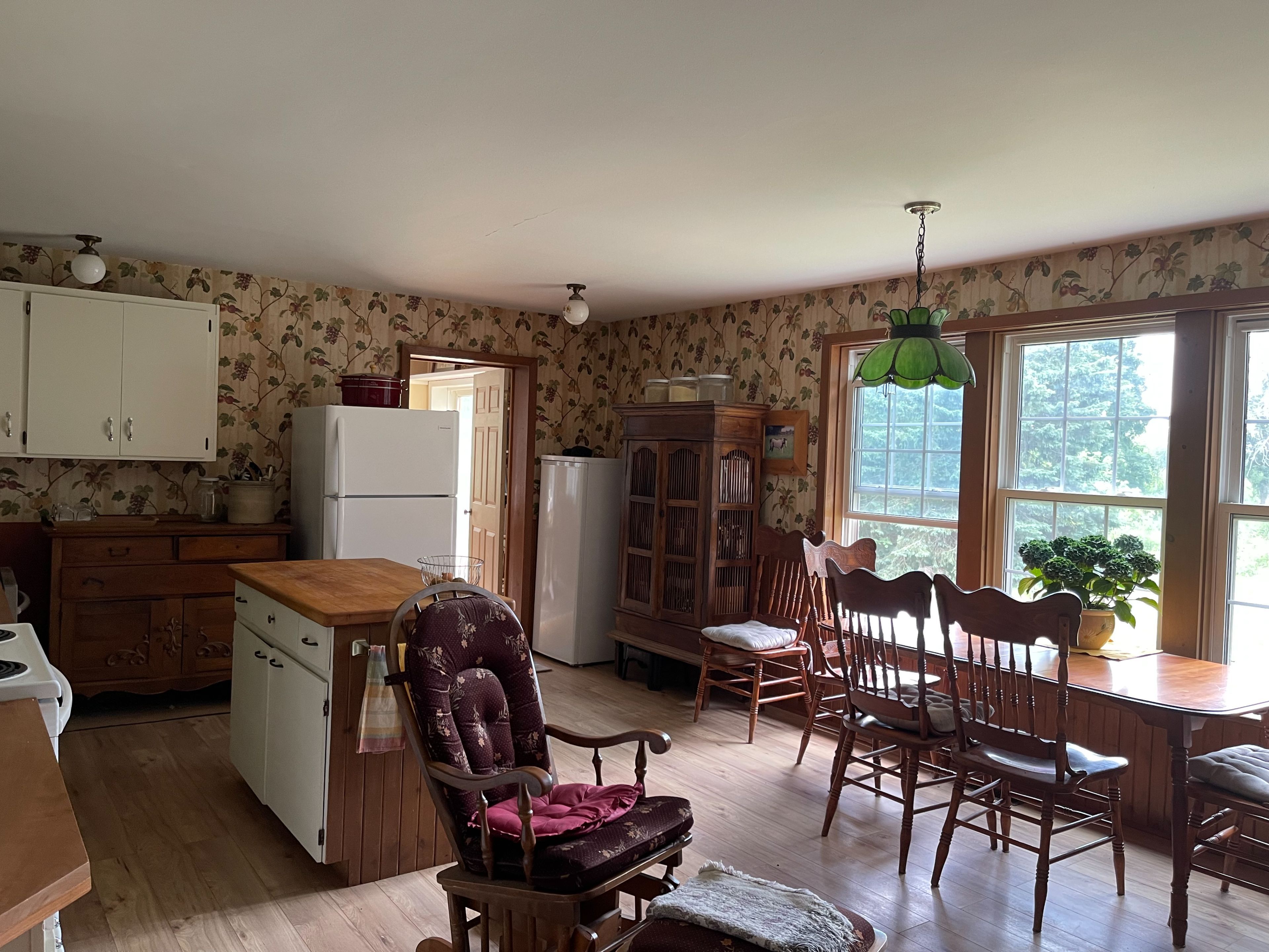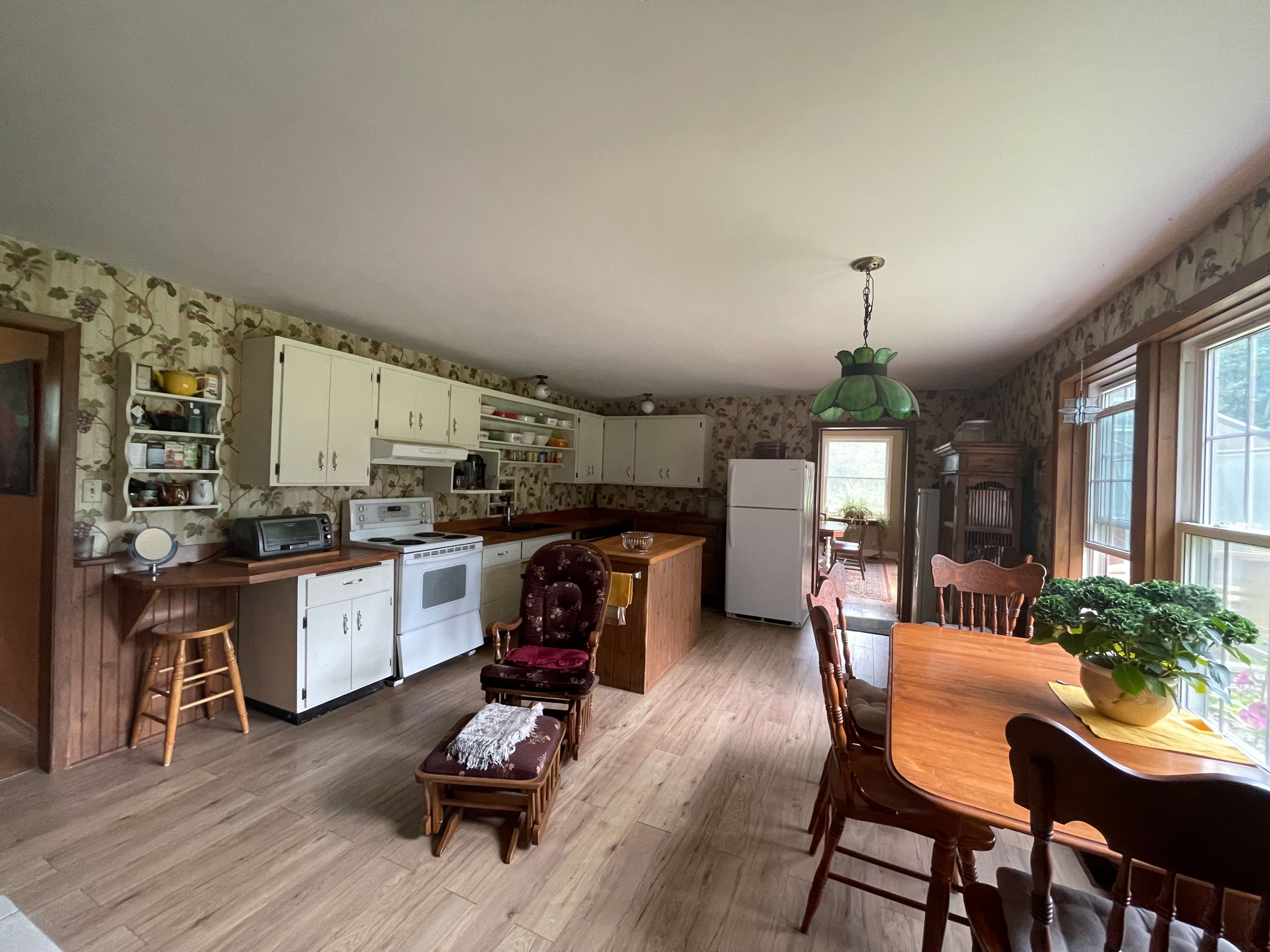 • Two-bedroom, three-bathroom farmhouse with updated appliances and features.