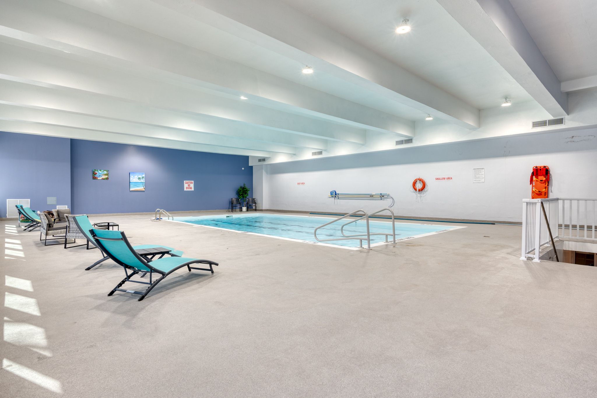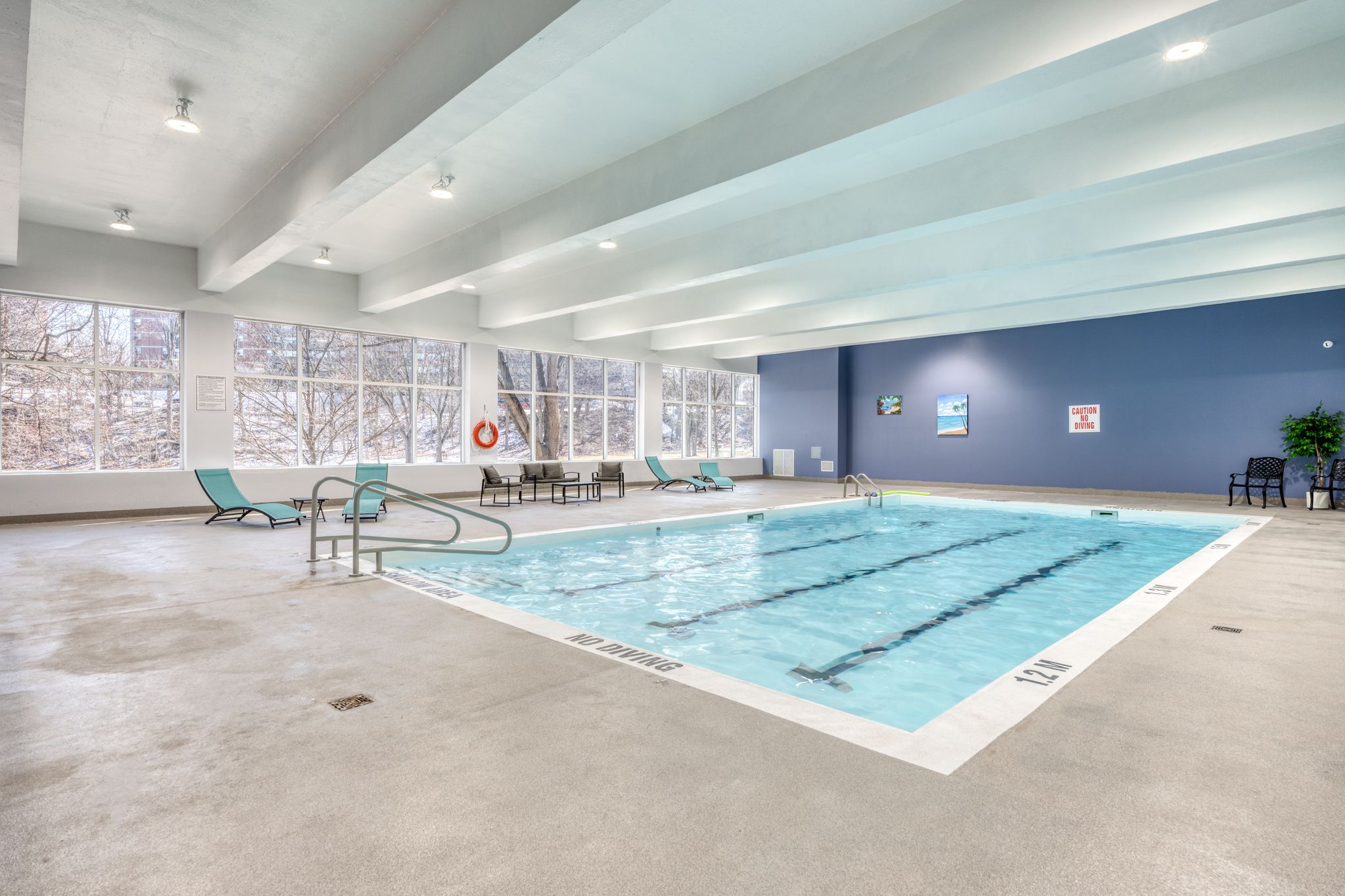 • Building amenities include indoor pool, gym, and party room.