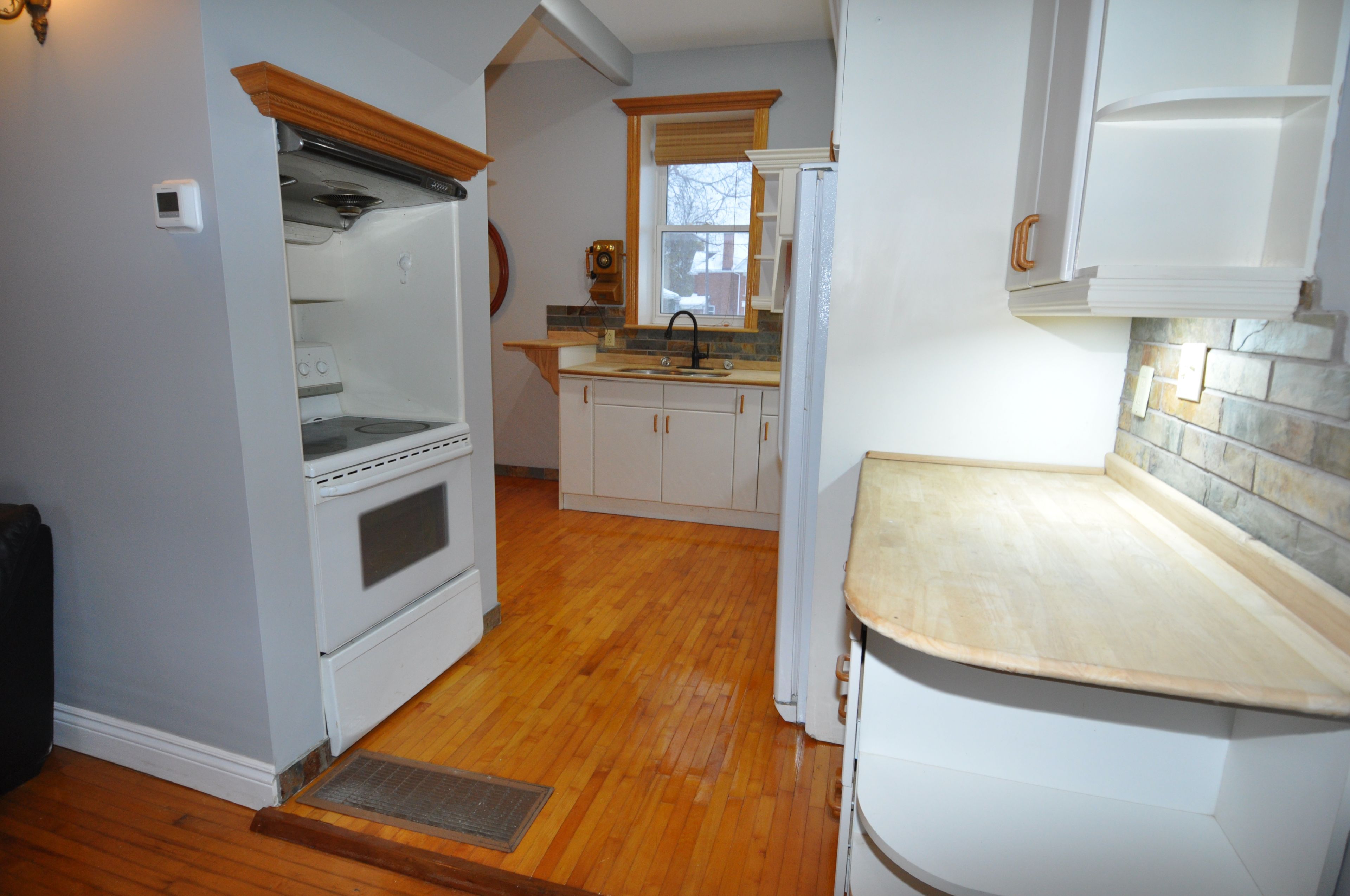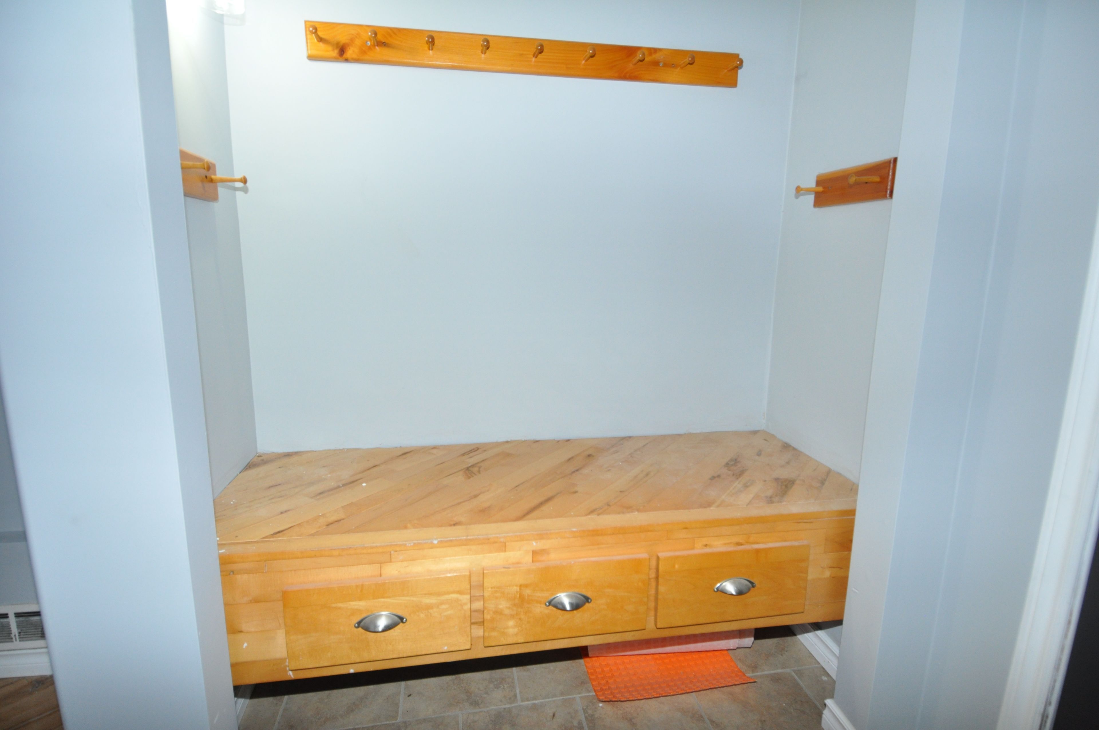 • Updated kitchen with ample cupboards, built-in bench, and dog door.