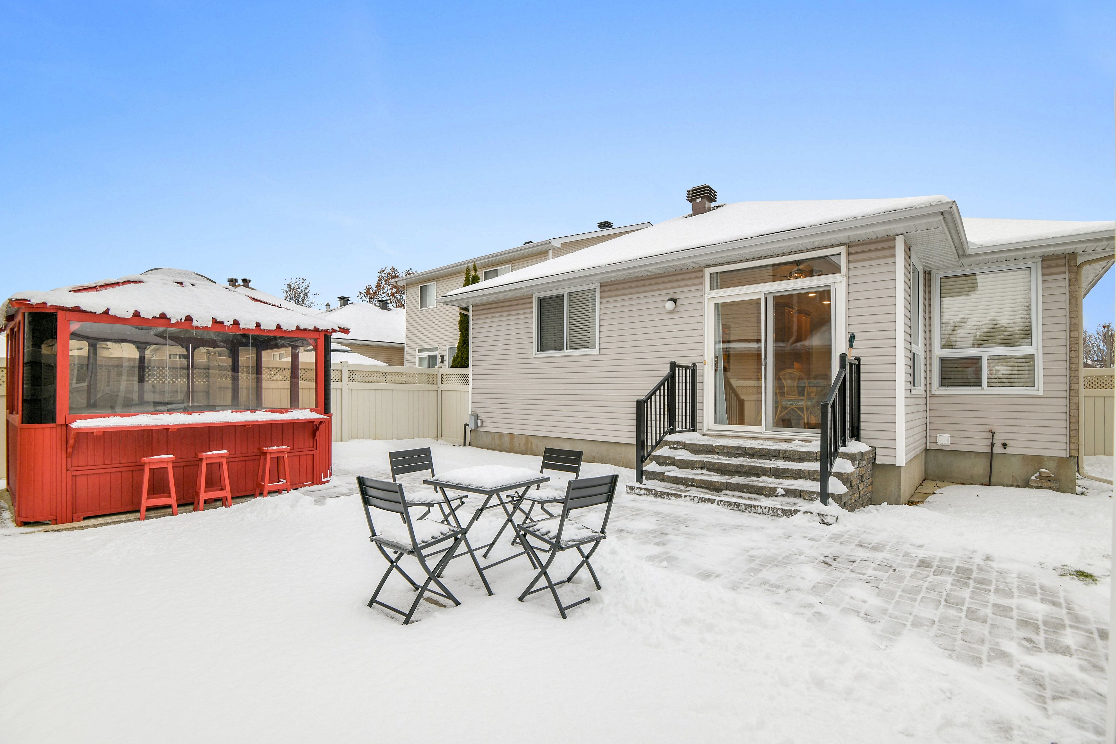 Move-in ready, no work required! Welcome to this beautifully renovated detached bungalow offering three spacious bedrooms & three full bathrooms. Thoughtfully upgraded from top to bottom, this home seamlessly combines modern comfort with timeless charm. Open concept living & dining areas share an abundance of natural light, a gas fireplace, perfect for both entertaining & everyday family life. Enjoy cooking in the kitchen featuring contemporary cabinetry, granite countertops, a large breakfast bar + extra sitting room. Spacious primary bedroom includes a double closet & a private ensuite for added comfort & privacy. A second spacious bedroom w/double closet has a conveniently located full bathroom close by. Practical mudroom/laundry room on main opens to the double garage. Newly finished lower level offers additional living space, ideal with a family room, home office, bedroom or guest suite, complete with a gorgeous third bathroom. A huge utility room/storage area with another handy laundry hook-up of its own. Recent renovations include flooring throughout, wood stairs, new paint, fully finished lower level etc etc. Step outside to a fenced, landscaped backyard with patio area-perfect for bbqs, gardening, or enjoying the outdoors w/ family & friends in your own private covered hot tub! Irrigation system & storage shed. Located in a quiet, family-friendly neighbourhood close to parks, schools, shopping, public transit. Quick access to major roadways makes commuting a breeze while enjoying the peace & privacy of a single detached corner home. Ample parking in private driveway + attached double garage. Ideal for downsizers, or anyone seeking a stylish bungalow in a great community. Don't miss the opportunity to own this stunning, renovated bungalow. Experience the perfect blend of comfort & style!