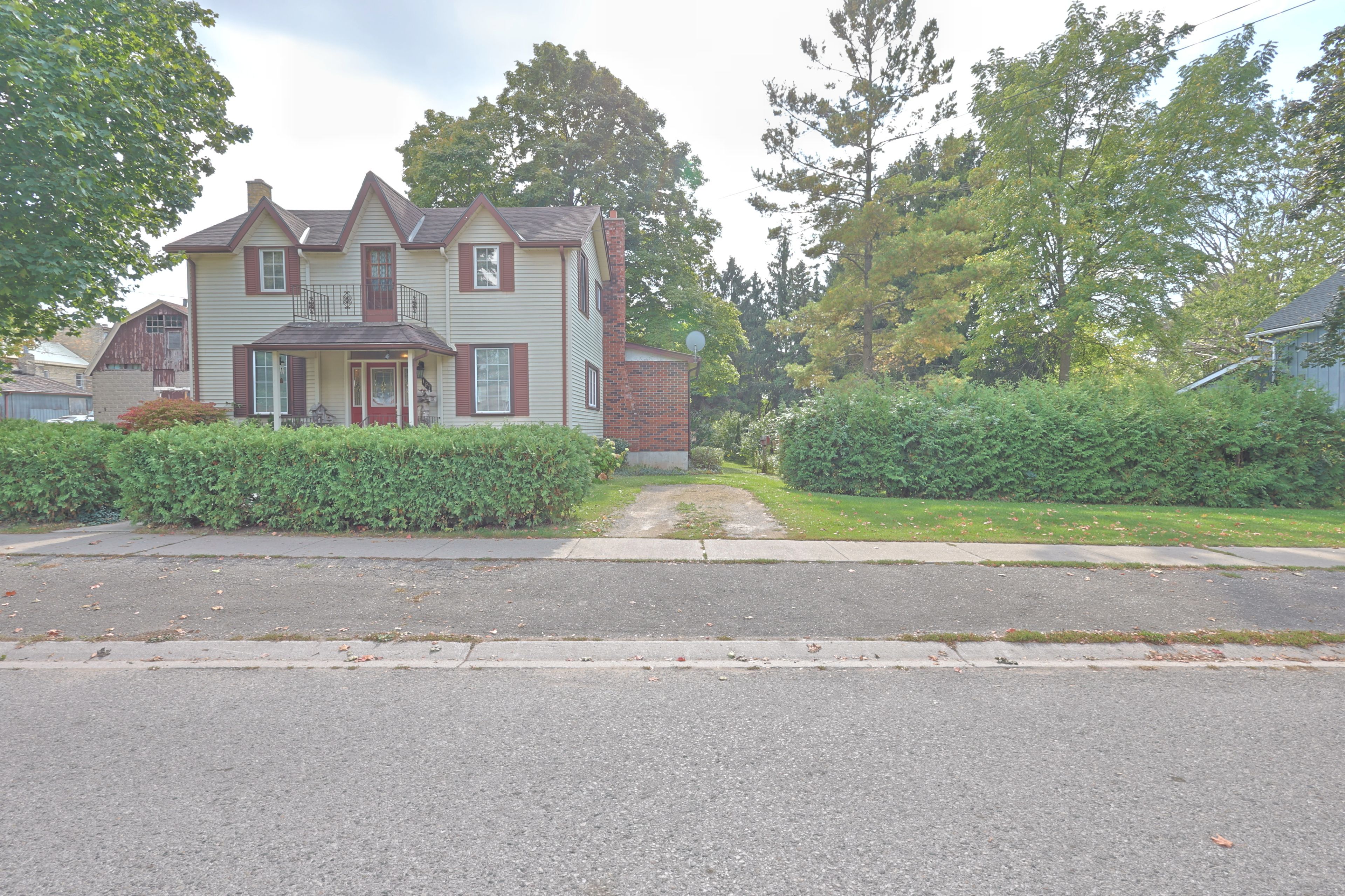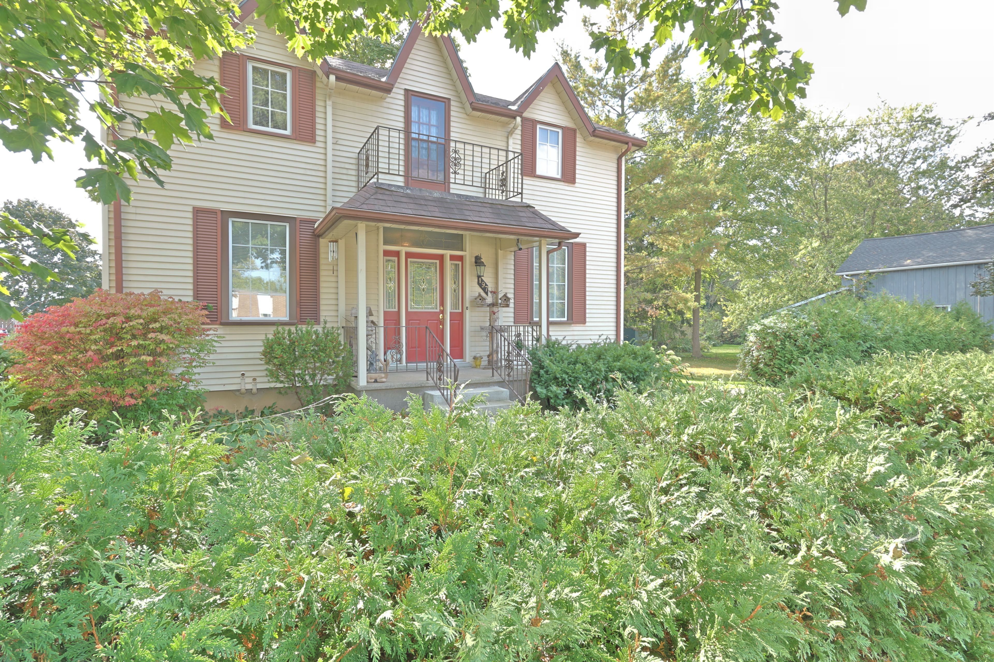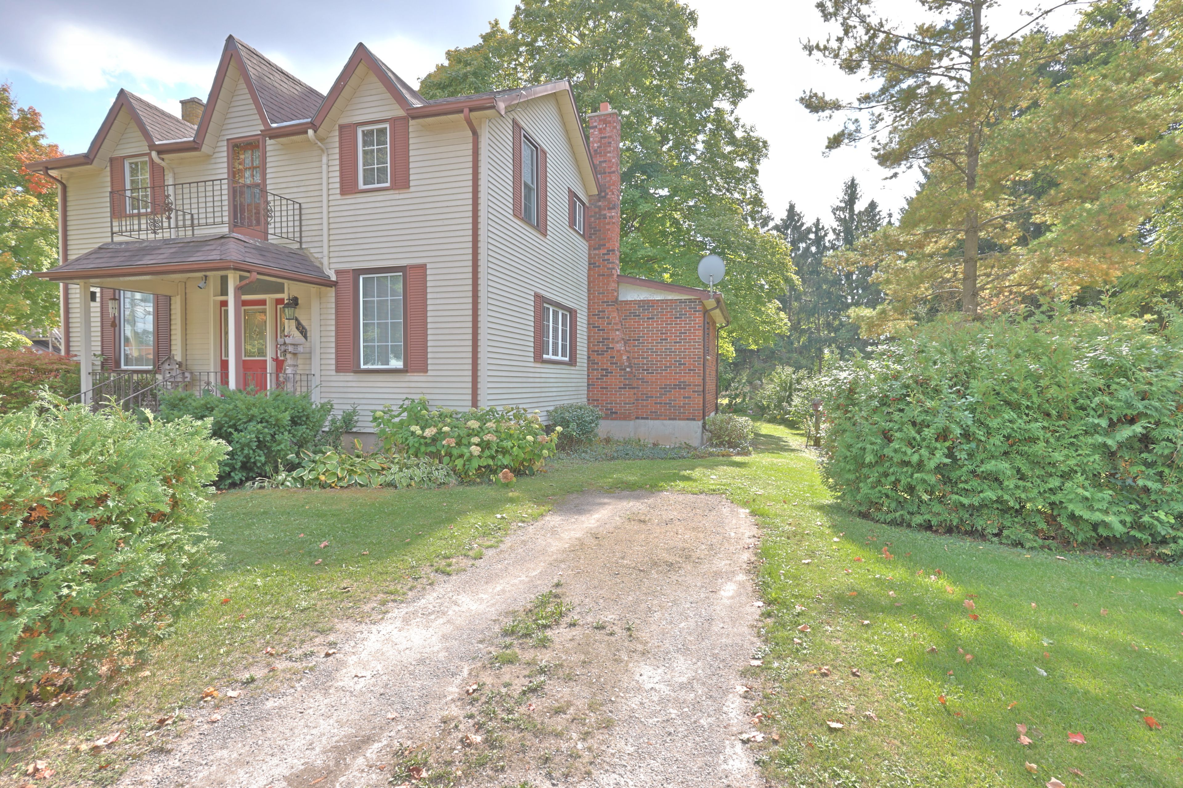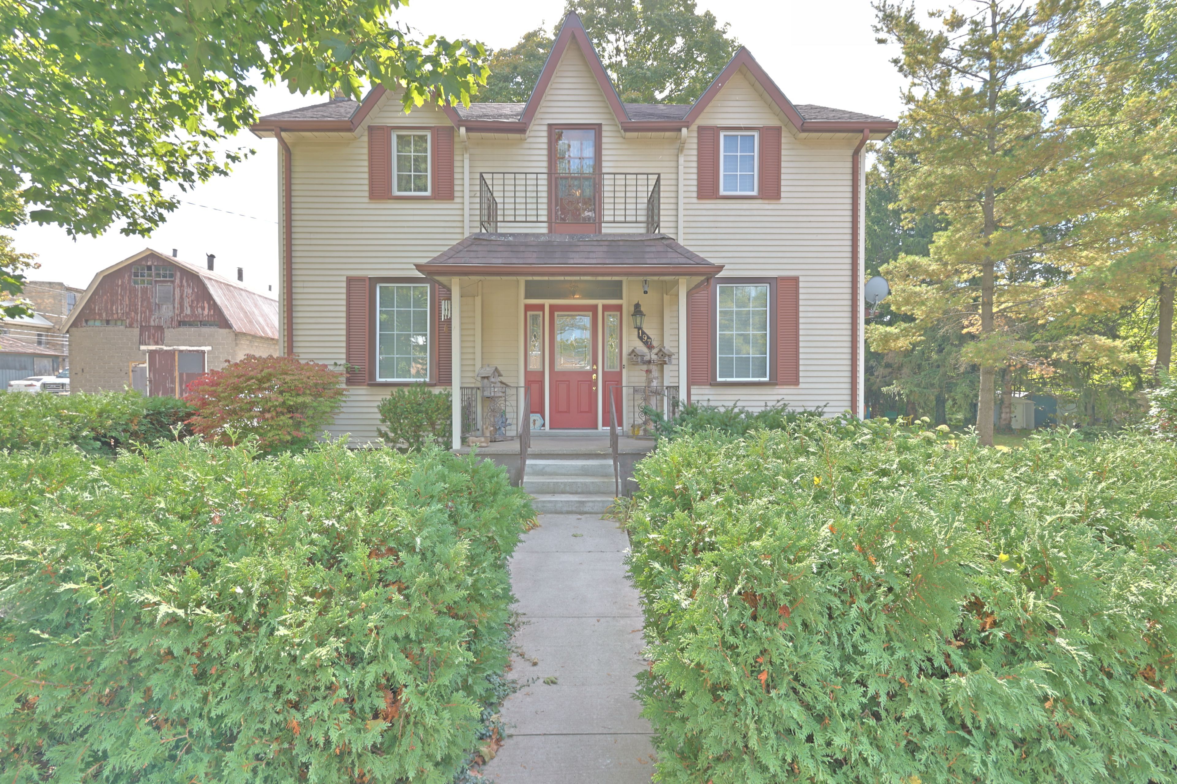 Unique package of spacious century home, charming barn/shop with loft on a double lot steps from all parkhill amenities. Welcome to 197 broad street, parkhill where you find a very unique brick and aluminum century home that has been extensively updated over the years. The home offers 1,950 sq ft above grade plus full basement that is partially finished allowing for 4 bedrooms and 2 full bathrooms. Main floor offers hardwood flooring throughout, spacious principal rooms and 9 foot ceilings for a larger interior feel. This century home is filled with charm as you enter into the living room that flows into the kitchen with an expansive dining area. Off of dining area is a convenient purpose built office. Main floor primary bedroom with two double closets. The open concept floorplan also allows for main floor living with the full bathroom already equipped with washer and dryer connections. Second floor allows for another full four piece bathroom and three bedrooms with second level balcony off of landing area. The partially finished lower level offers a rec room with a real brick feature wall around a wood fireplace. The rest of lower level features lots of storage, utility room, laundry room and more. Home is situated on a spacious double lot that could allow for development potential or simply a large property for your family to enjoy. The property features a step back in time with the original 'horse barn' from the early 1900's. The barn is still in great shape that offers lots of possibilities on the main level and a very cool second level loft area just waiting for someone to make it something special! Backyard offers a peaceful setting with lots of mature trees and cedar hedges offering lots of shade cover and privacy. The extensive updates over the years include electrical, plumbing, drywall, insulation, large addition, roof, kitchen, bathrooms and much more.