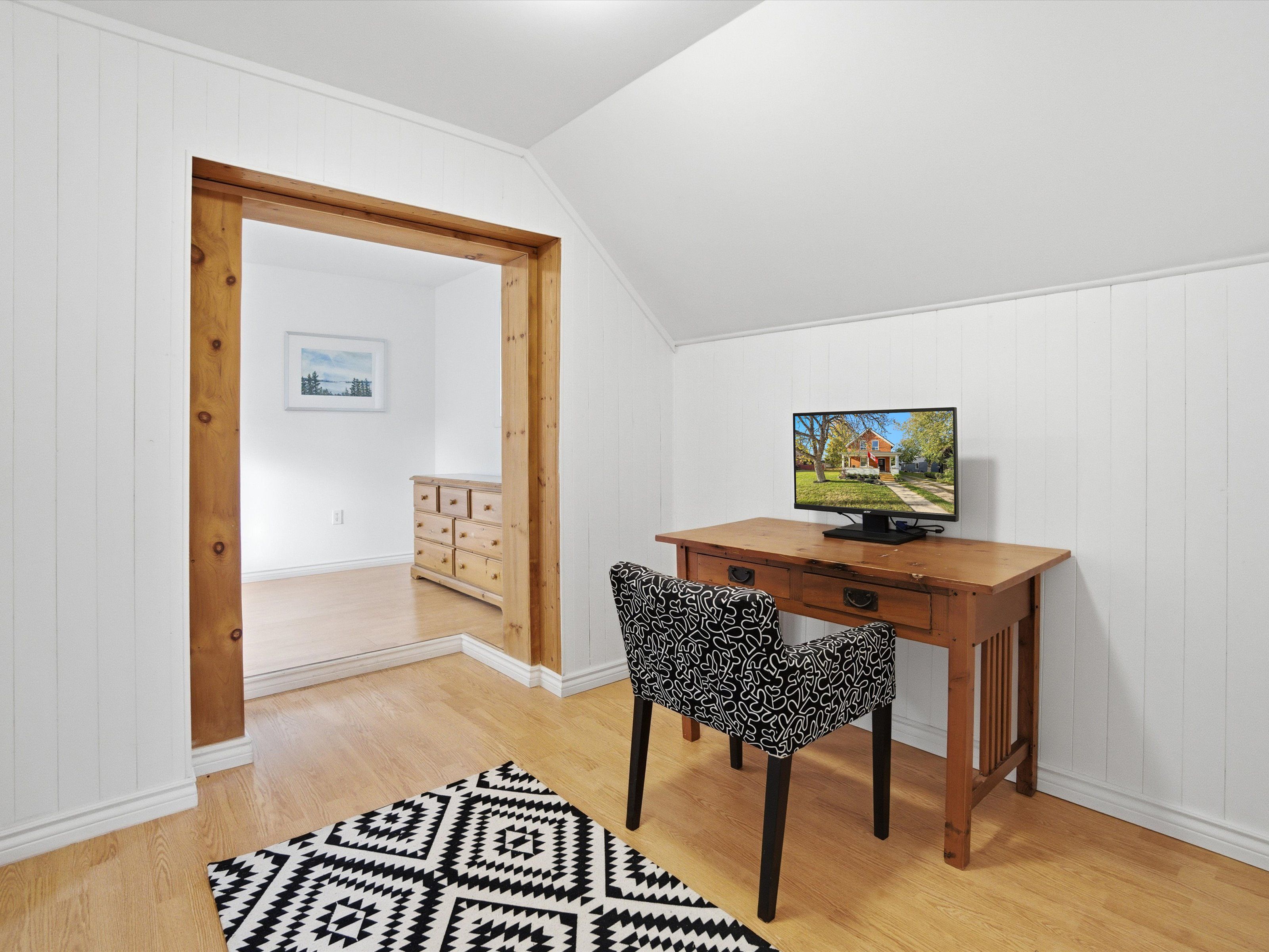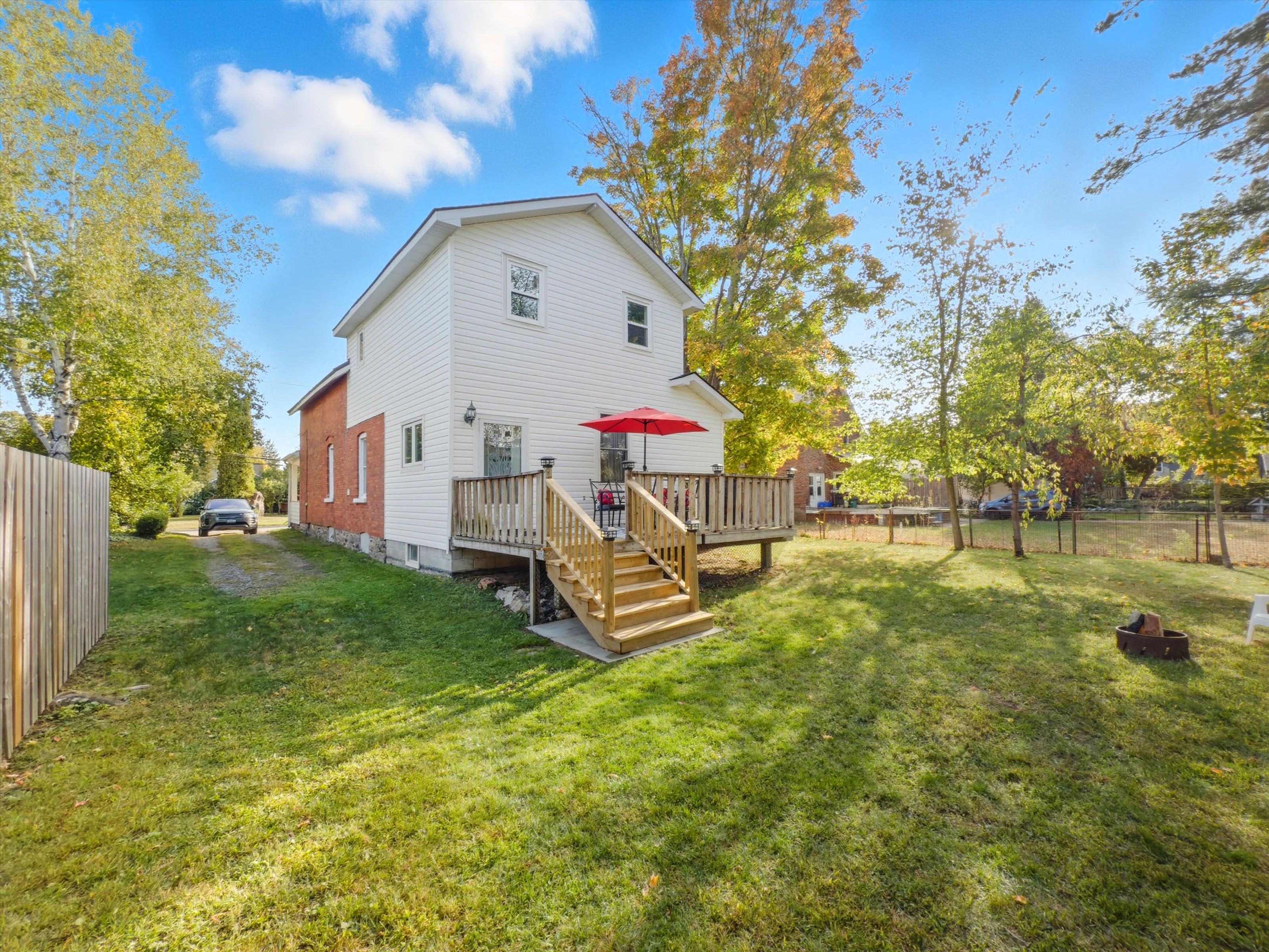 Welcome to 197 dill street! This charming 5-bed 2-bath brick home welcomes you with timeless warmth and character. Set on a rare oversized town lot, it blends historic design with modern comforts in a spacious layout ideal for families or young professionals alike. The main floor features a bright sun-filled living room, formal dining area, and large kitchen with space for a cozy breakfast nook. Kitchen has been updated with new dishwasher, backsplash, countertops, and refreshed cabinetry. Main floor also includes laundry, a mud room and a large backroom with 3p ensuite and a walk-in closet ideal for a comfortable family room or primary main floor bedroom. Second story offers 4 additional bedrooms + a spacious 4p bathroom with updated flooring, vanity, and mirror providing a clean, contemporary style. 2 additional sitting areas offer endless possibilities: home office, study area, reading nook, or playroom. Recent upgrades ensure lasting peace of mind, including all new: high-efficiency furnace, roof on addition, chimney flashing, smoke/co detectors, rebuilt front & back stairs, supports under the front porch, and fresh wood siding to complete the look. The south facing front porch provides a relaxing area to enjoy the sunshine. The home has been freshly painted and complemented with new light fixtures that make every corner feel bright and inviting. The refinished large garage enhances the property's curb appeal and provides space for 1 car or a workshop/additional storage. The back deck and spacious yard invites bbqs, campfires, and room for the kids to play. The extended private driveway boasts space for up to 5-cars. This well-loved home offers a perfect blend of comfort and practicality, nestled in the heart of town. Steps away from schools, parks, fitness studios, muskoka lumber arena, library, coffee shops, giaschi public beach, and the bracebridge falls down the road. At 197 dill street, you'll find a move-in-ready home where character meets comfort!