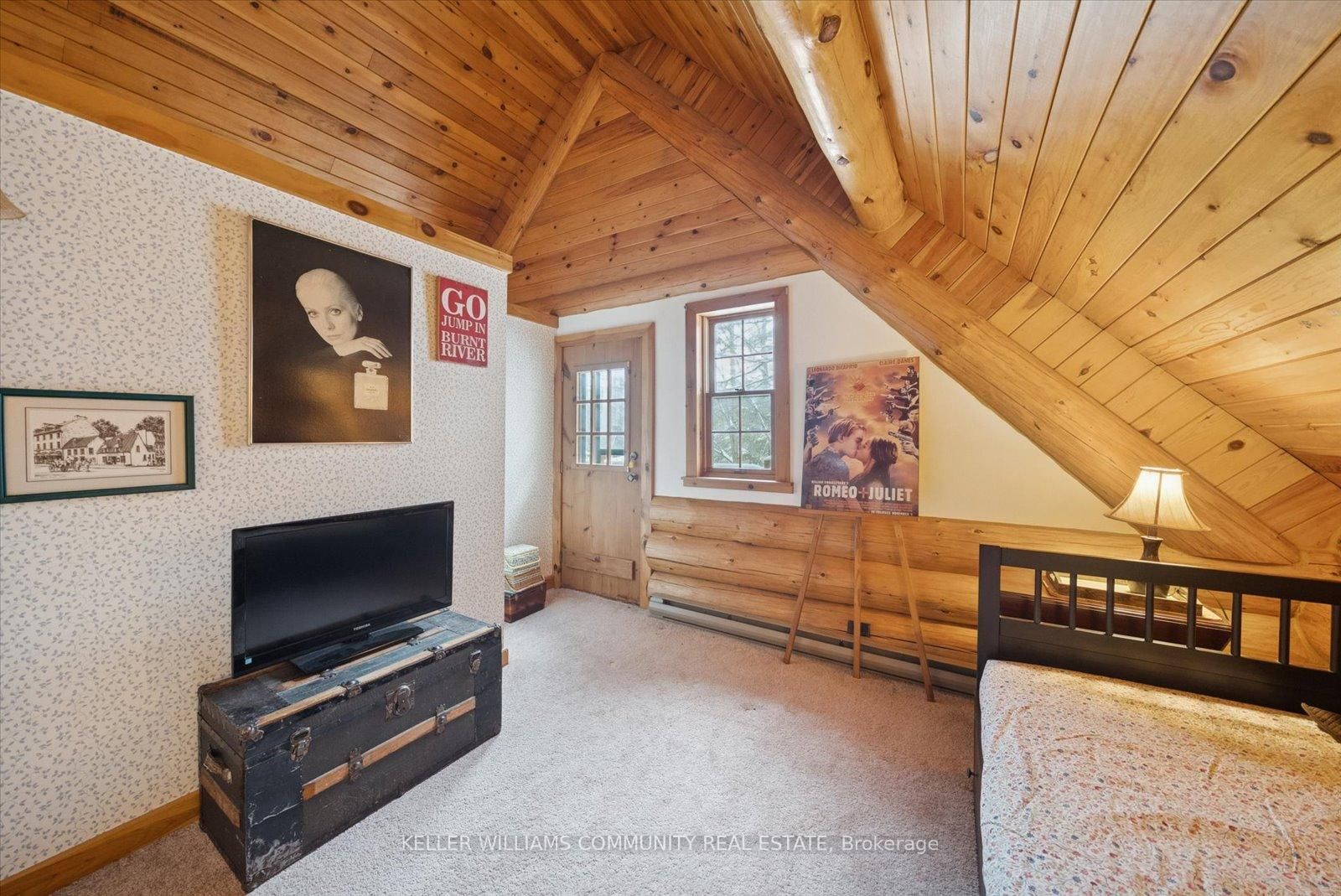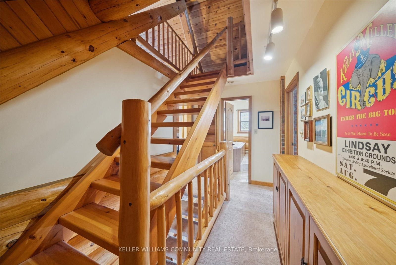 Situated in the village of burnt river, while still being tucked away from the everyday, this 2. 5-storey scandinavian-style log home feels like stepping into your own private world - quiet, natural, and the perfect mix of manicured landscaping and untouched forest. With 1. 5 acres of open yard space and the rest of your 27 acres being forested trails, it's a haven for nature lovers, gardeners, and anyone craving room to grow and explore, or just breathe. Inside, a floor-to-ceiling stone fireplace anchors the kitchen and living area with instant warmth and rustic charm. The main floor also includes a flexible bedroom/office, a 3-piece bath, and a bright 3-season sunroom that feels like a fairy tale whether it's raining or the sunniest day on earth! From here you can head outside and down enchanting stone steps into your own greenery sanctuary. Upstairs offers three bedrooms, including a spacious primary with a bonus room currently used as an incredible walk-in closet, easily repurposed as an office or private retreat. Another full bathroom completes this level. The third-floor loft adds a playful touch, ideal for reading, relaxing, or a kids' hideaway. The finished walkout basement expands your living space and features a wood stove, which is a pleasant touch on those colder days. Outside, you'll find a triple-car garage (with 100amp service) with 1,000 sq. Ft. Of finished loft space above for guests, work, or hobbies, plus an 8x2 garden shed and an 10x24 drive shed for your tractor and toys. This is more than a home, it's a lifestyle. Mornings with birdsong, afternoons on wooded trails, evenings by the fire. Rustic charm and modern comfort meet here. Conveniently located near small-town essentials: kinmount (14 minutes), fenelon falls (15 minutes), bobcaygeon and minden (~30 minutes), and direct access to the victoria rail trail (atv/snowmobile trails) a boat launch at the end of hillside drive, and close proximity to four mile lake and crystal lake.
