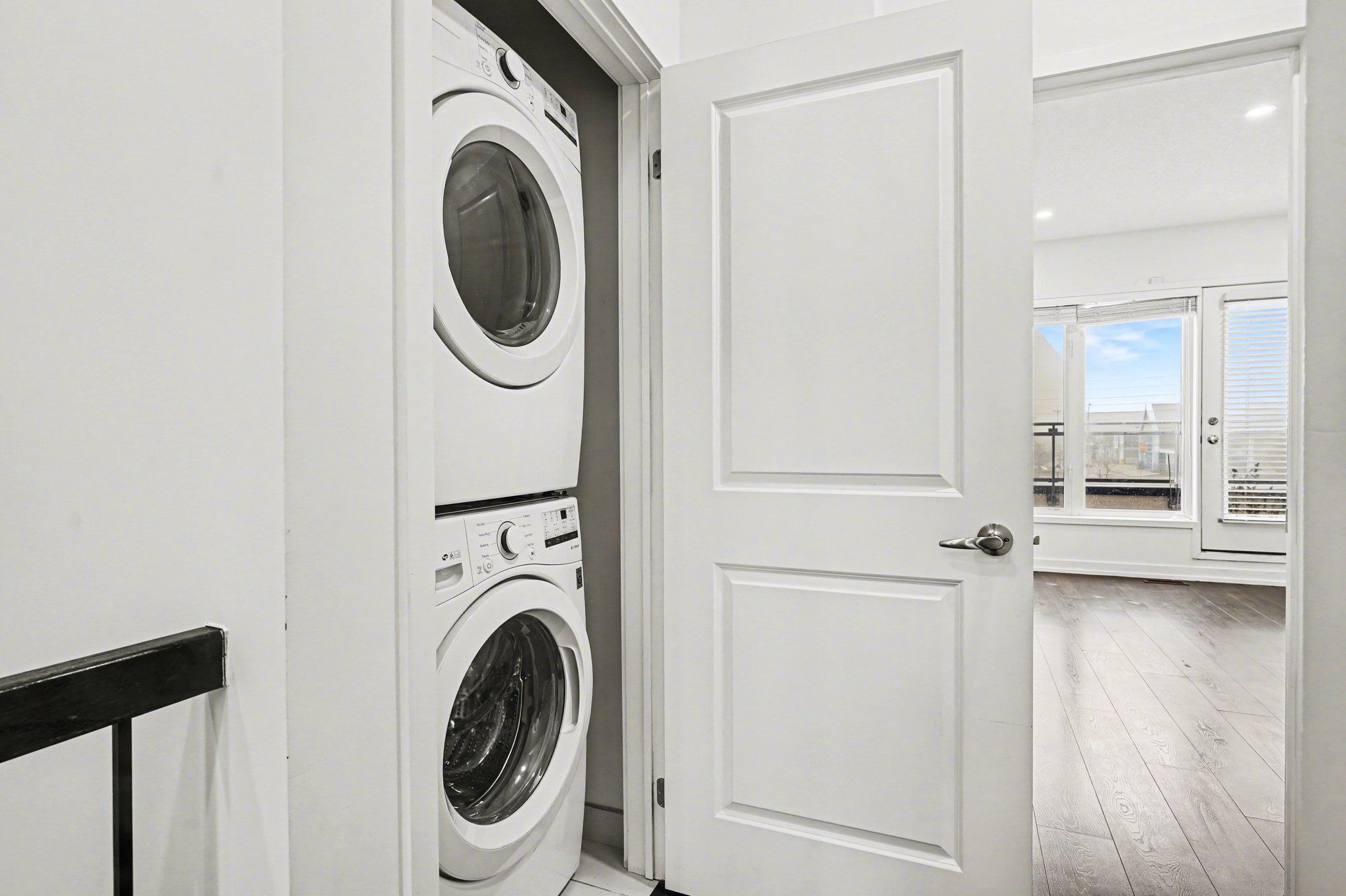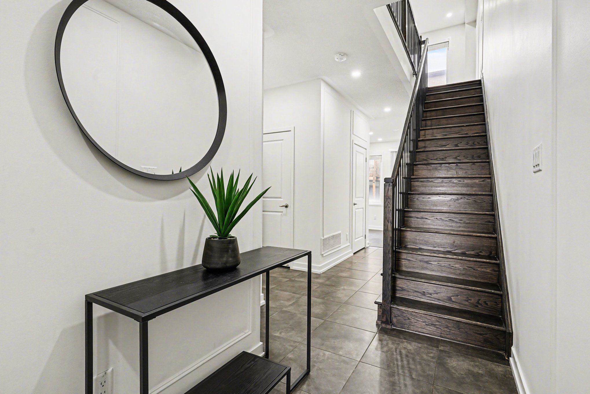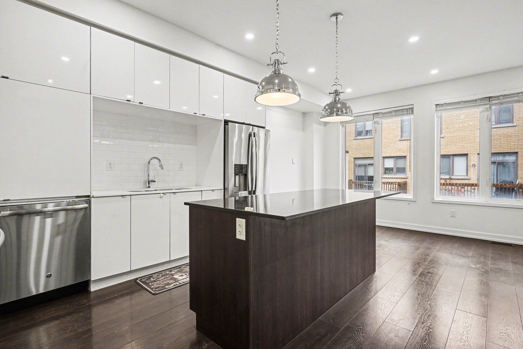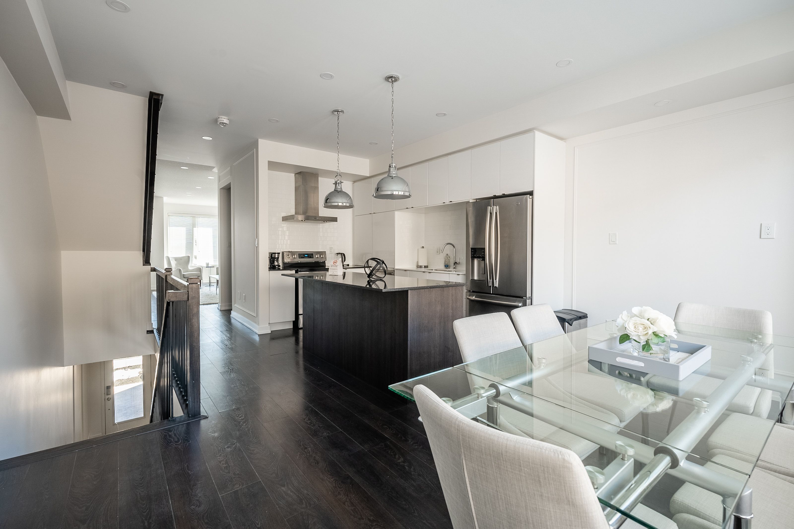 • Bright, modern townhouse with large windows for natural light.