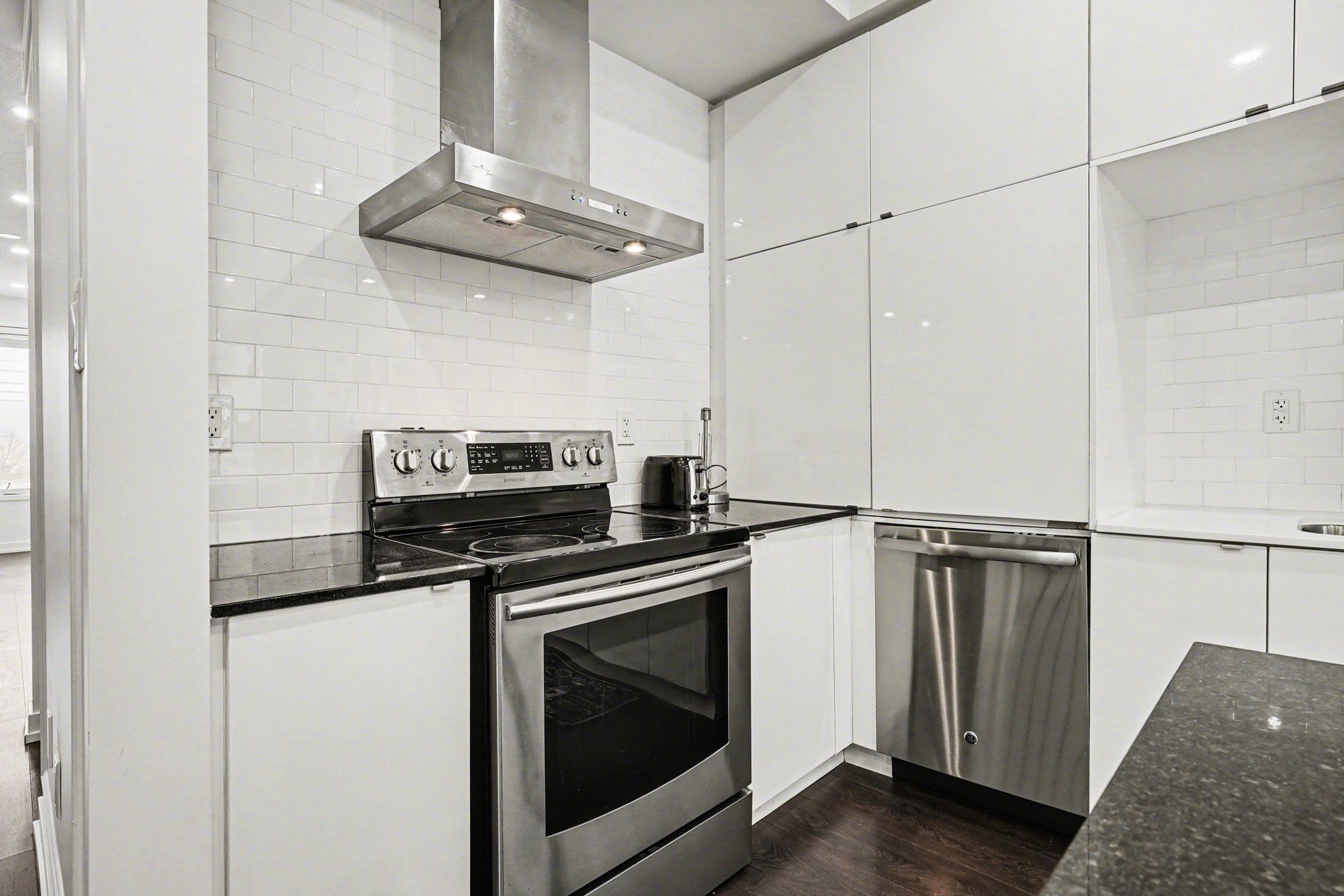 • Sleek kitchen with ample cabinetry and finishes.