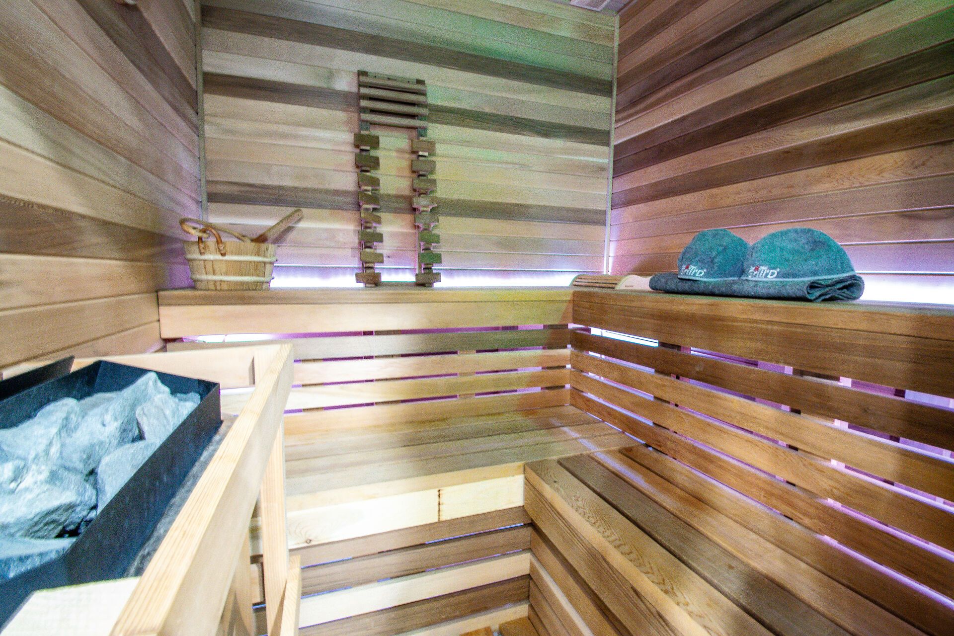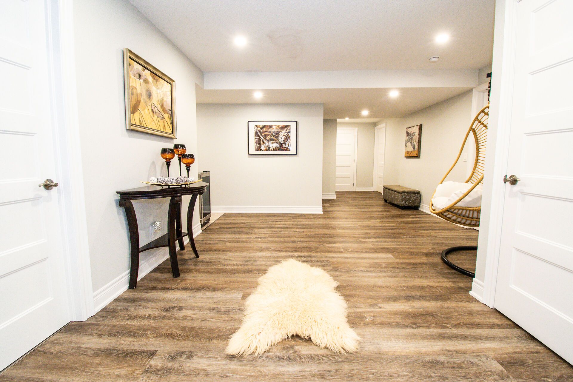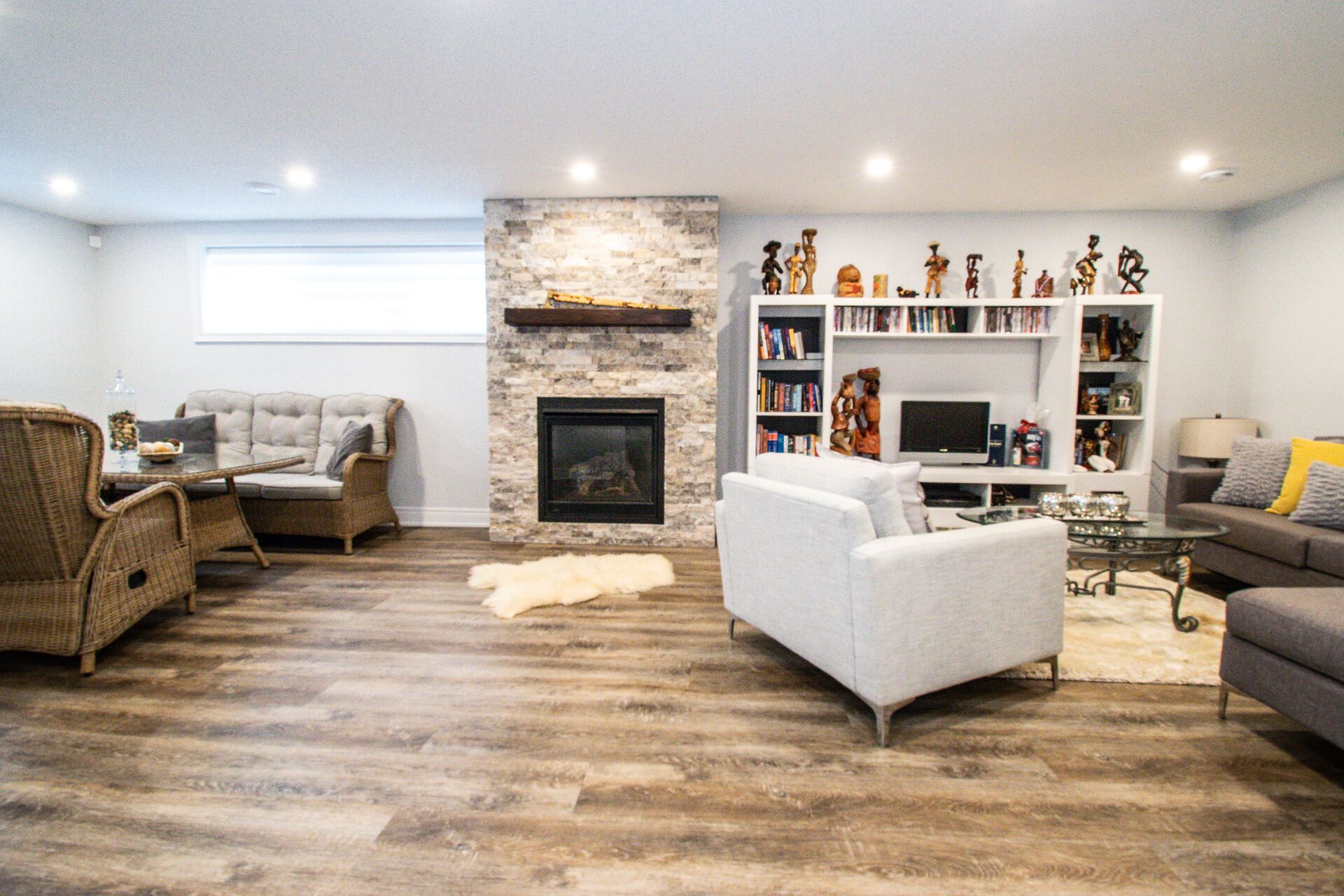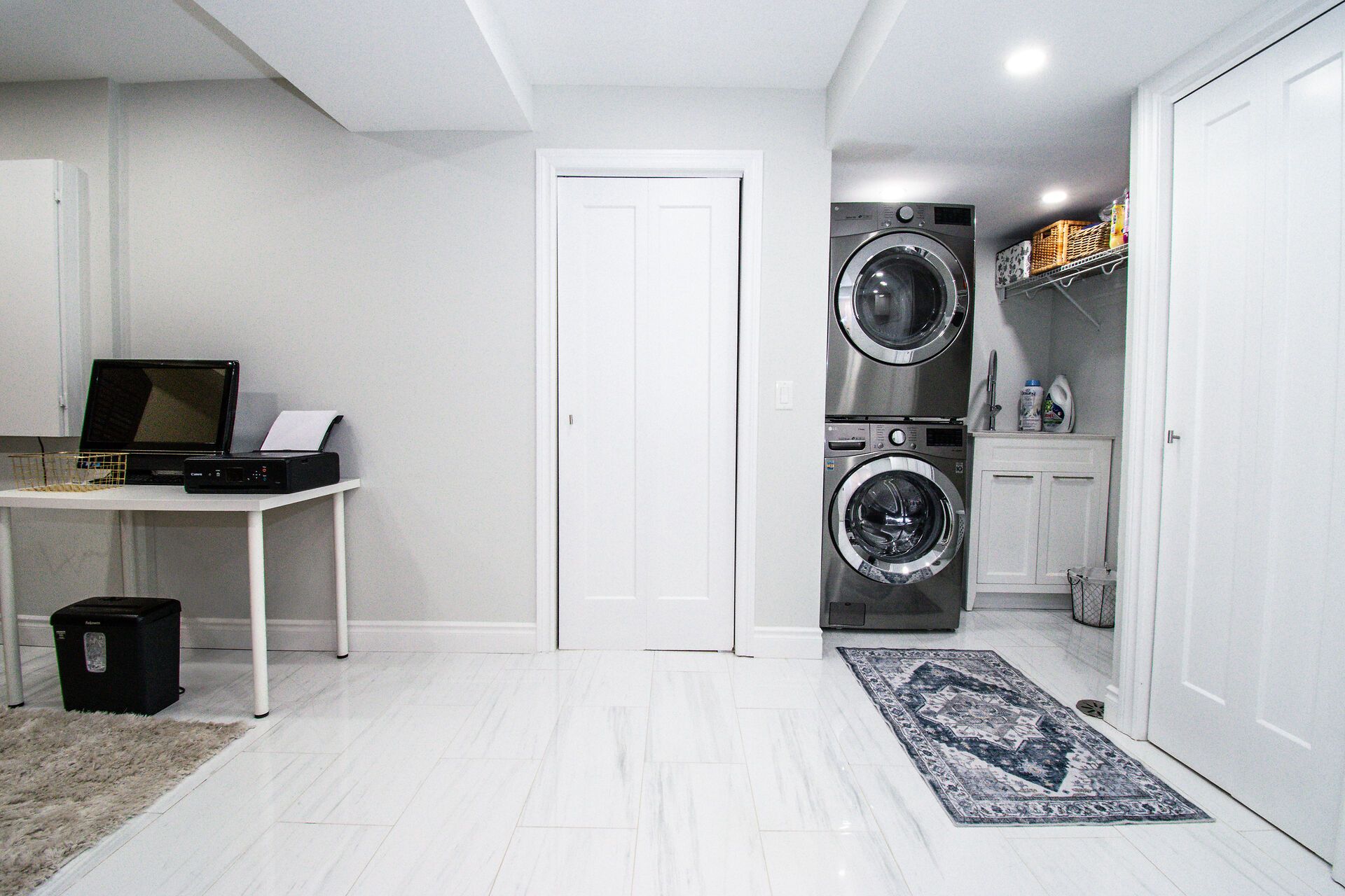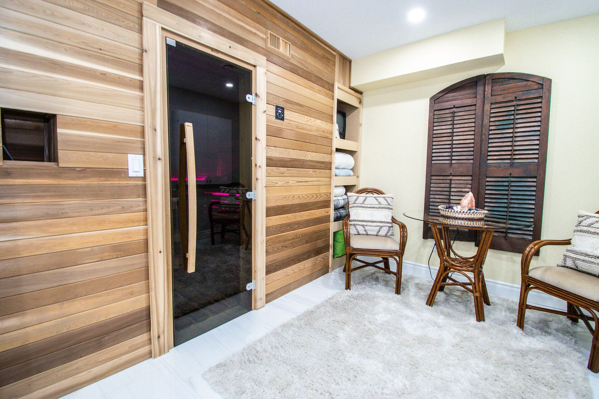 • Lower level includes a cozy family room, office space, and sauna.