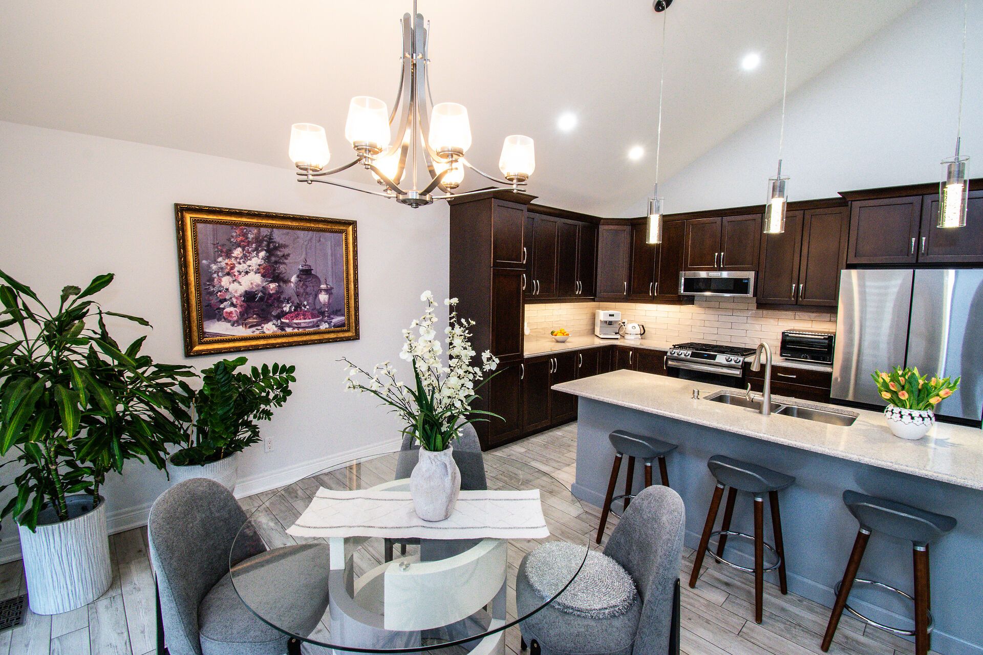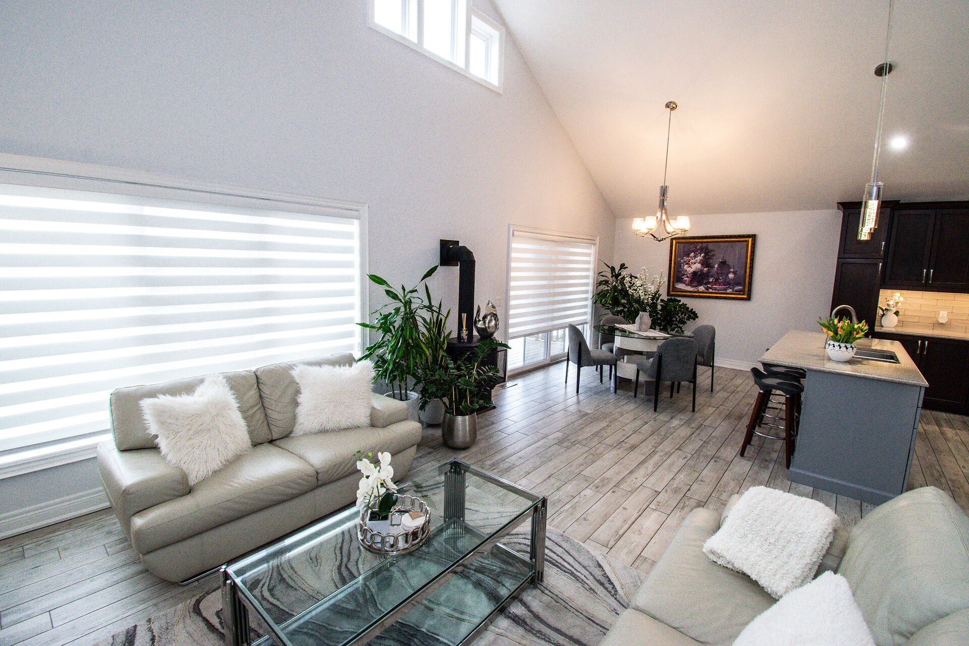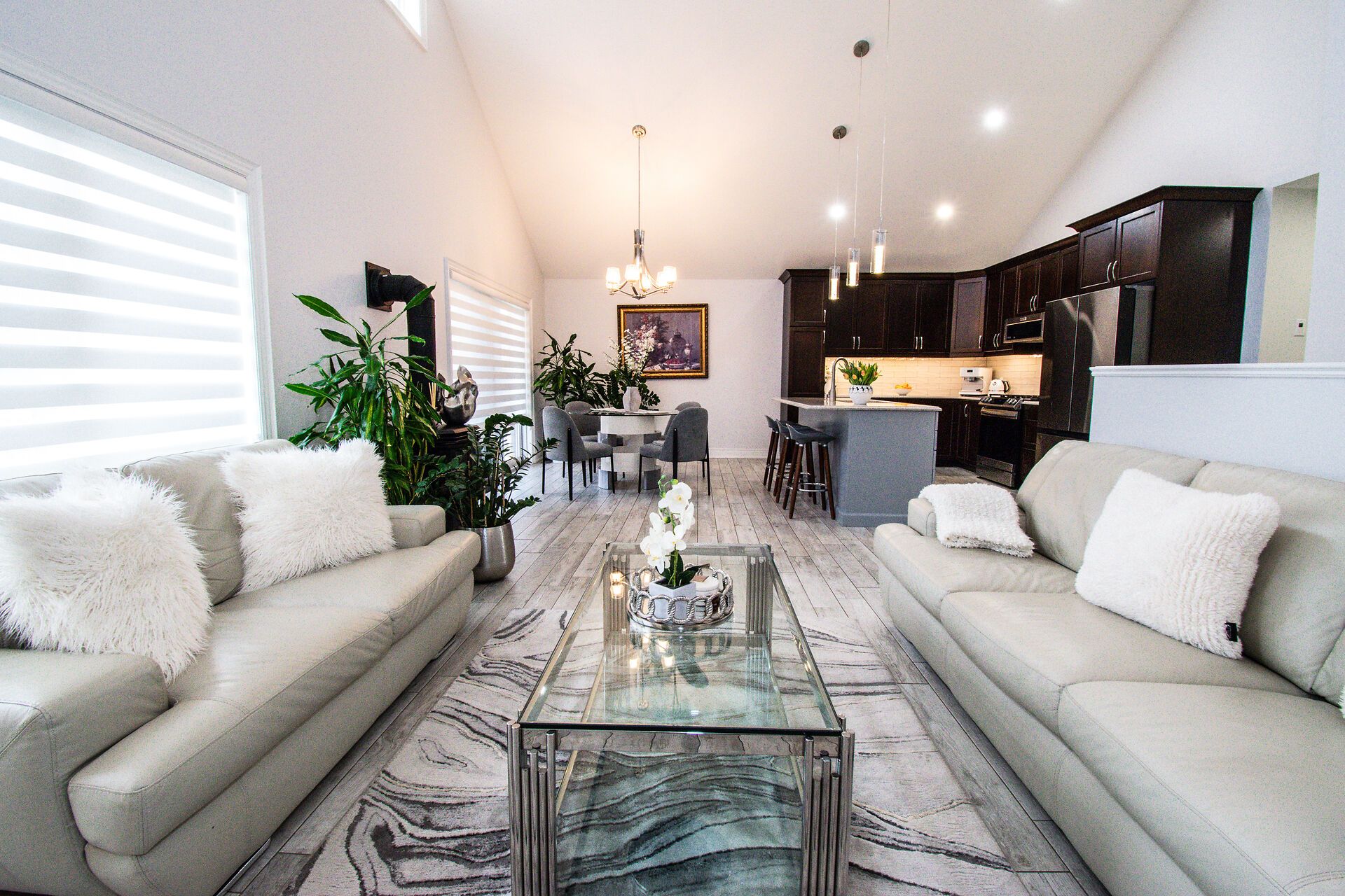 • Open concept kitchen and dining area flows into a great room with cathedral ceilings.