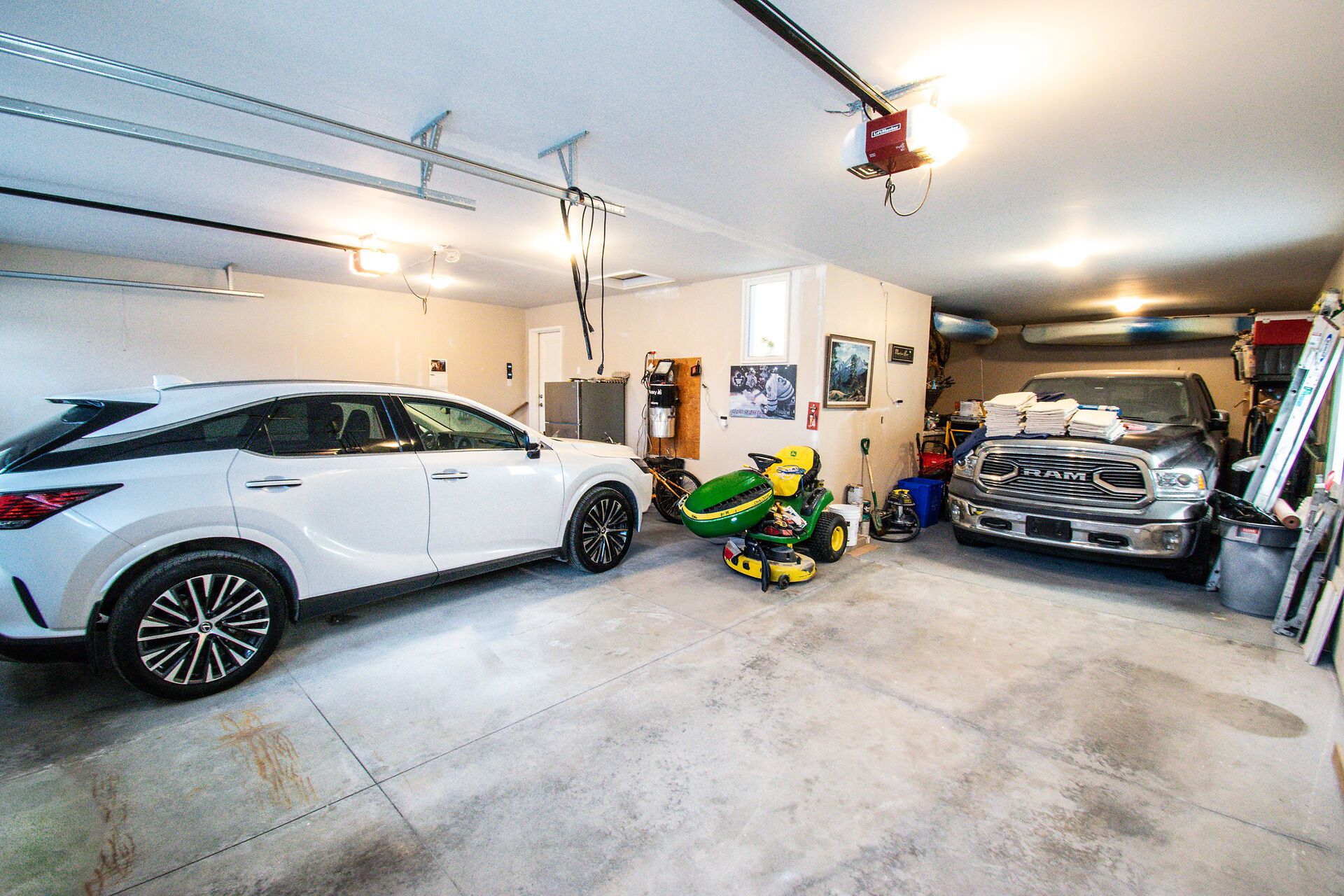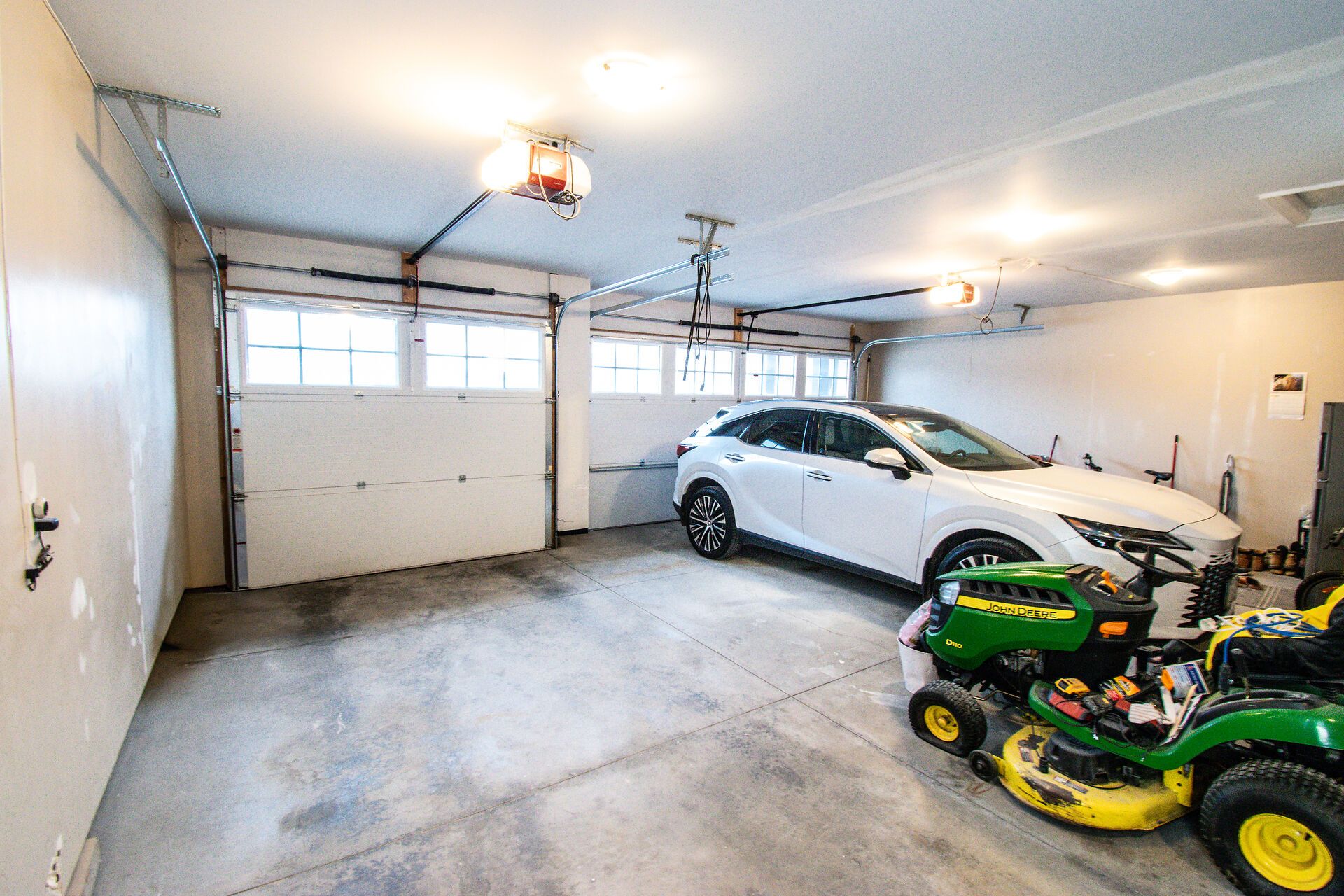 • Oversized garage with space for four vehicles and additional storage.