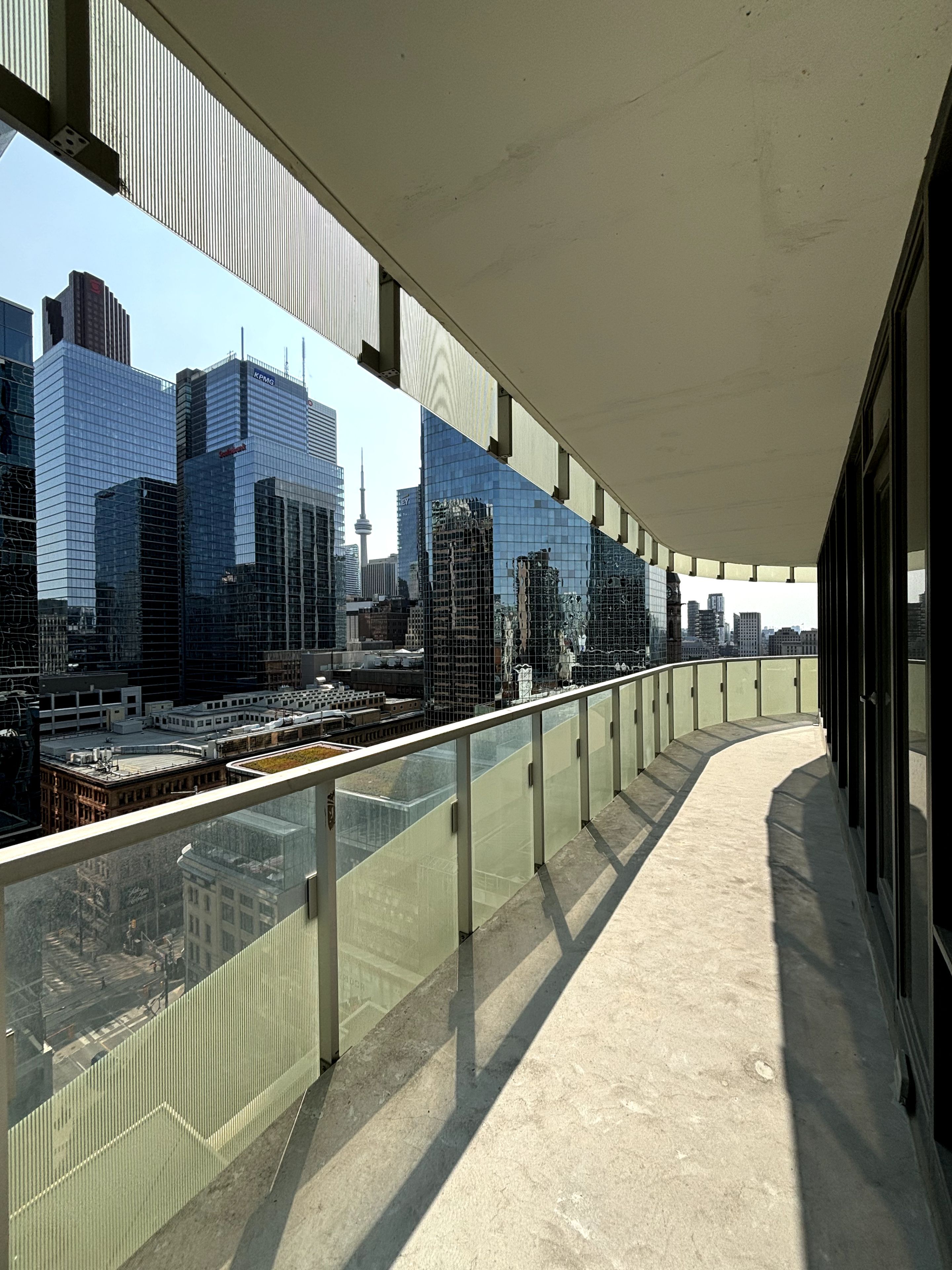 Prime location! Exclusive 3 bed, 2 full bath approx 900sqft corner unit at the sought-after massey tower residences in the heart of toronto combining elegance & connectivity. Step into the exquisite lobby w/ timeless design leading up to your unit. Enter into the bright foyer w/ 9ft tall smooth ceilings, hardwood floors, & pot lights thru-out. Open-concept modern floorplan w/ flr-to-ceiling windows presenting living combined w/ dining & multiple walk-outs to the gorgeous wrap-around covered balcony offering breathtaking south-west views of the toronto sky-line & cn tower. Executive chefs kitchen upgraded w/ b/i ss high-end appliances, updated counters/backsplash, & breakfast bar island. Primary bed retreat w/ 4-pc ensuite. 2nd bedroom includes 3-pc semi-ensuite. 3rd bedroom ideal for kids, office space, or guest accommodations. State of the art amenities include: 24hr concierge, gym, rooftop garden, steam room, cocktail lounge, guests suites & much more! Book your private showing now!