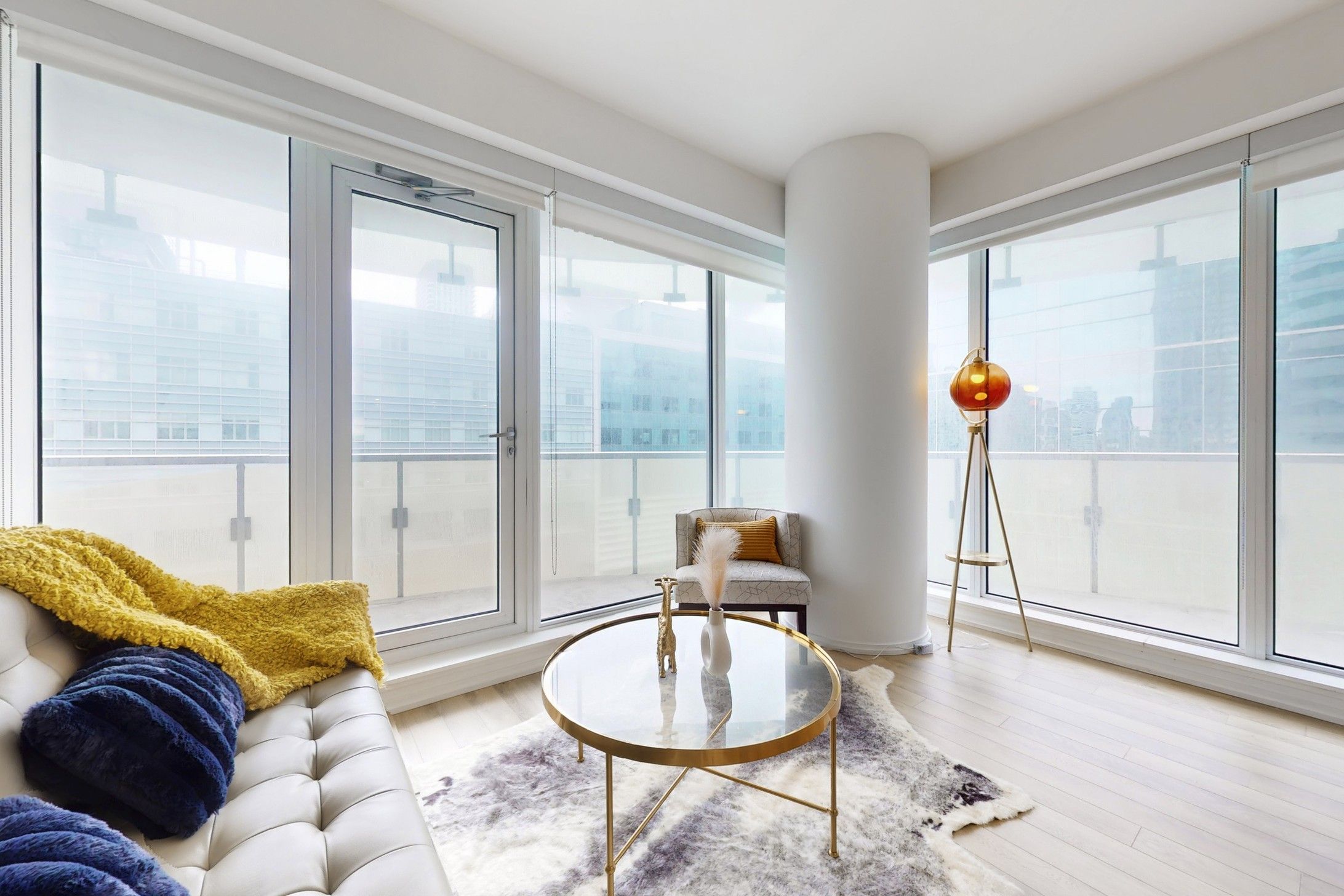 • Bright corner unit with floor-to-ceiling windows and 9ft ceilings.