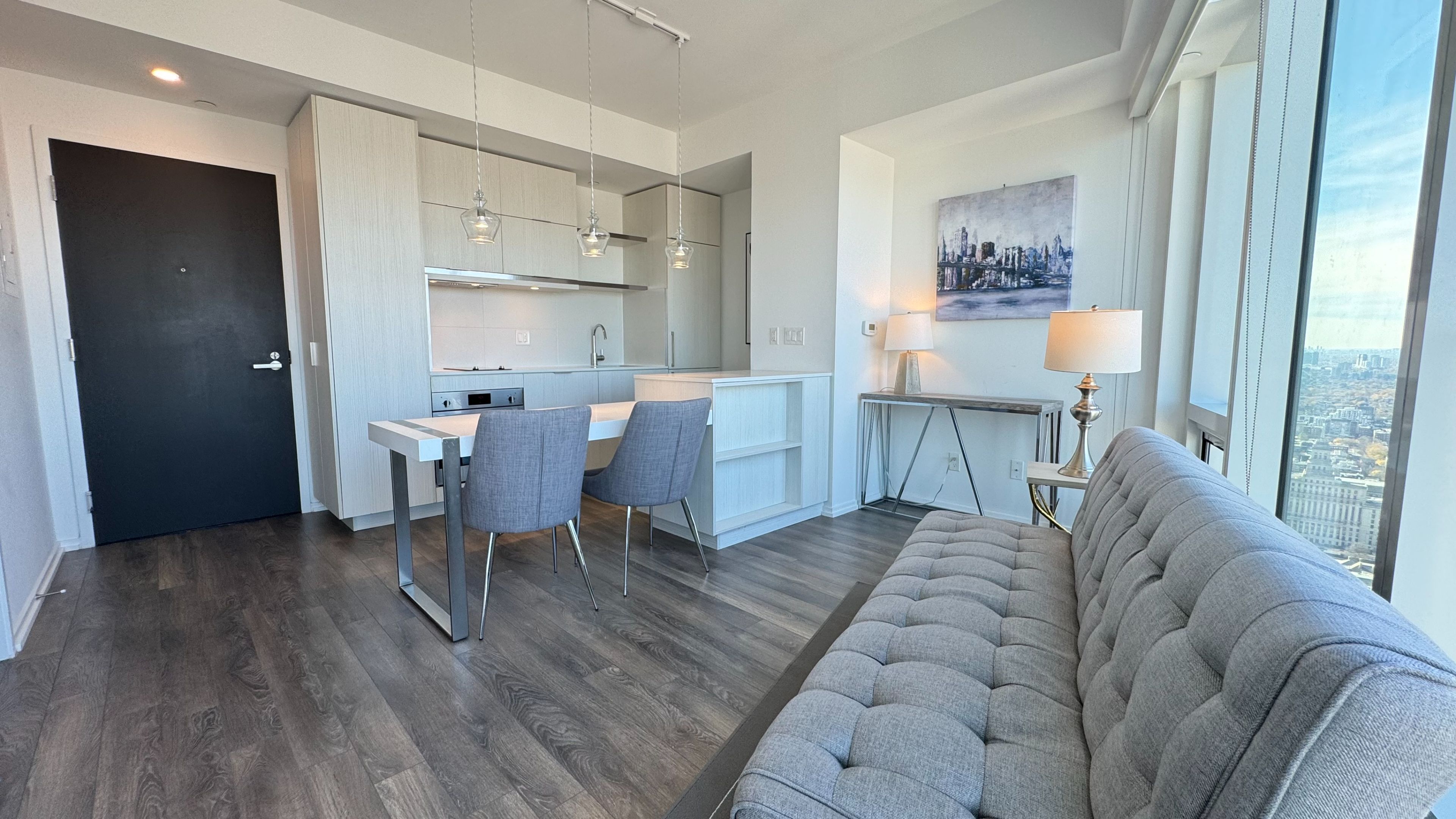 Welcome to the massey tower condominiums. This high floor bachelor corner suite features designer kitchen cabinetry with stainless steel appliances, granite counter tops & an undermount sink. Bright 9ft. Floor-to-ceiling wrap around windows with customized roller shades & laminate flooring throughout facing stunning c. N. Tower & city views. Steps to toronto's eaton centre, t. T. C. Subway, yonge - dundas square, u of t, george brown, toronto metropolitan university (ryerson), the financial & entertainment districts