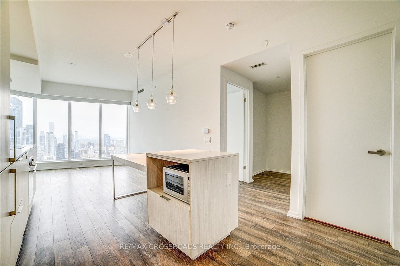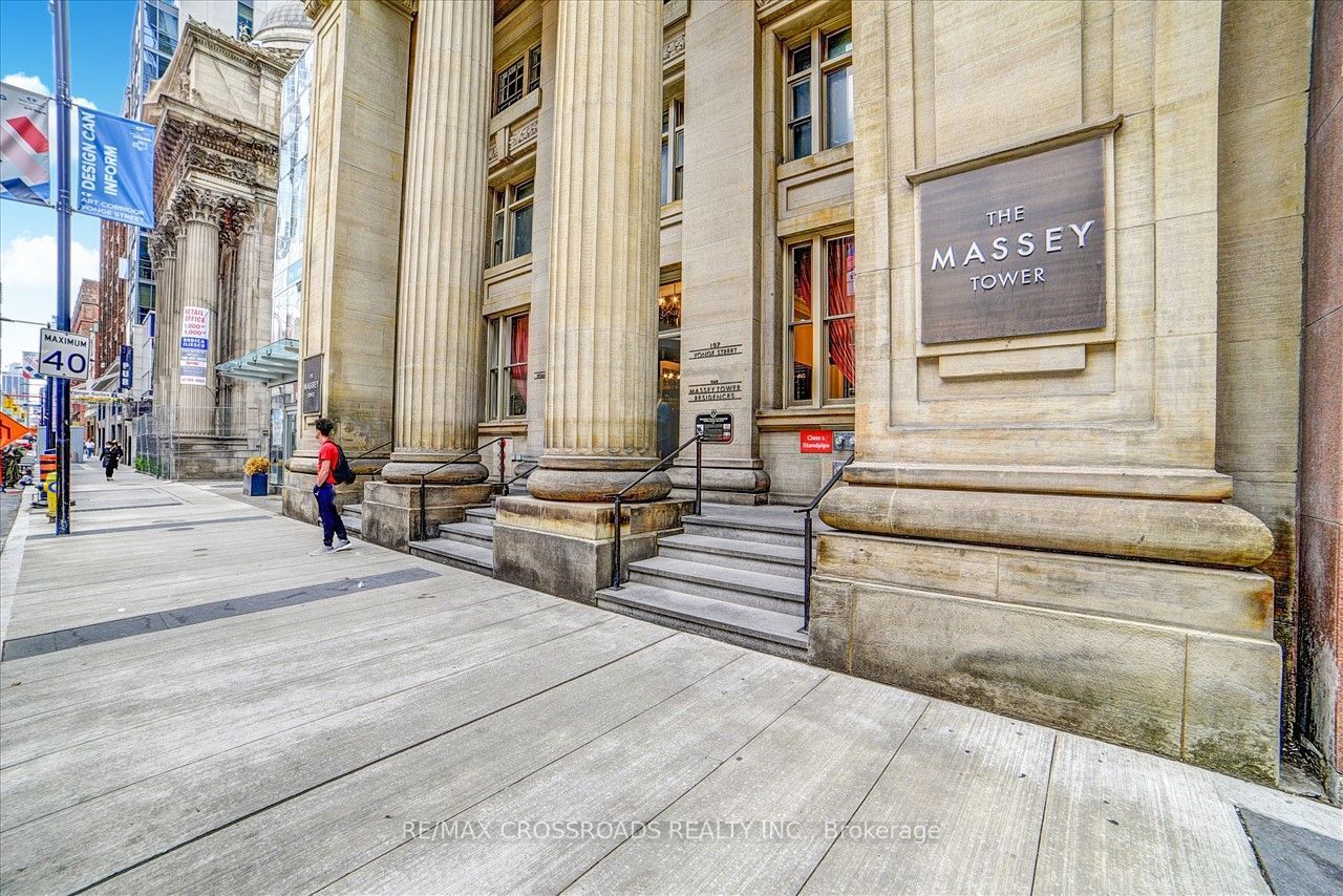 Luxurious one bedroom + den suite. 610 sqft & 10ft ceilings. Unobstructed view of dundas square. Walking distance to eaton's centre, queen subway station, massey hall, the financial district, city hall, toronto metropolitan university, restaurants, entertainment, & shopping. 24-hr concierge, fitness centre, guest suites, outdoor terrace, party room. **extras** european-style appliances: glass ceramic cook top, stainless steel oven, integrated refrigerator, freestanding microwave. Handicapped automatic door w/pad for entry.