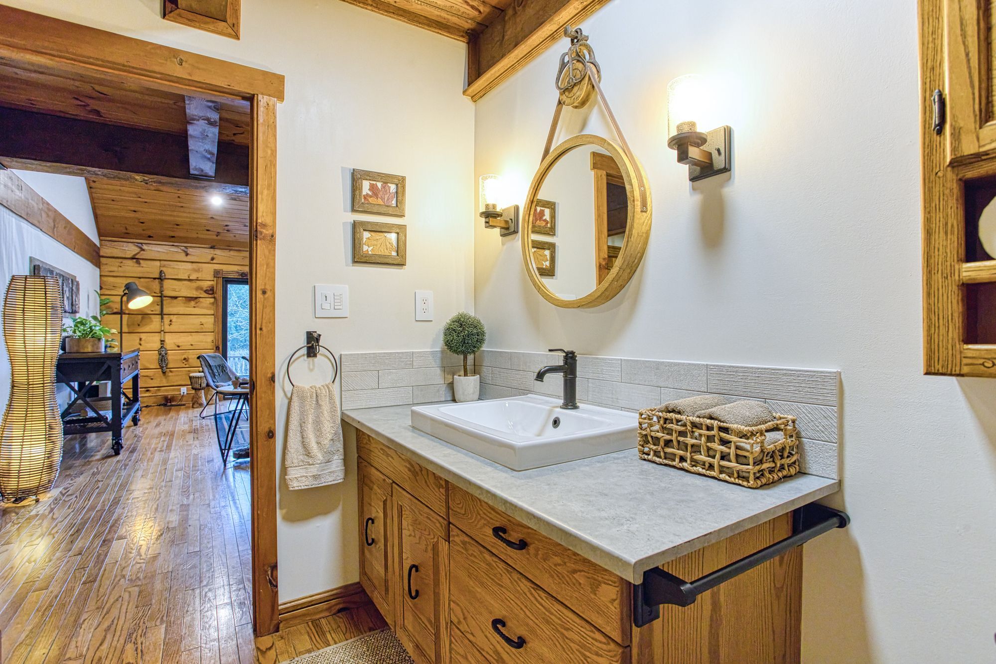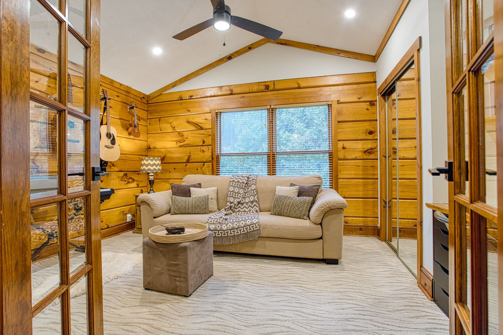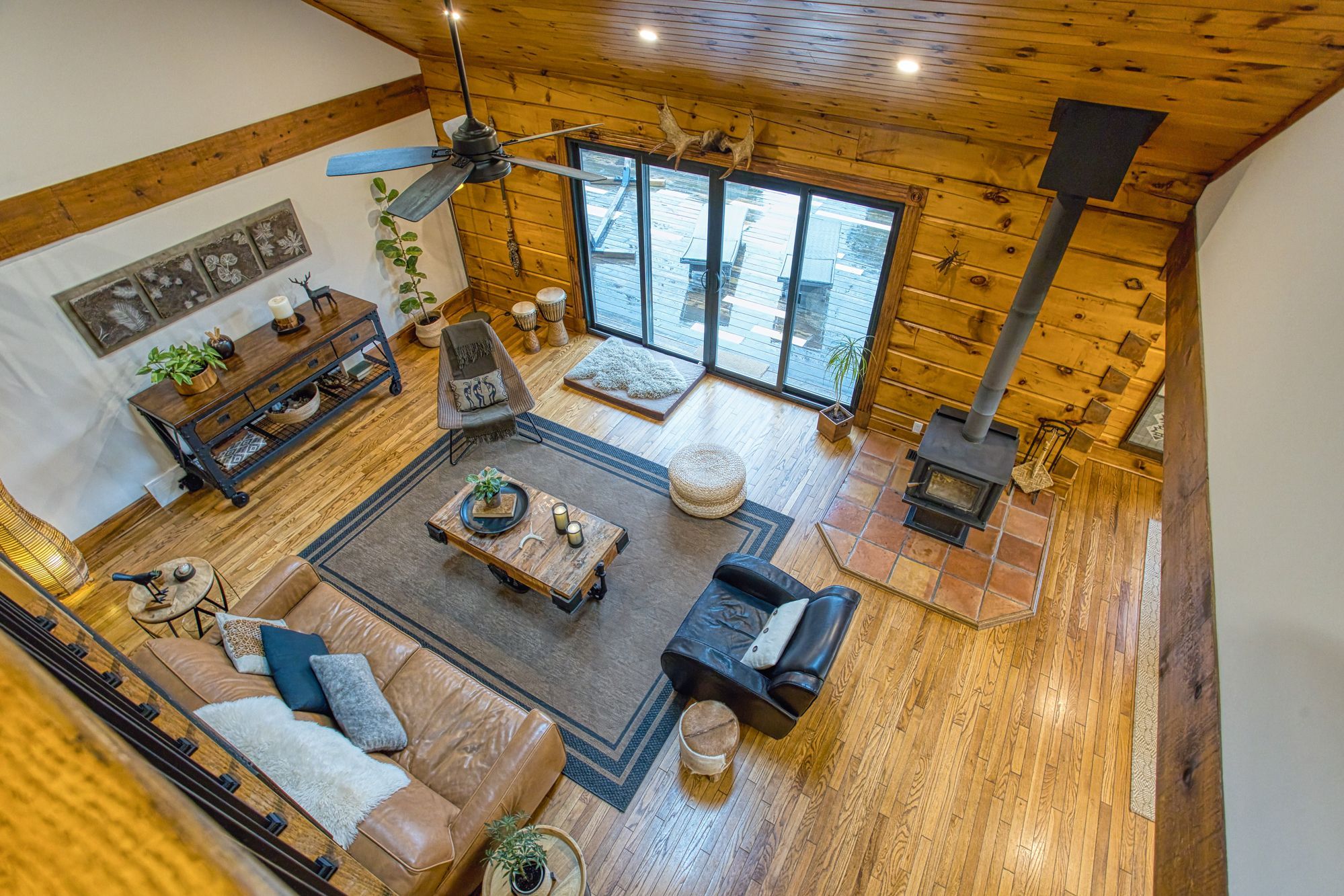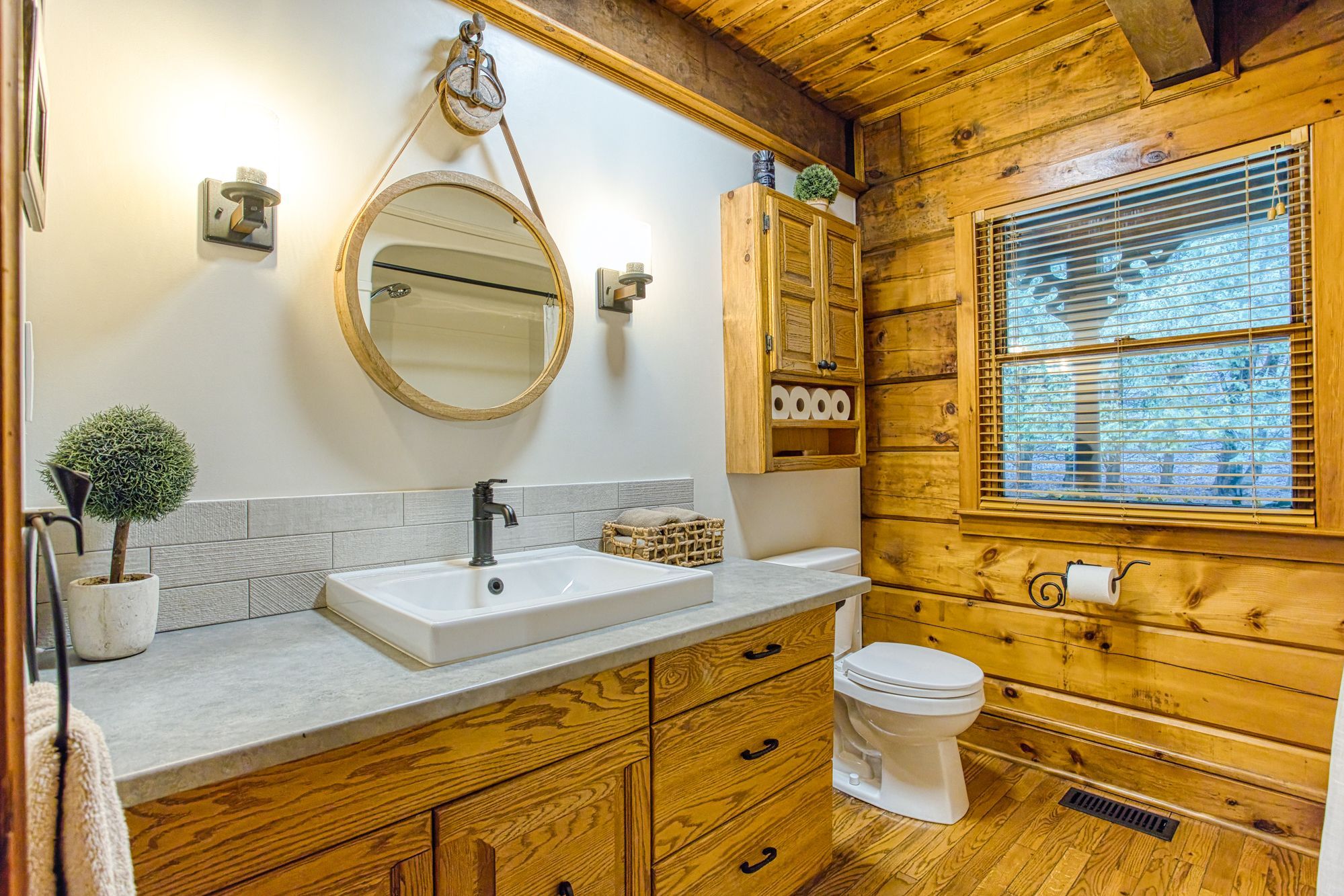 • Authentic log home crafted from white pine with unique dovetail joinery.