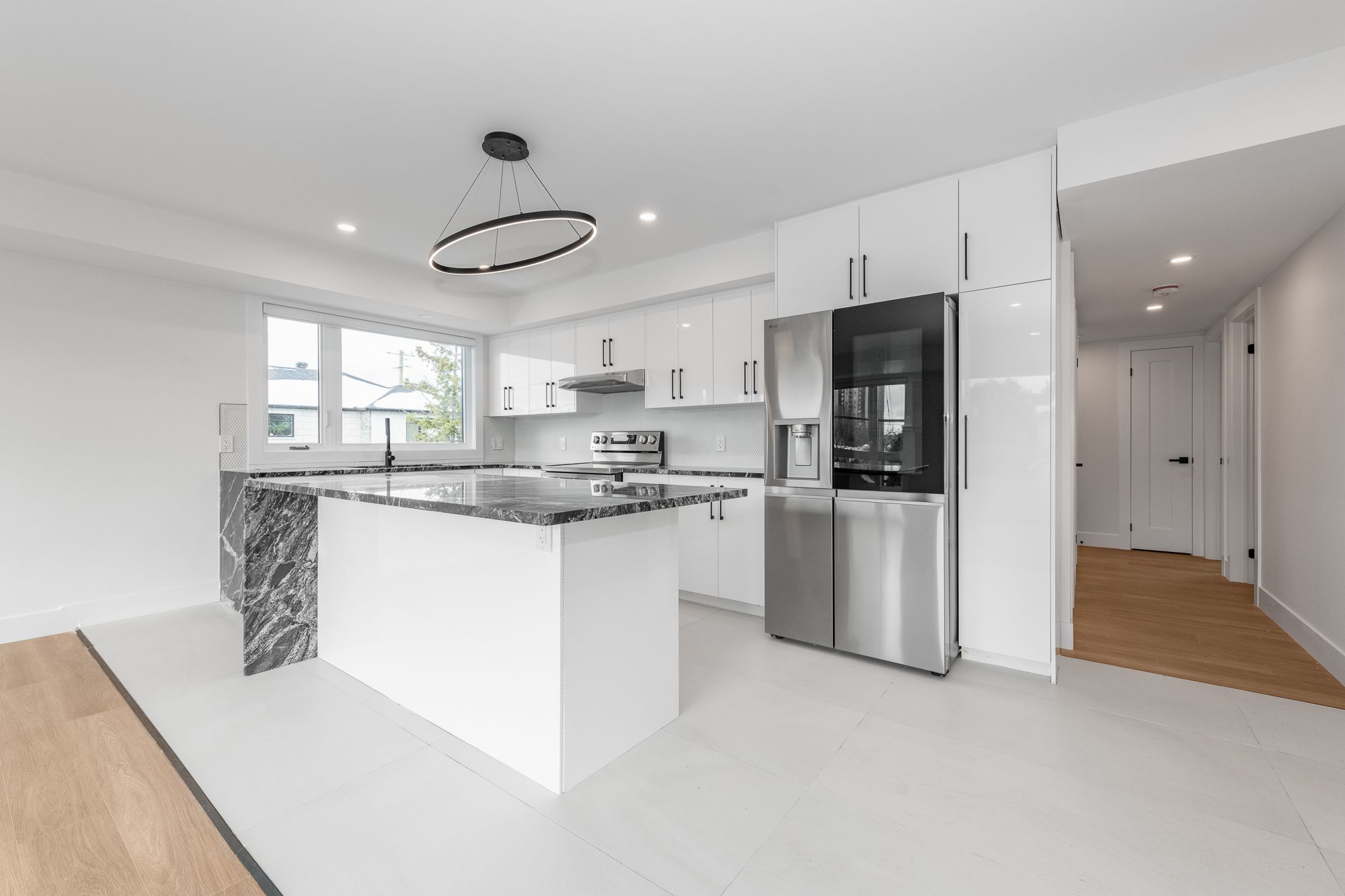 • Stylish kitchen with quartz countertops and stainless steel appliances.