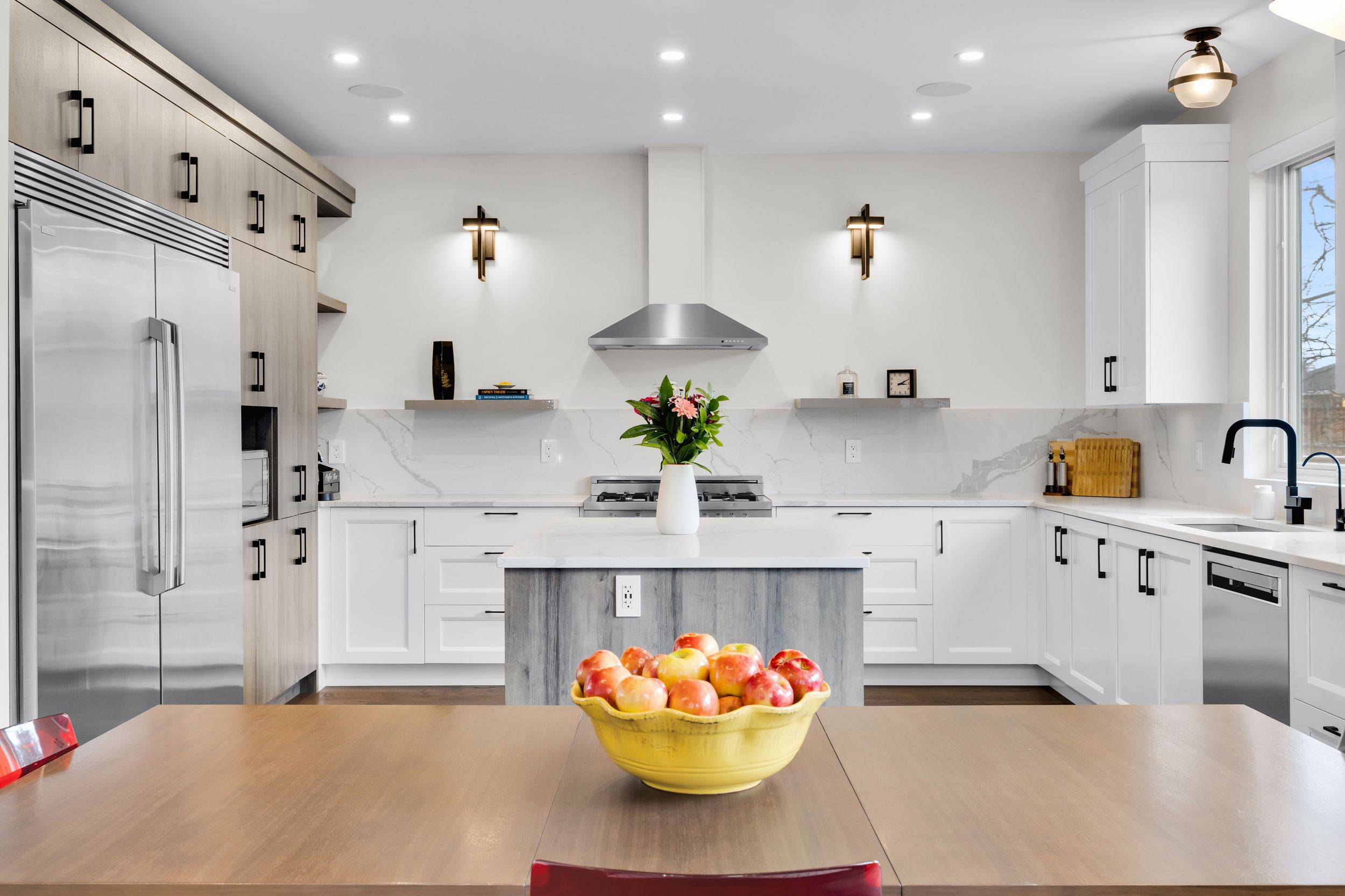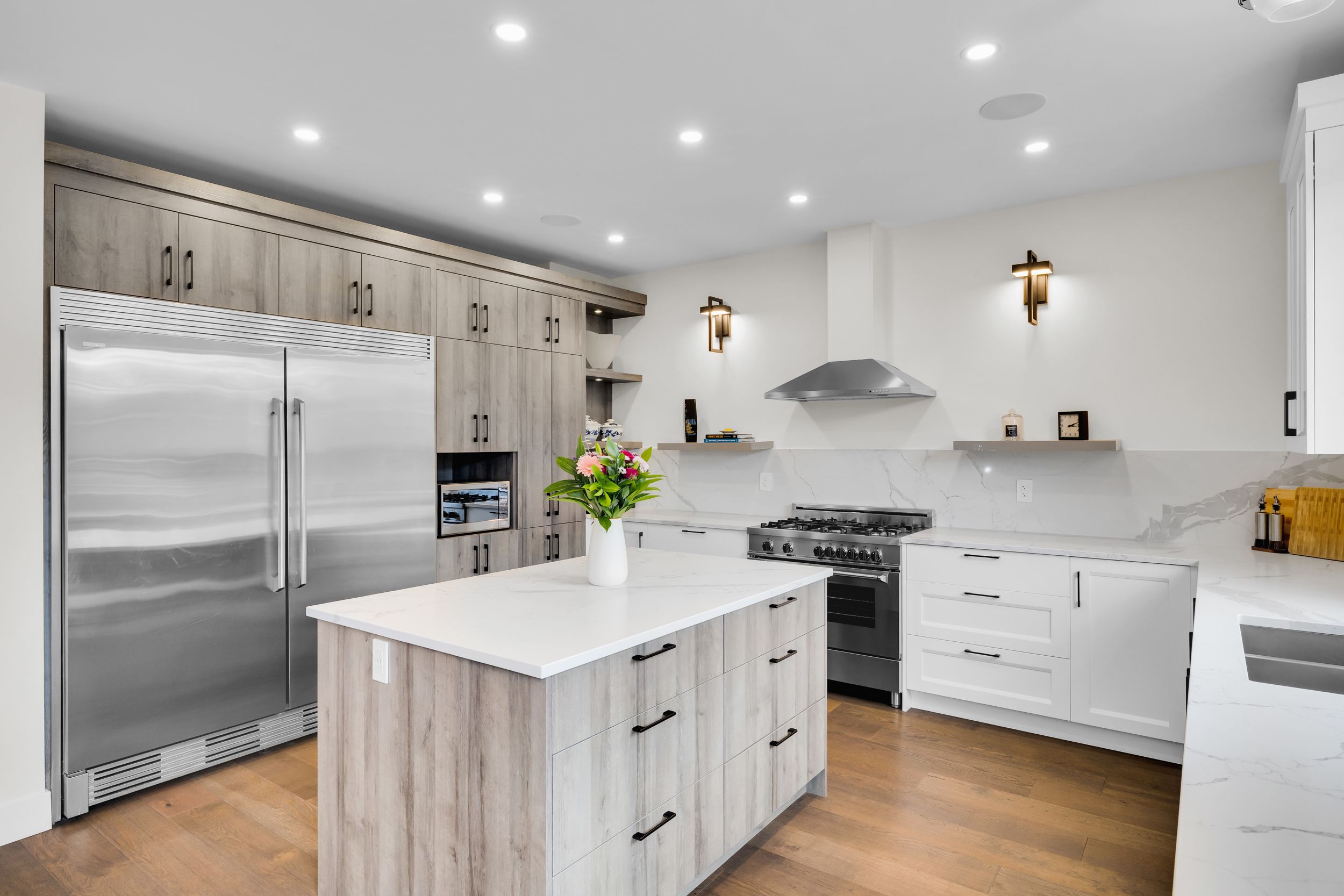 • Chef-inspired kitchen featuring modern appliances and ample storage.