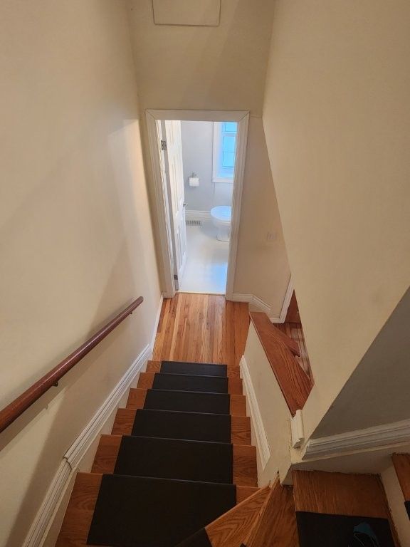 • Three spacious bedrooms upstairs with hardwood flooring throughout.