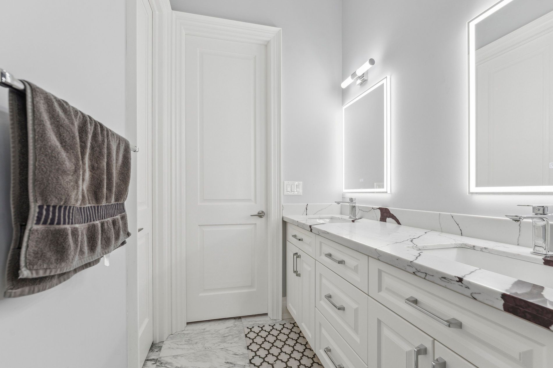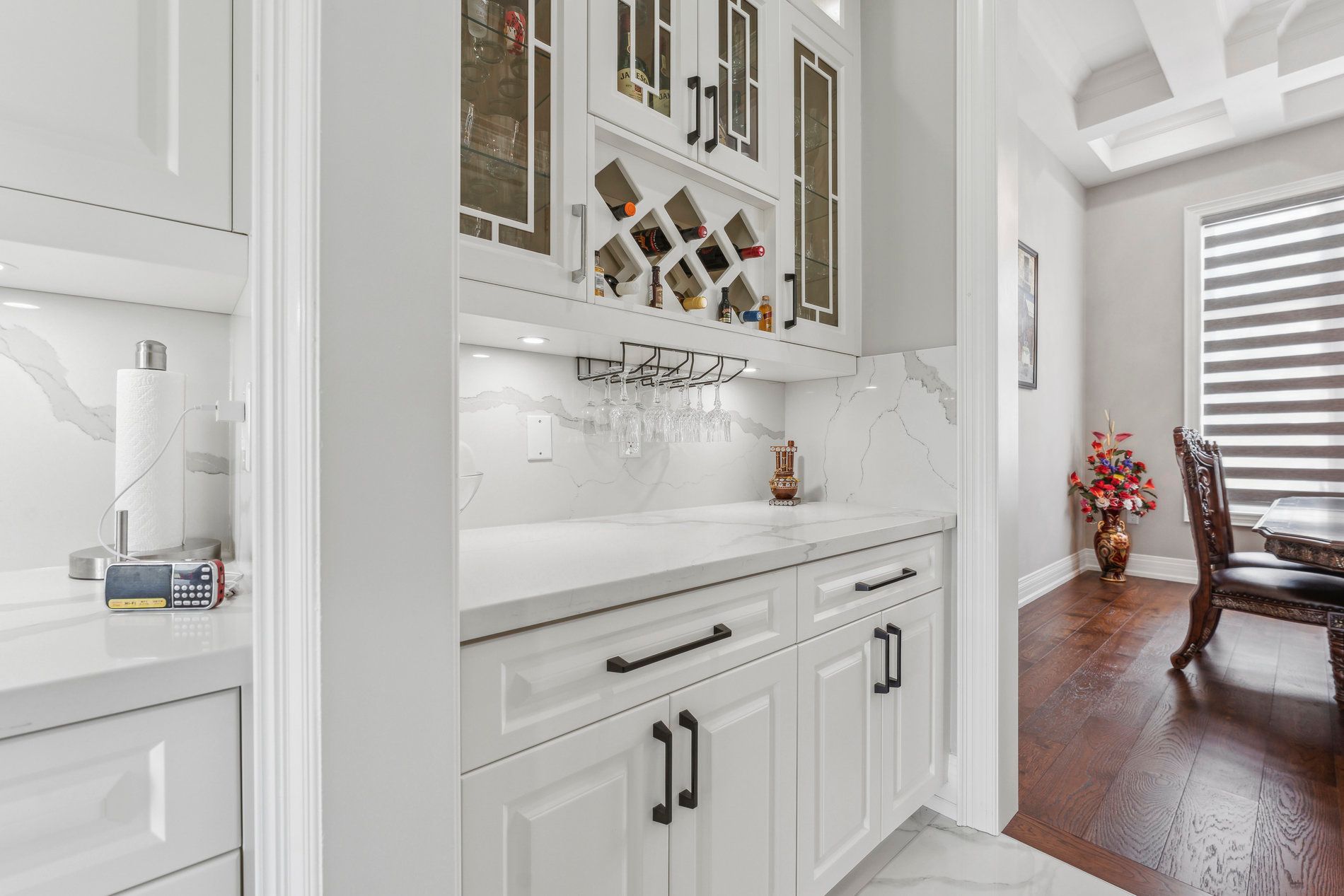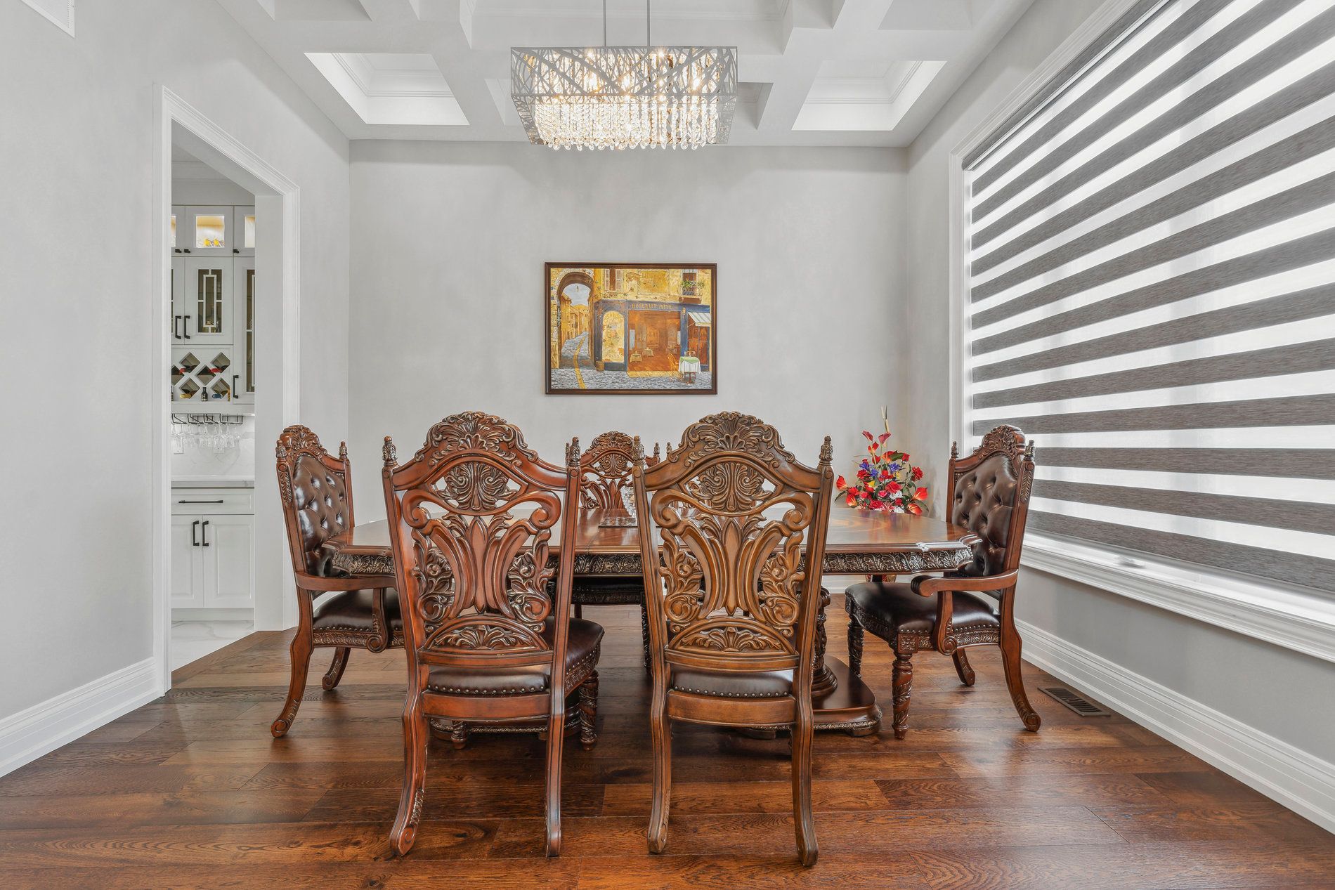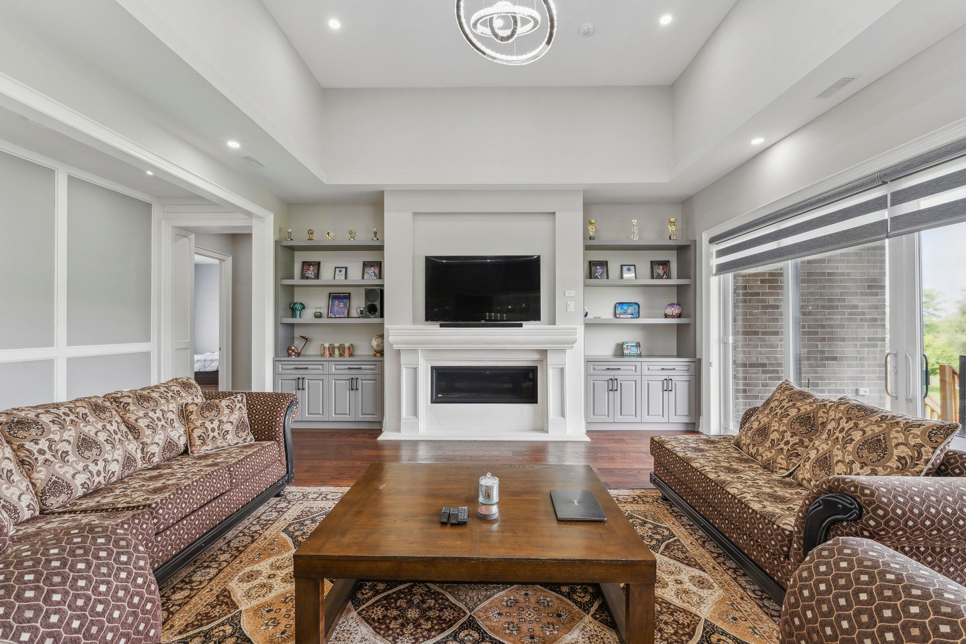 • Welcoming foyer with over 12-foot ceilings and elegant double doors.