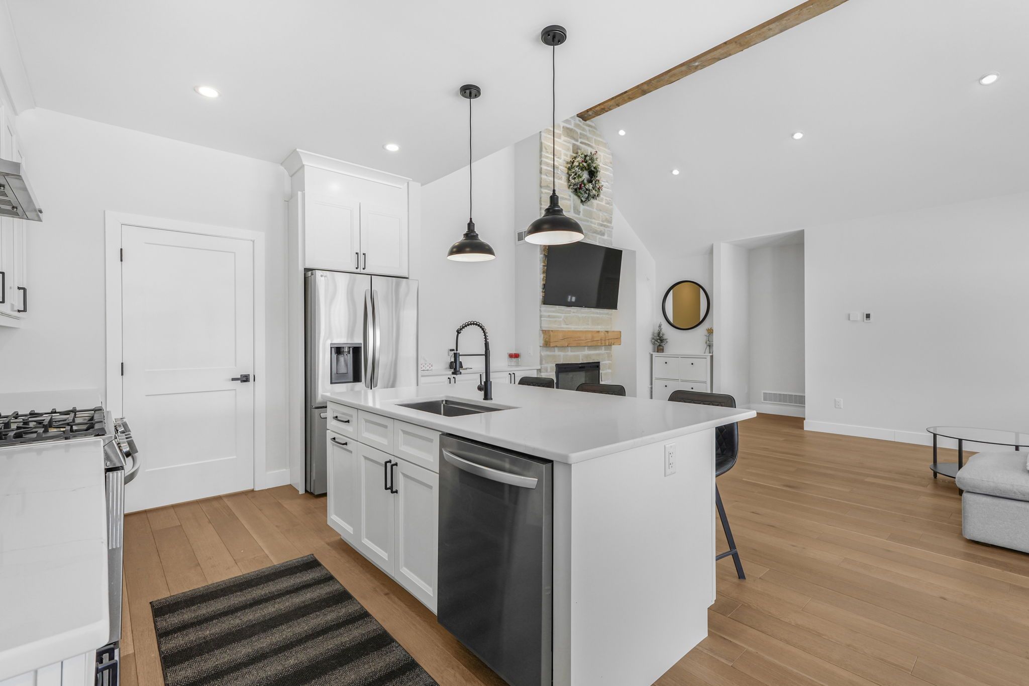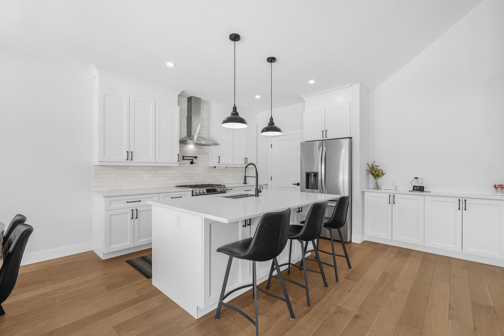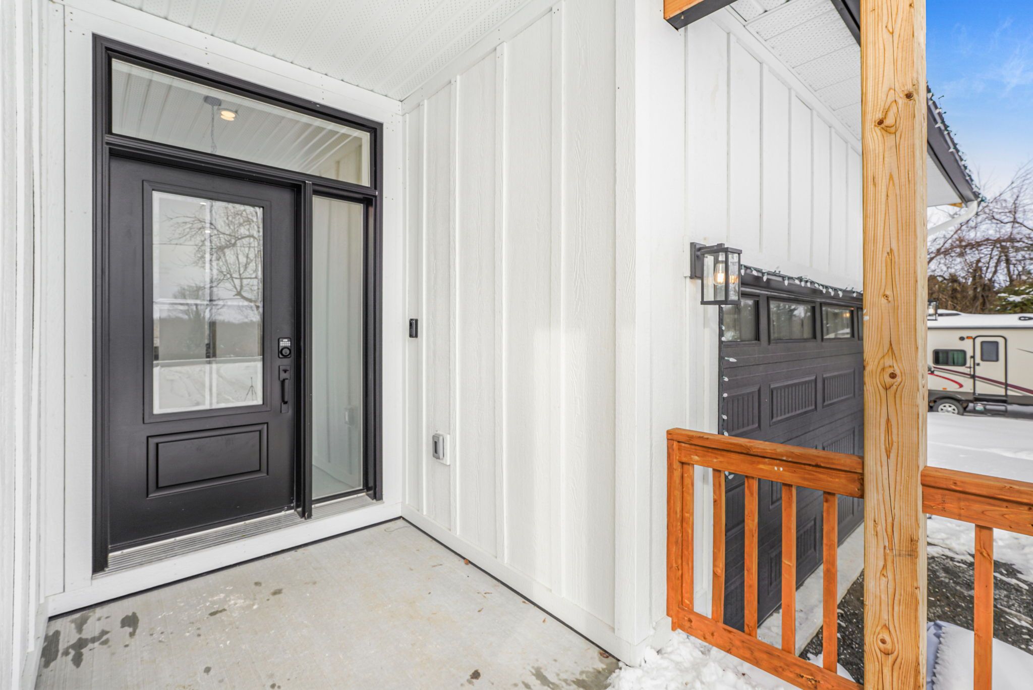 Welcome to this beautifully built 2025 modern farmhouse set in a quiet location with minimal neighbouring properties. Featuring striking board and batten vinyl siding with black accents and a double car garage, this home offers 3+2 bedrooms, 3 full bathrooms, and a fully finished basement with 9' ceilings. The bright, functional layout showcases laminate flooring, an electric fireplace, and comfortable living space throughout. Built for efficiency with a high-efficiency natural gas forced air furnace, central air conditioning, hrv system, 200-amp service, spray foam insulated basement, and quality insulation throughout. An unfinished back porch offers future potential to customize the outdoor space. Move-in ready with modern finishes and strong mechanical features already in place.