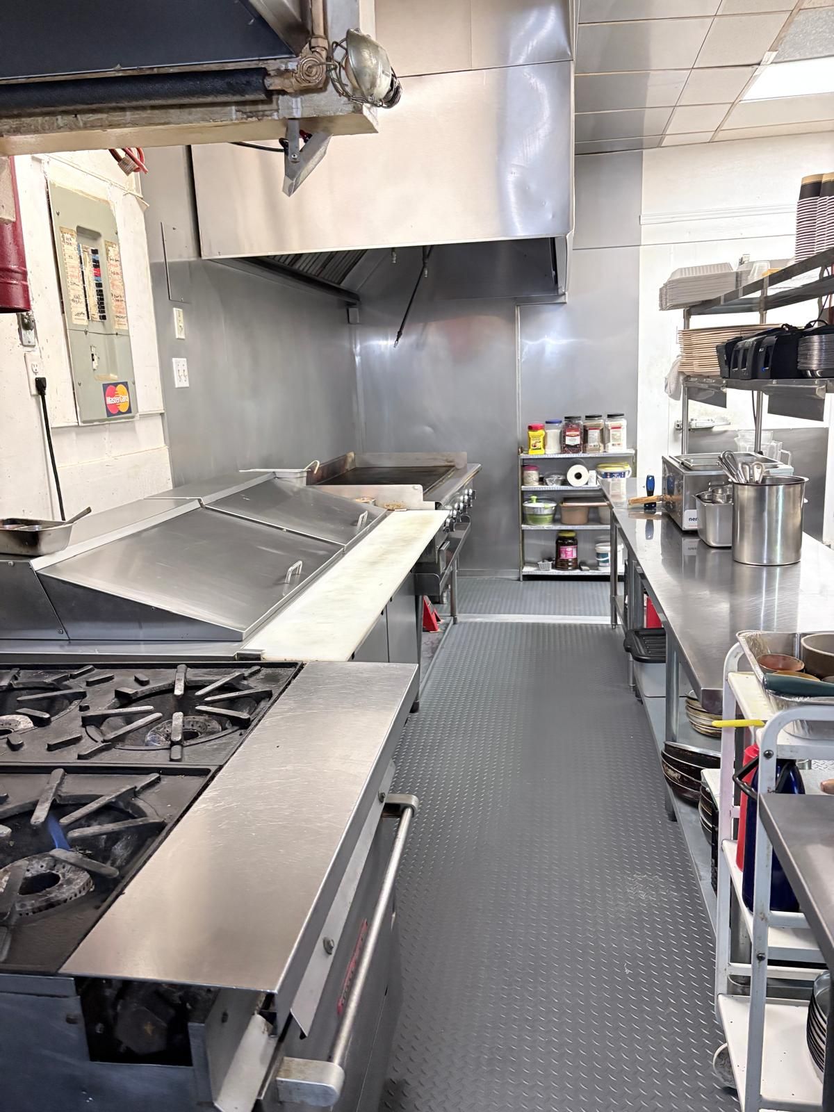 • Fully equipped commercial kitchen ready for various cuisines.