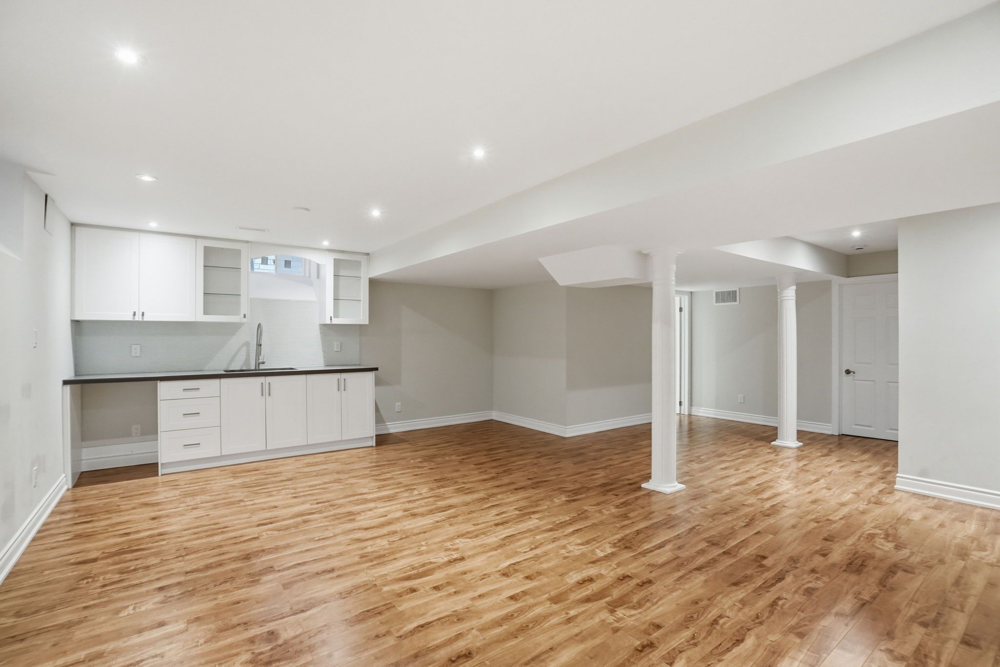 • Fully finished lower level with rec room, bedroom, and kitchenette.