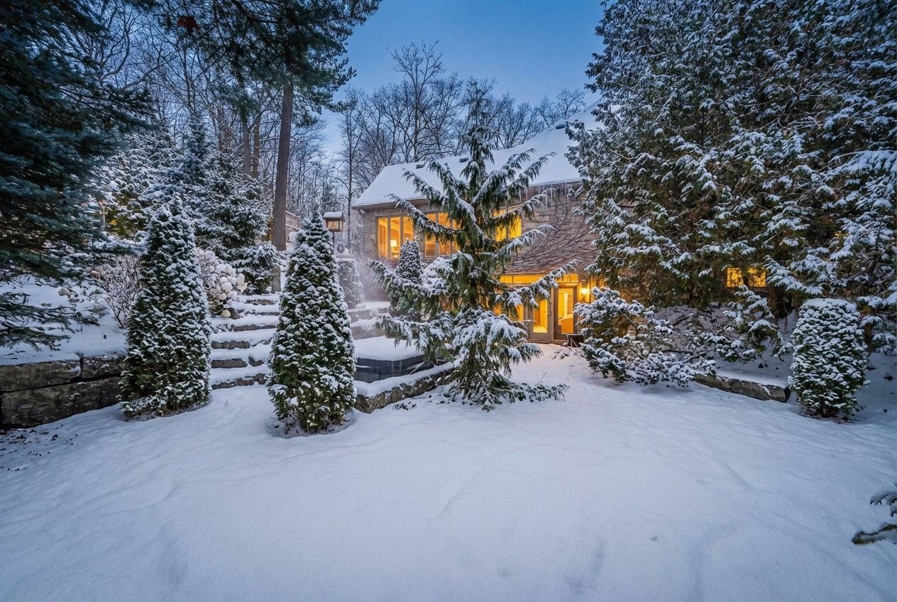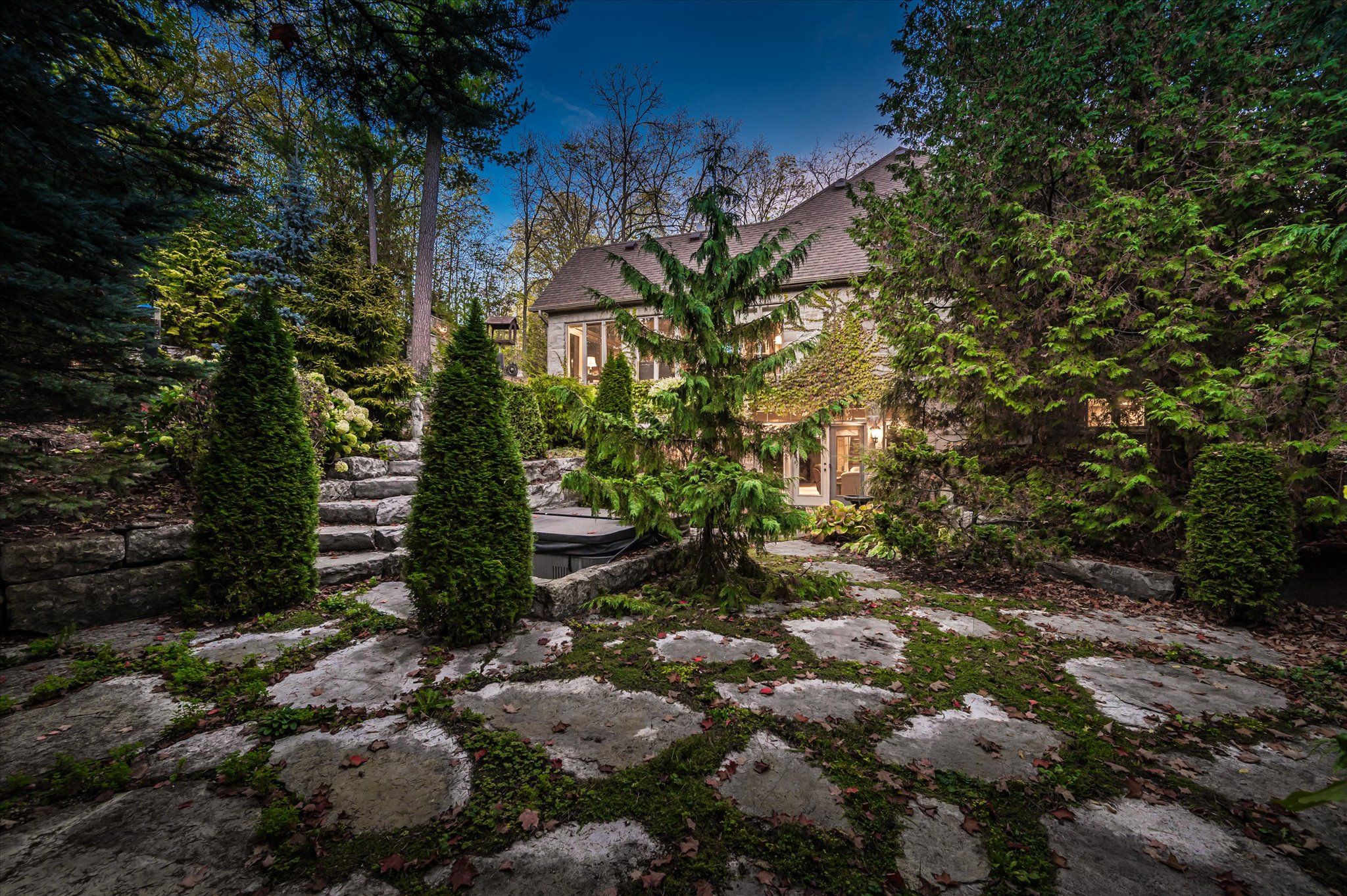 Set against the limestone escarpment on a private 1. 1-acre lot at the end of a quiet road in rockwood, this extraordinary retreat is surrounded by conservation land, offering complete privacy and a deep connection to nature. What began as untouched forest became an architectural masterpiece - the result of over three years of meticulous planning, permitting, and passion. Eighteen feet of rock were carved away to shape the foundation. A centuries-old log cabin from ariss was carefully deconstructed and reassembled on-site, bridging history with modern innovation. Even the entrance was designed to impress - complete with its own handcrafted bridge leading to the home's grand arrival. Inside, the craftsmanship speaks for itself. Soaring cathedral ceilings, oversized windows, and panoramic forest views create an atmosphere that's both inspiring and serene. The main living area opens onto a european-style stone courtyard, while the primary suite feels like a private spa, complete with a luxurious ensuite and its own tranquil waterfall outlook. Upstairs, two additional bedrooms and a full bath offer comfort and flexibility for family or guests. The walk-out basement opens to a stunning flagstone patio complete with a hot tub - an ideal spot to unwind in total tranquility. Inside, enjoy the well-appointed entertainment level featuring a custom bar and private wine cellar, a pool table area perfect for friendly competition, a theatre room to catch the big game, a dedicated gym space for workouts, a full bathroom, and more. And then there's the historic 550 sq. Ft. Log cabin - beautifully restored and ready to serve as a guest house, creative studio, or personal sanctuary. Outfitted with a wet bar, gas fireplace, full bathroom, and ample storage, it's a destination all its own. A triple-car garage with lift provides ample room for vehicles, hobbies, and adventure gear, blending practicality with luxury. Schedule a private showing today to experience 198 pasmore.