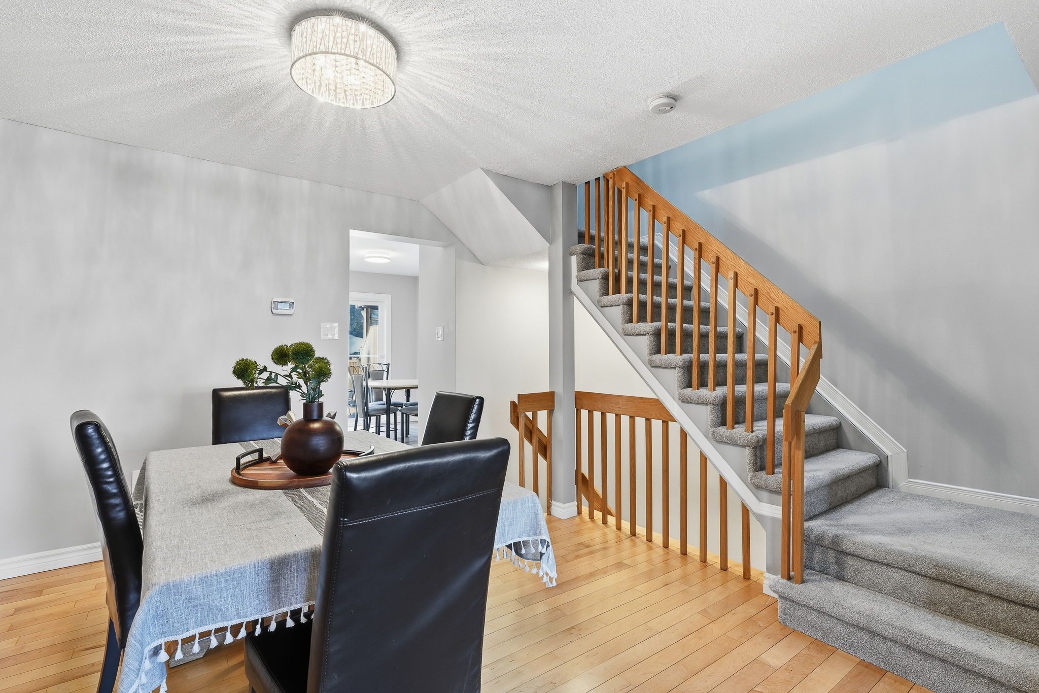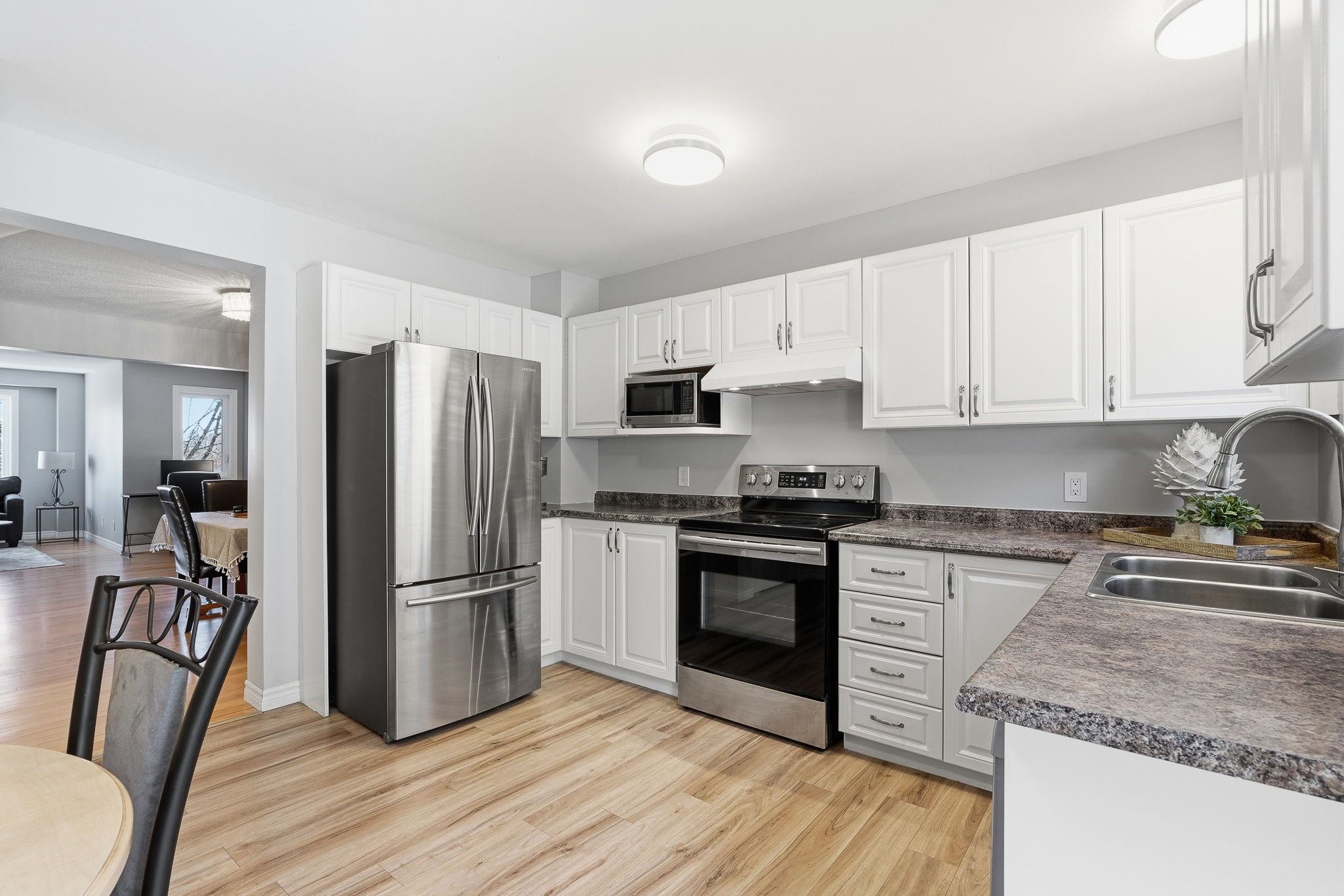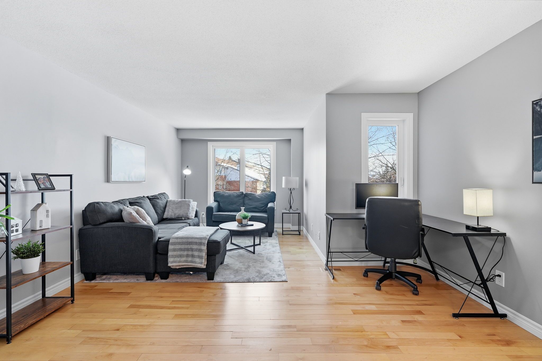 Welcome home to this beautifully maintained end-unit townhouse offering exceptional space, privacy, and an unbeatable location. This 3-storey, 3-bedroom, 2-bathroom home with attached garage is ideal for a growing family or professionals seeking comfort and convenience. Step inside to a spacious front entrance with inside access to the garage, a powder room/laundry, and a bright bonus room with a large window-perfect for a home office, gym, or flex space. The main living level features hardwood floors in the bright living room open to the dining area, creating a warm and inviting space for everyday living and entertaining. The large kitchen offers classic white cabinetry, an eat-in area, and a bonus pantry for extra storage. Patio doors lead to a private backyard, ideal for relaxing or hosting guests. Upstairs, you'll find three generously sized bedrooms, perfect for family living, along with a full bathroom. This home has been freshly painted and is well maintained, with many key updates including windows, roof, furnace, a/c, and hot water tank (2016), plus a garage door (2018). Located close to montfort hospital, this property is perfect for healthcare professionals and commuters, with downtown ottawa just 15 minutes away. A perfect starter home offering space, and a fantastic location-move in and enjoy!