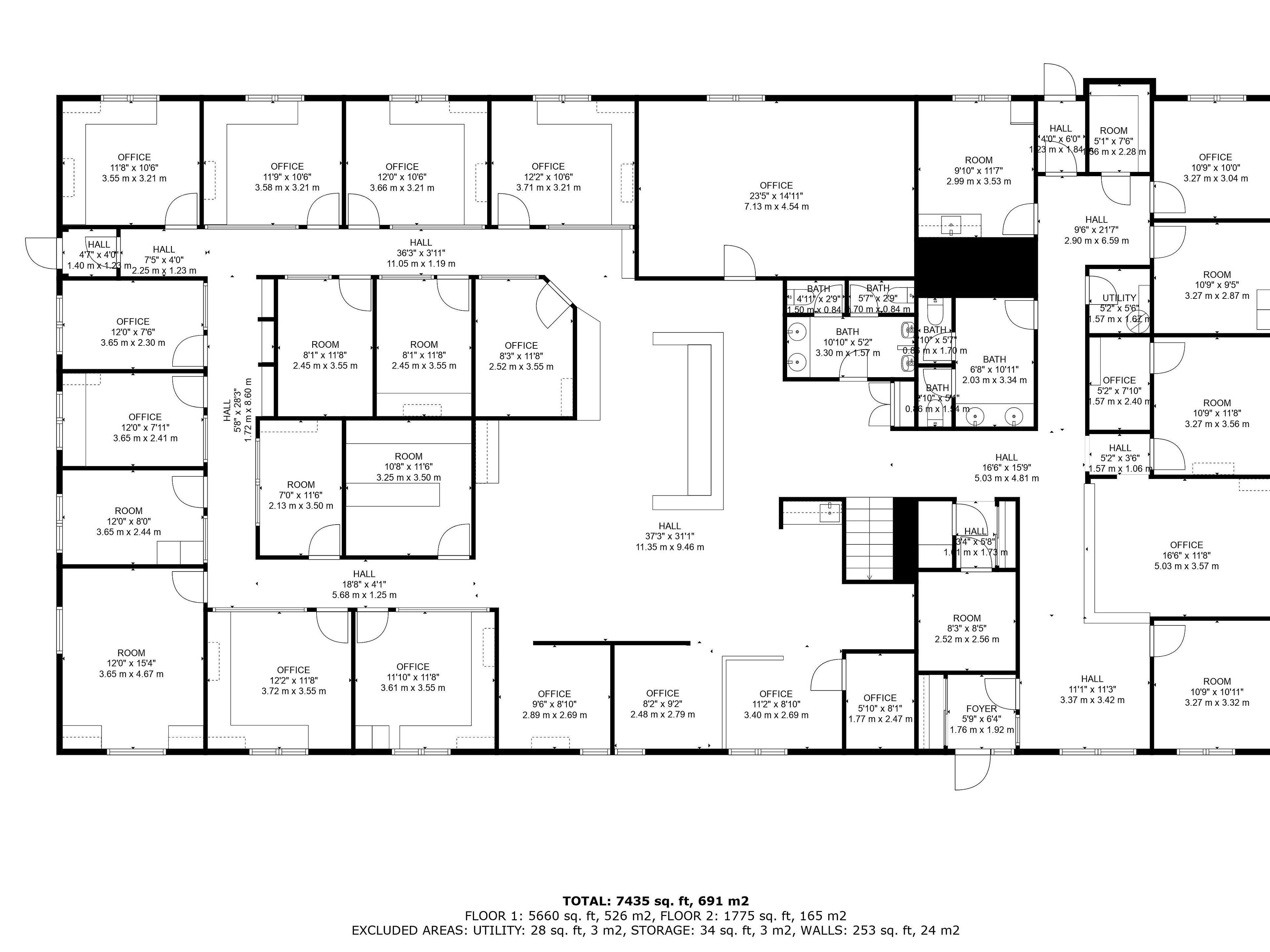 • Spacious 8,000 sf property with two levels and 25 private offices.