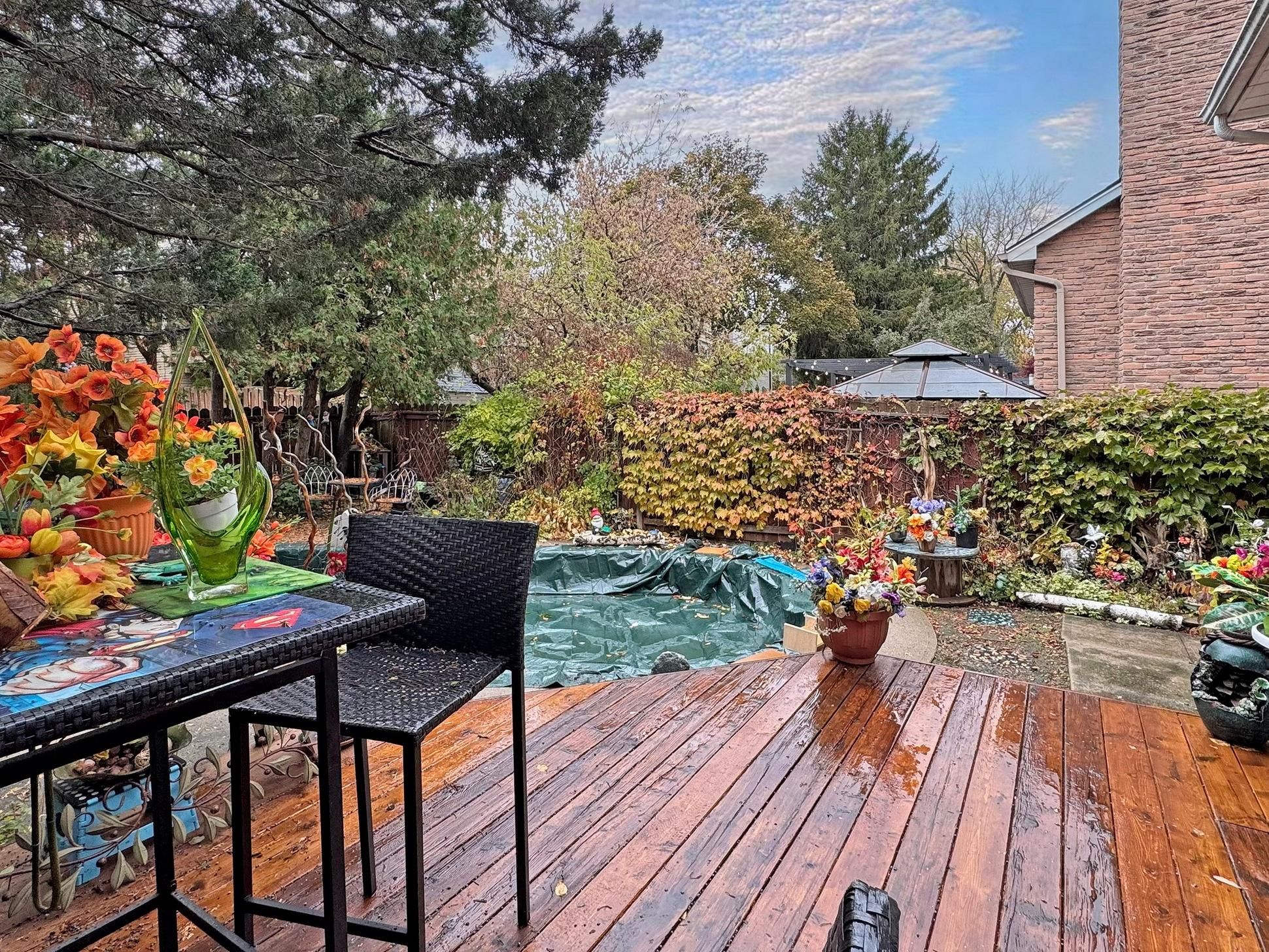 • Private backyard with a deck and pool, perfect for relaxation and gatherings.