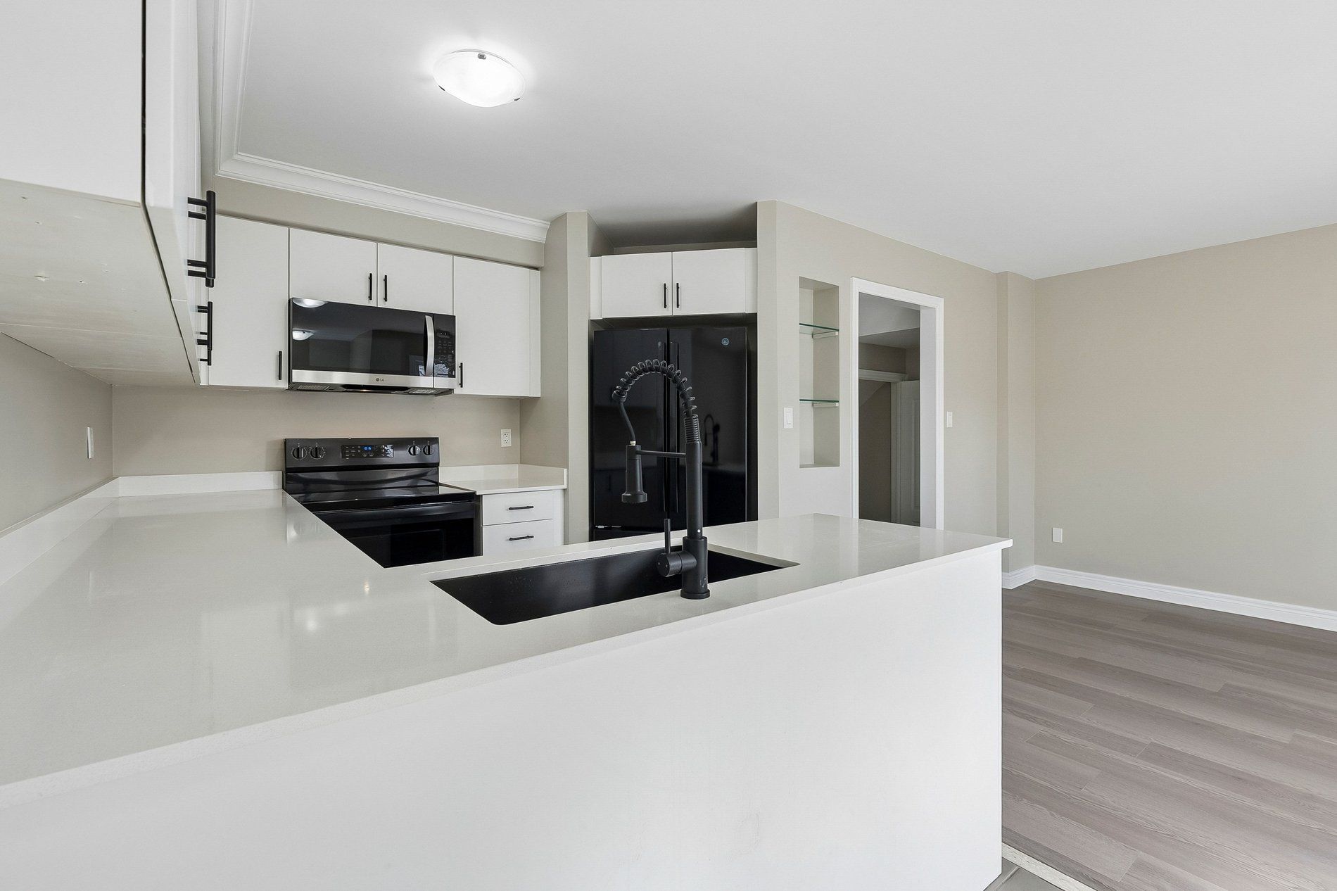 • Open concept kitchen featuring quartz counters and new appliances for easy meals.