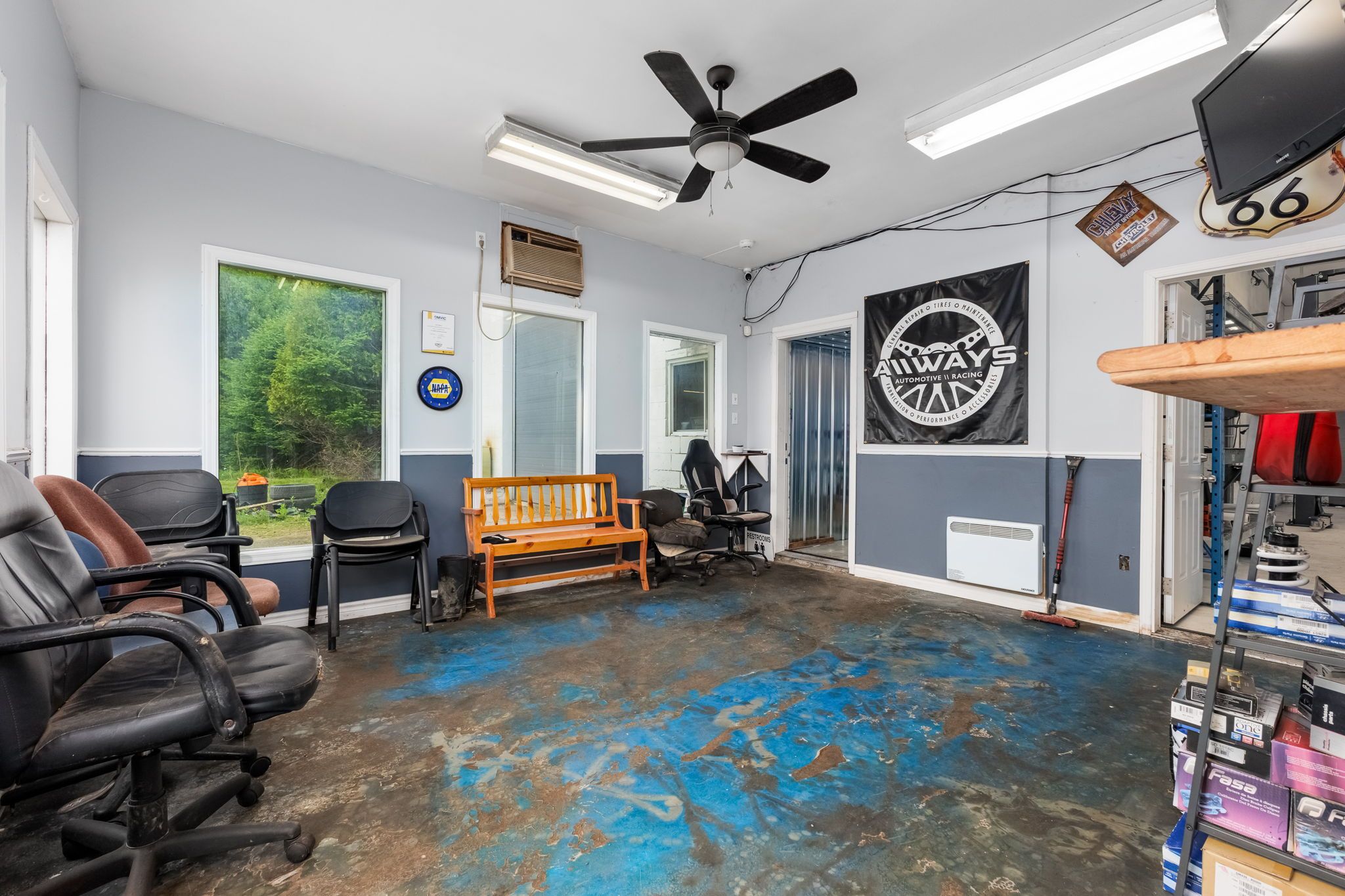 • Fully equipped mechanics shop with hoists and office space.