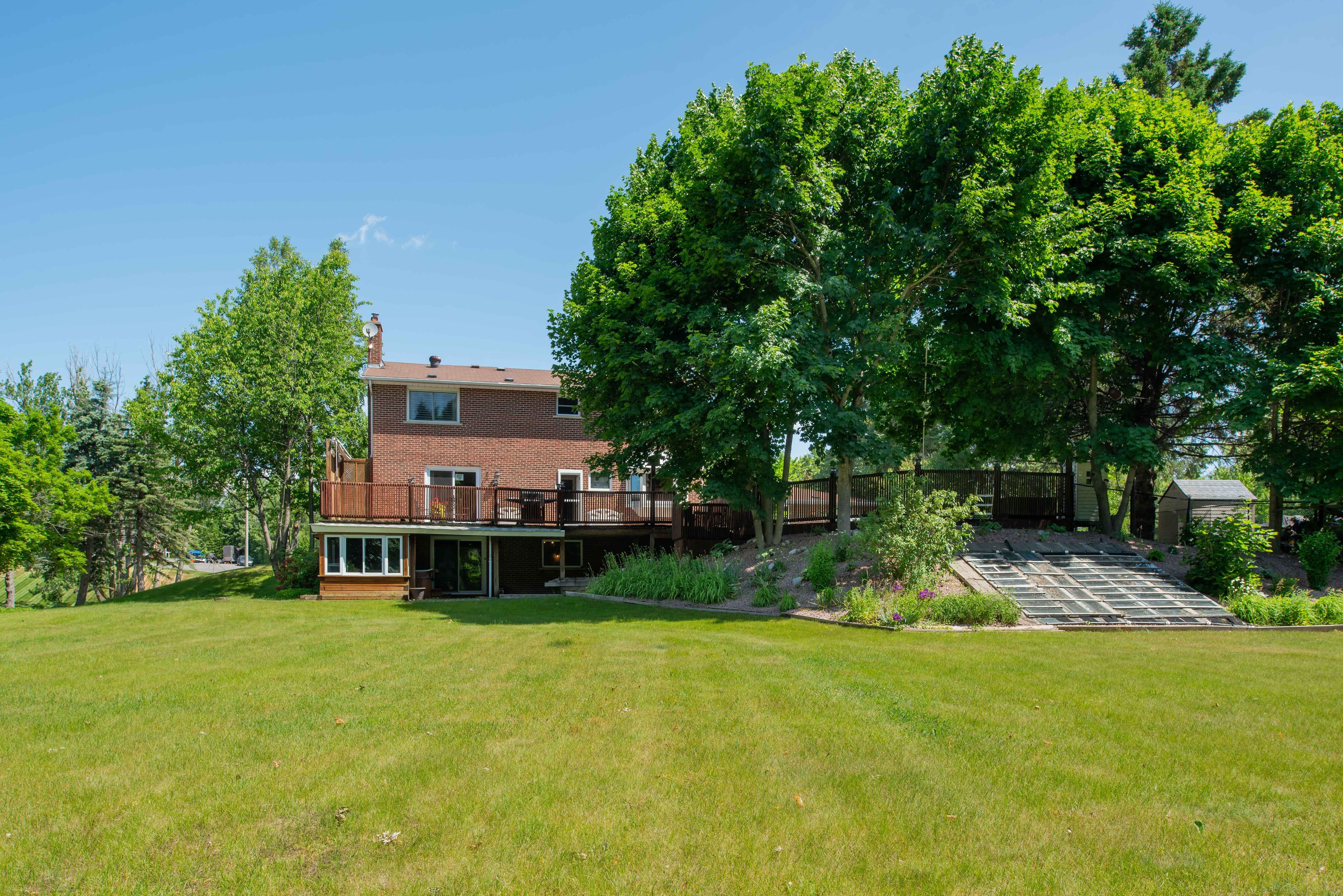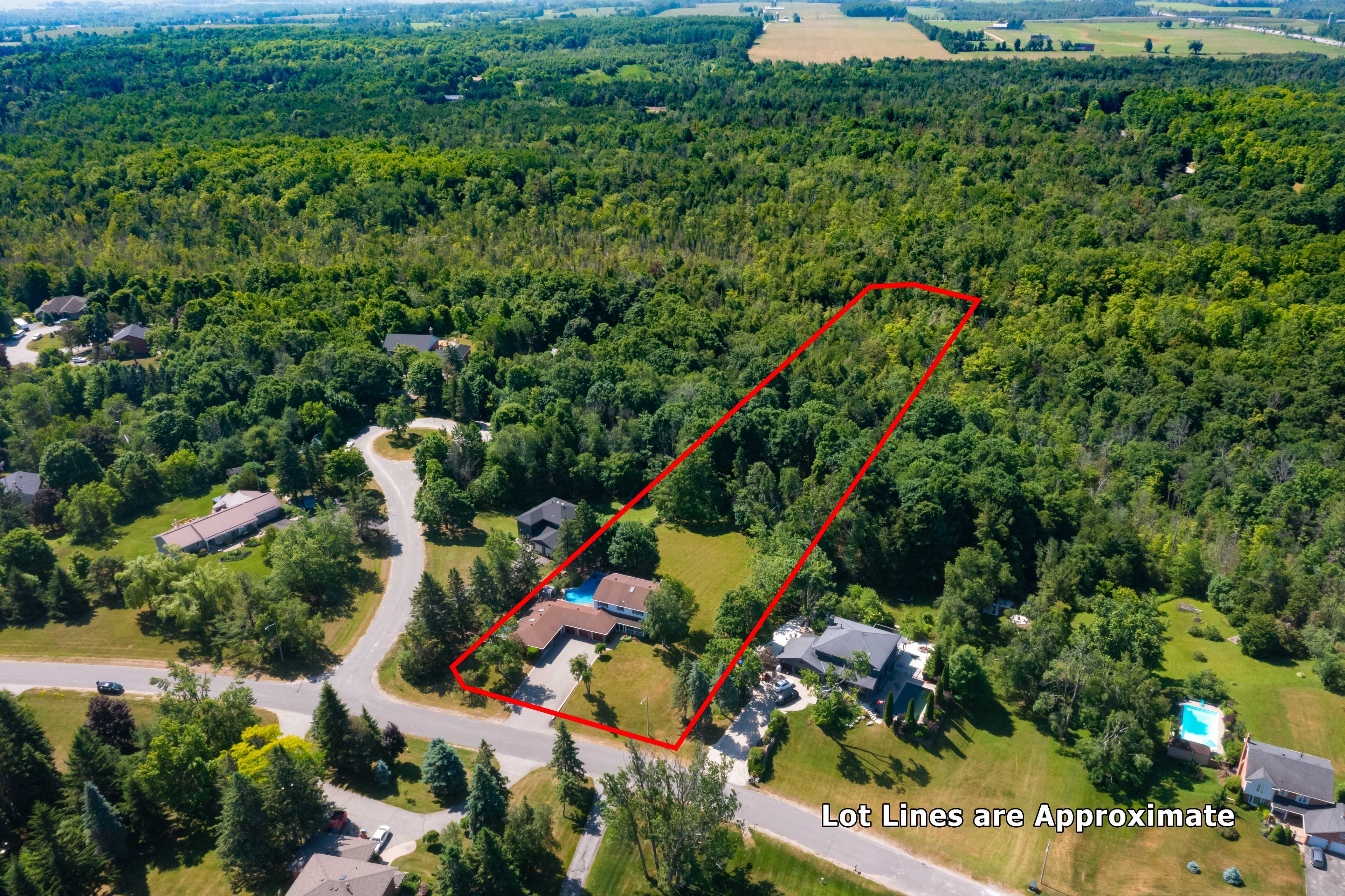 • Private 2.5-acre lot backing onto a protected greenbelt with mature trees.