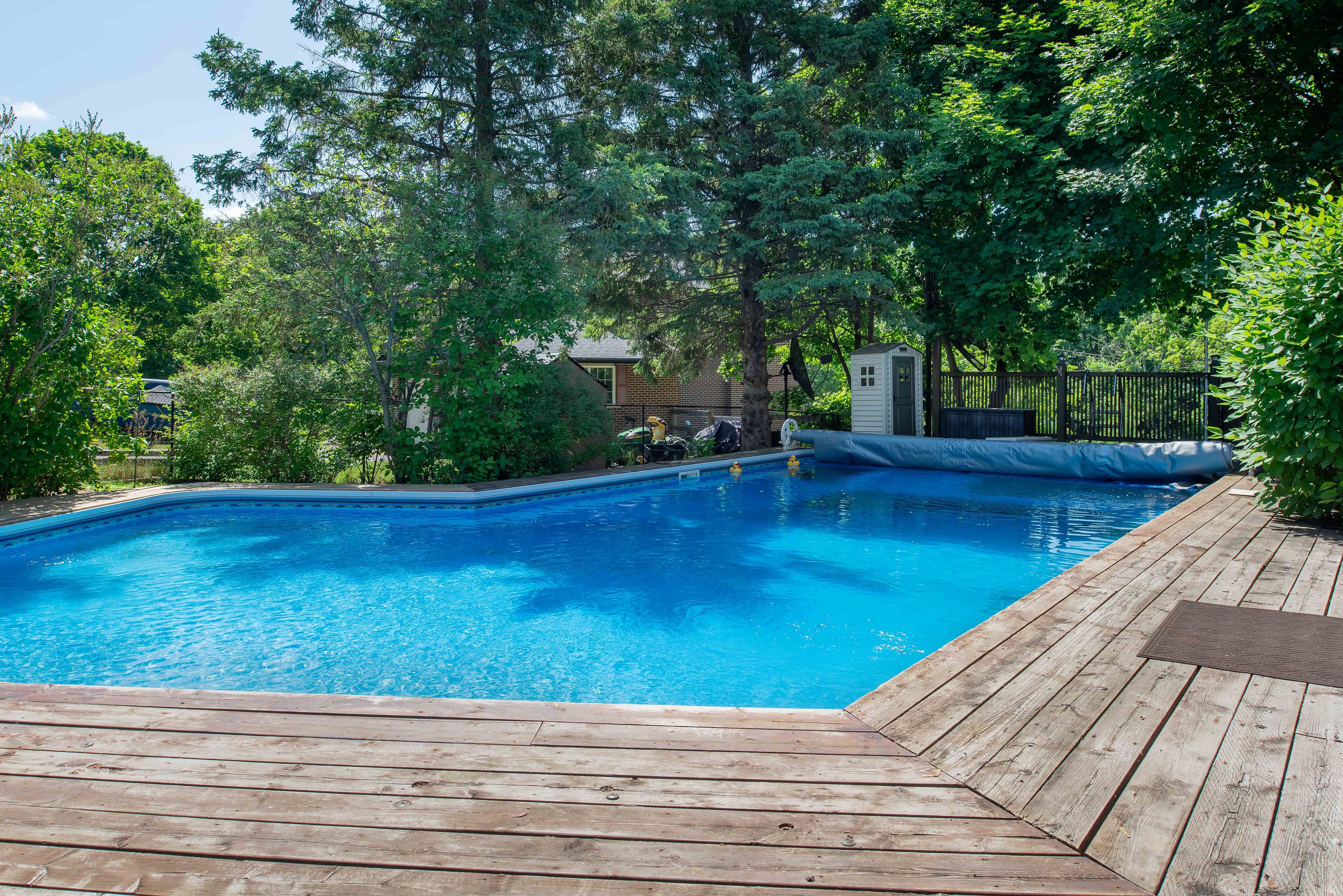 • Large deck and inground saltwater pool surrounded by mature landscaping.