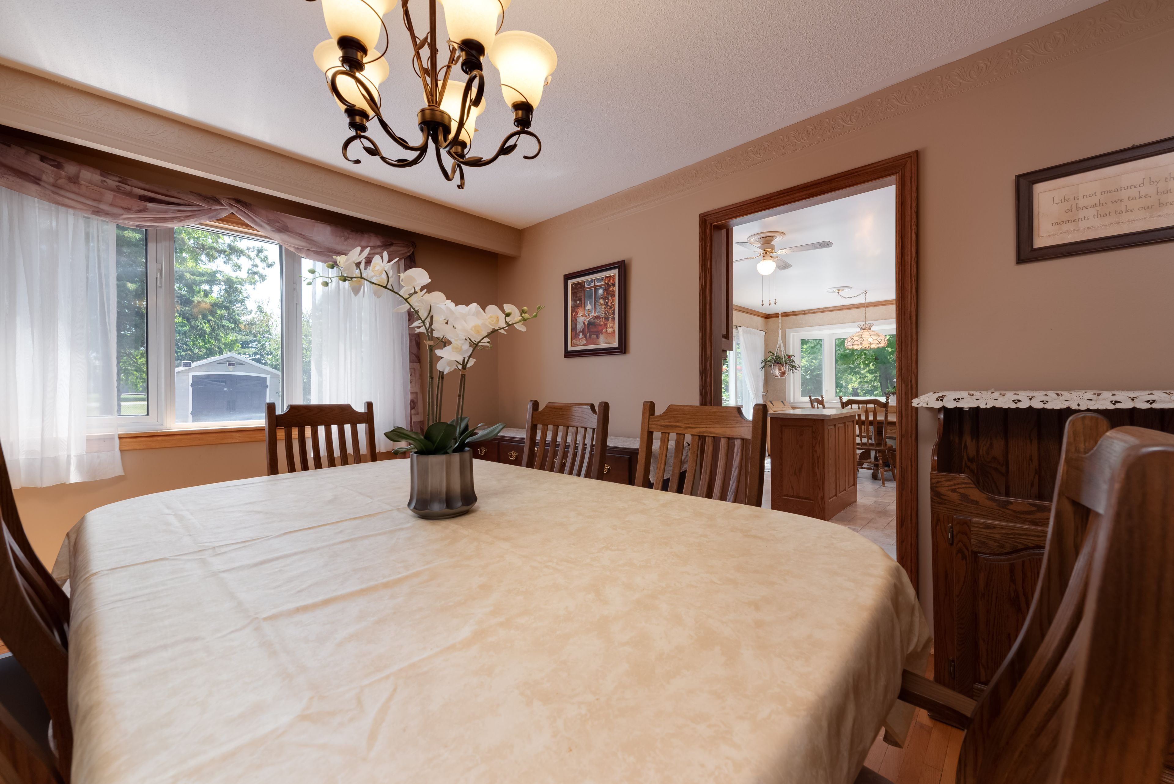 Situated on 2. 5 private acres and backing onto a protected greenbelt with mature trees, this home offers tremendous curb appeal among other high-quality residential properties in the area. The 4-bedroom, 4-bathroom residence provides approximately 2,700 sq. Ft. Of above-grade living space along with a partially finished walk-out basement ready for completion. The property features a long driveway leading to a 5-car garage with an additional carport, as well as a spacious deck overlooking the private, treed setting. A 22' x 46' inground saltwater pool is positioned within mature landscaping, creating a peaceful outdoor environment. Inside, the home includes large principal rooms, a functional layout, a gas fireplace, and well-maintained classic finishes, offering a solid foundation for future updates. The walk-out basement provides considerable potential for additional living space, an in-law suite, or recreation areas once completed. This location offers privacy while remaining close to local amenities, schools, and commuter routes, including convenient access to highway 400, making it suitable for buyers seeking space, flexibility, and long-term value.