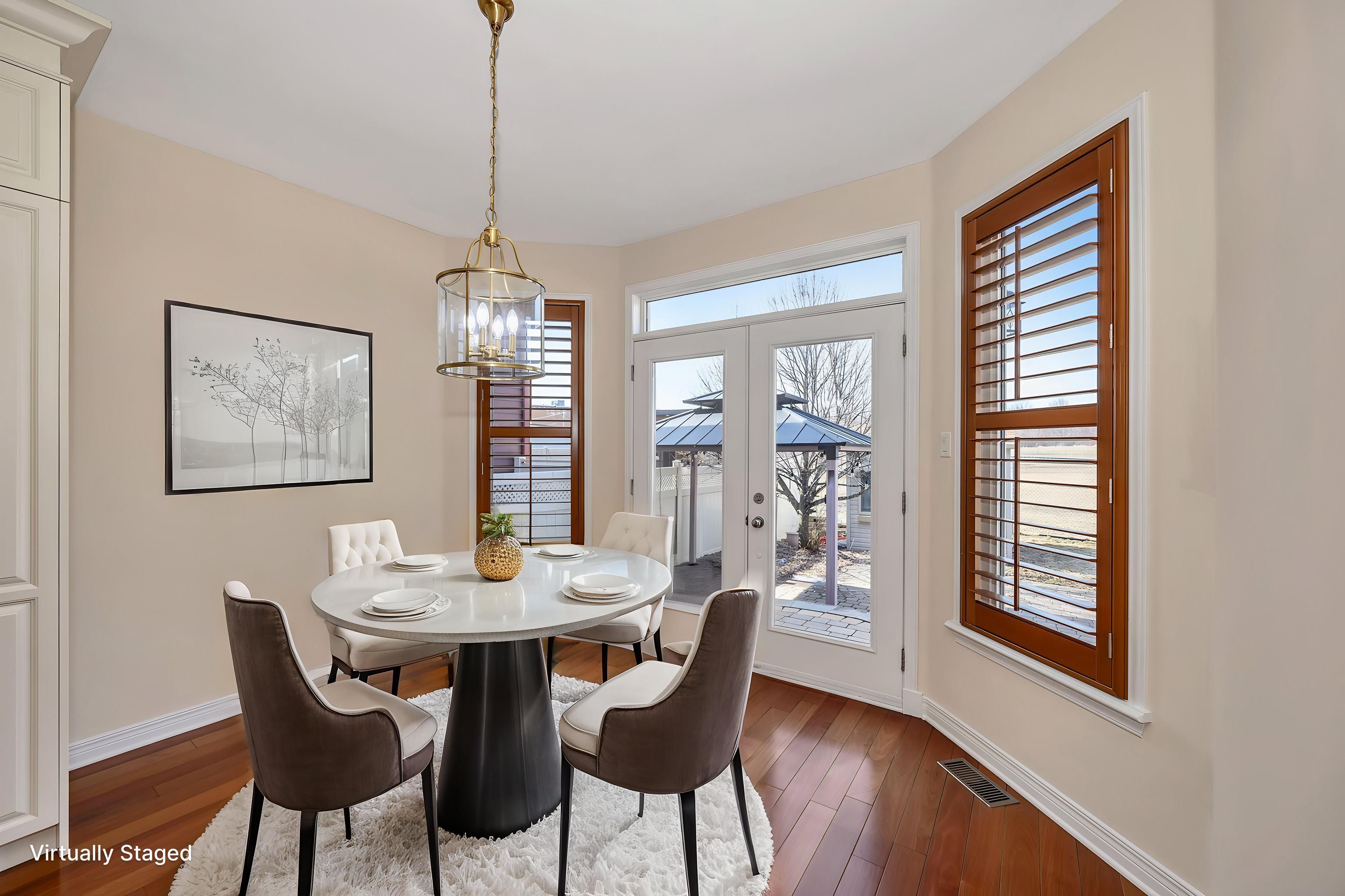 • Finished lower level features wet bar, recreation room, and fifth bedroom.