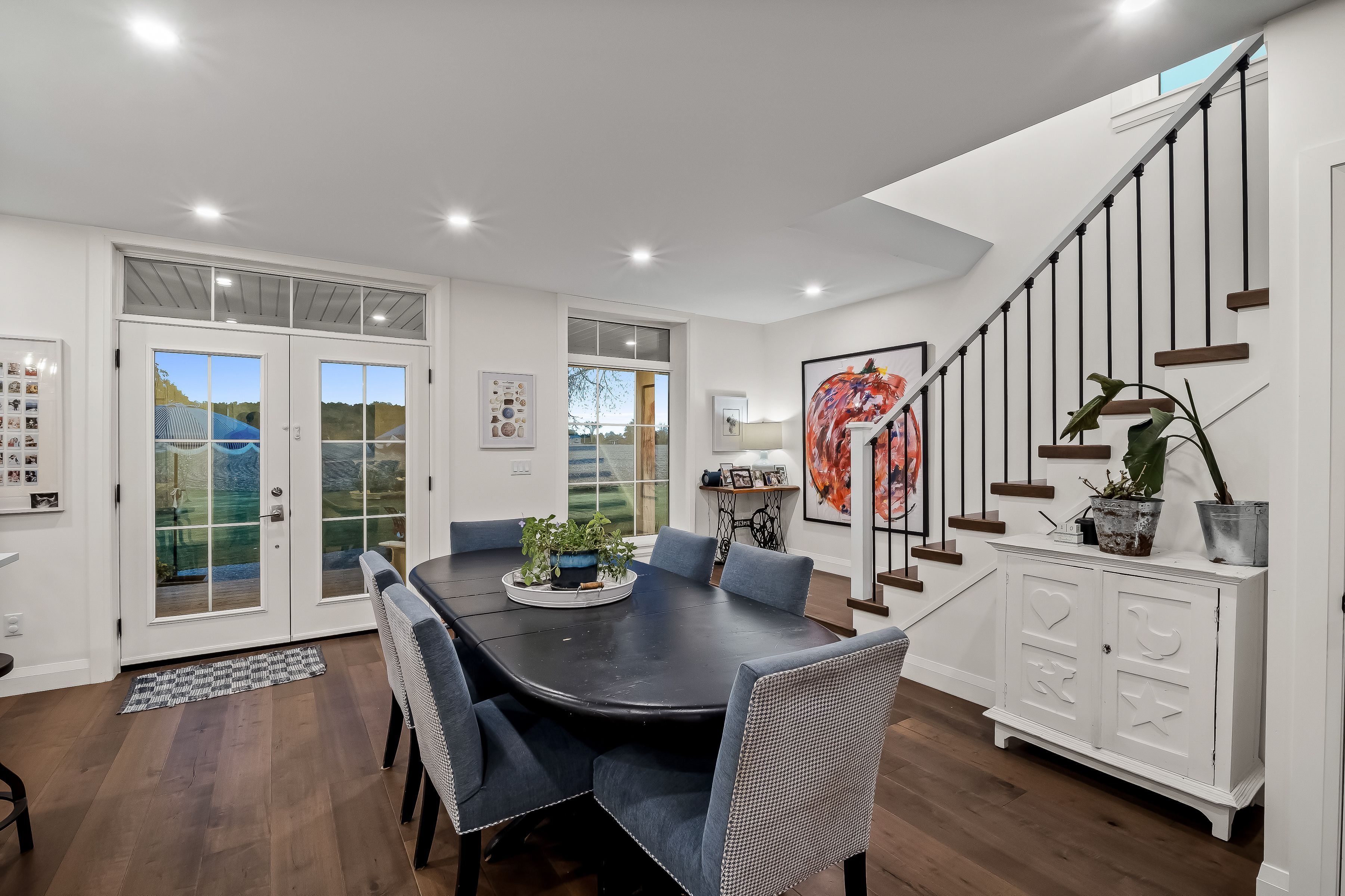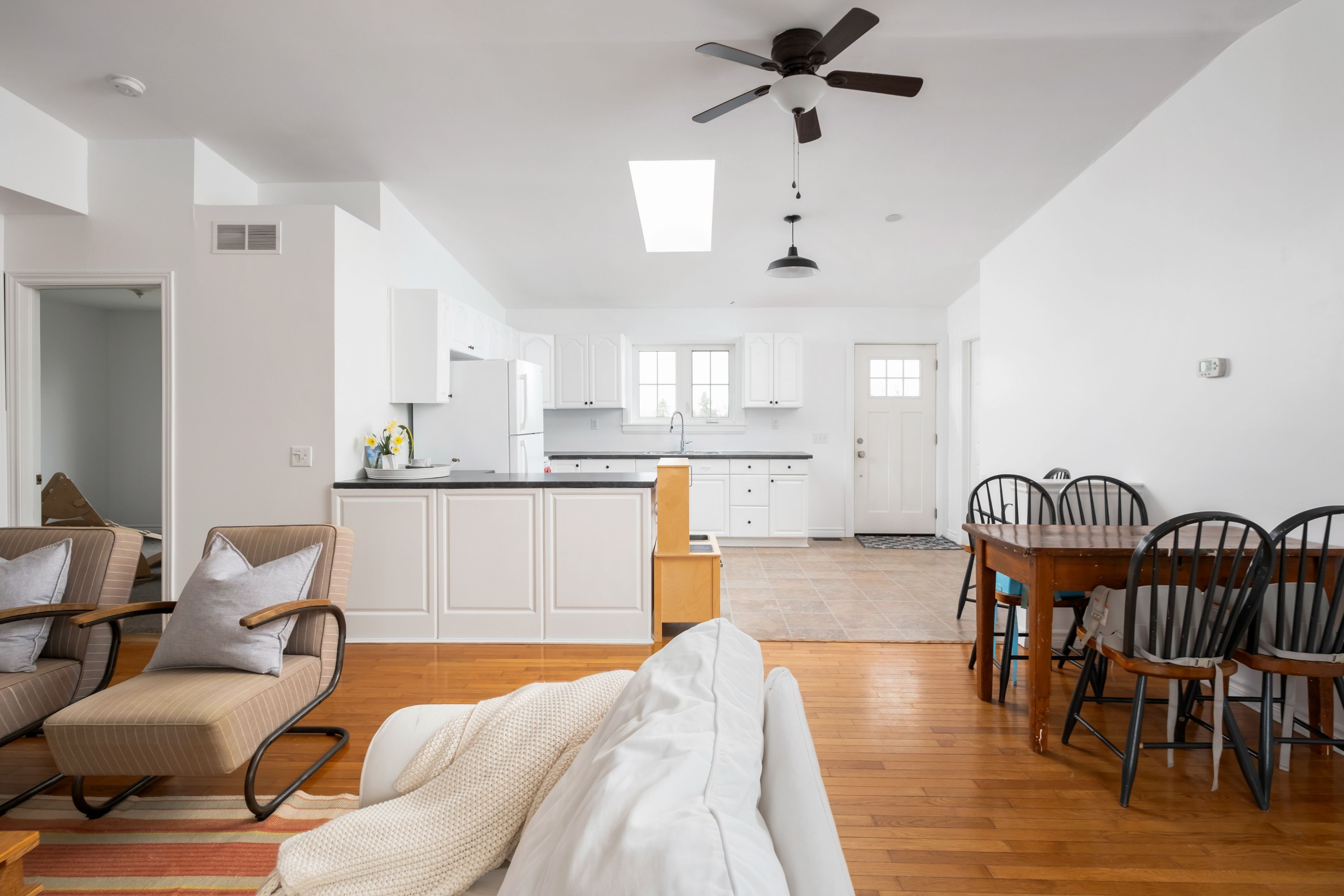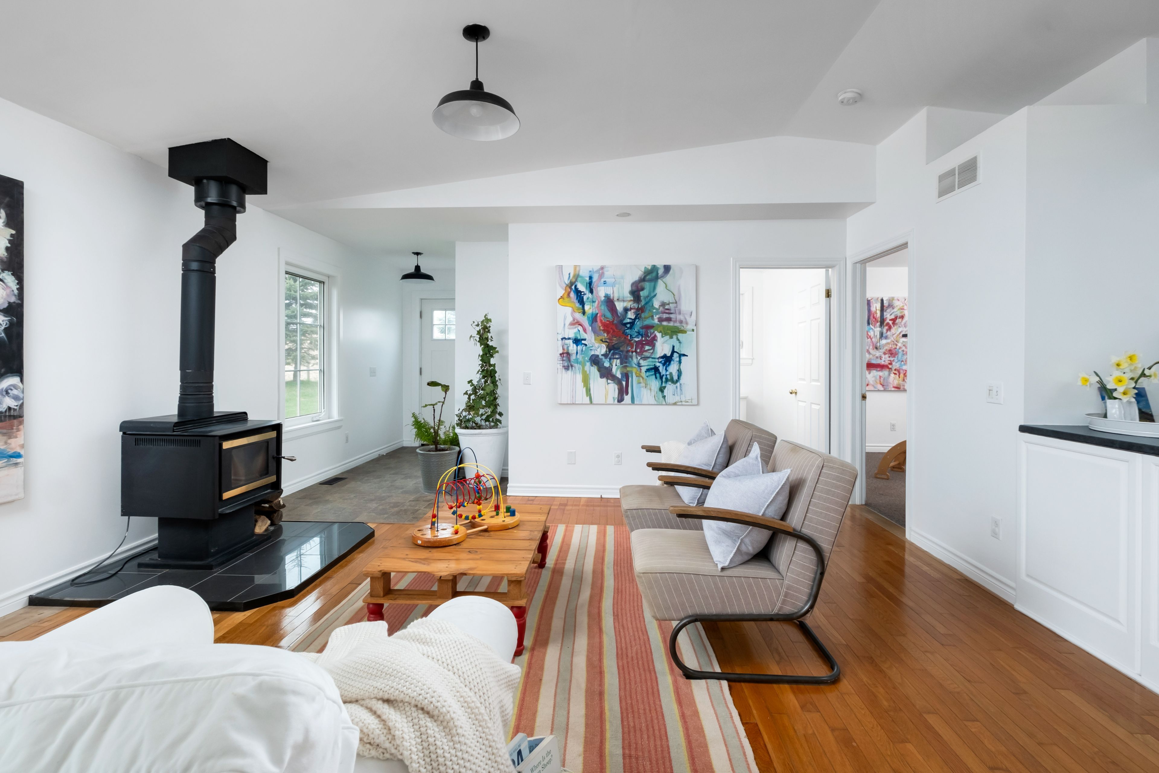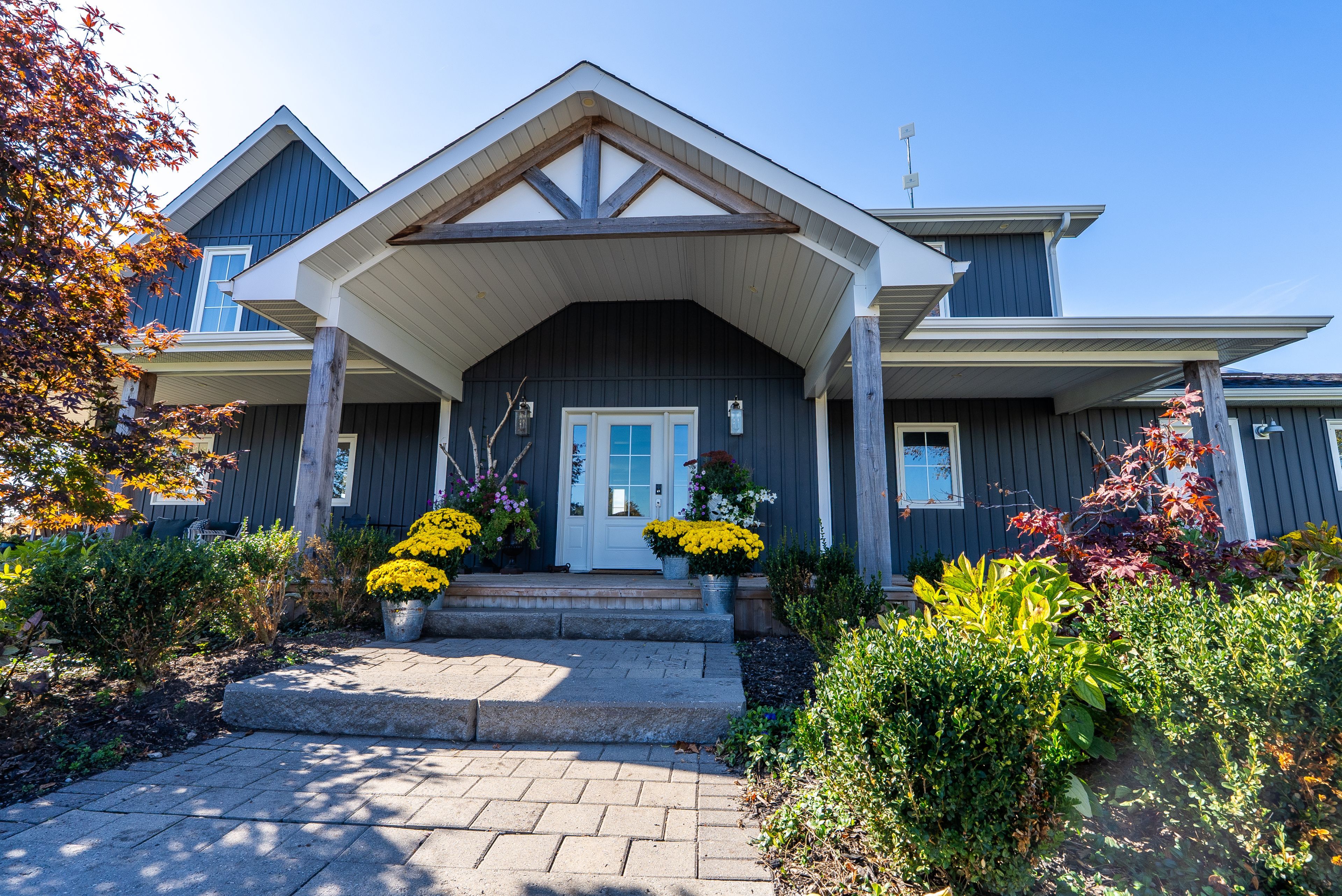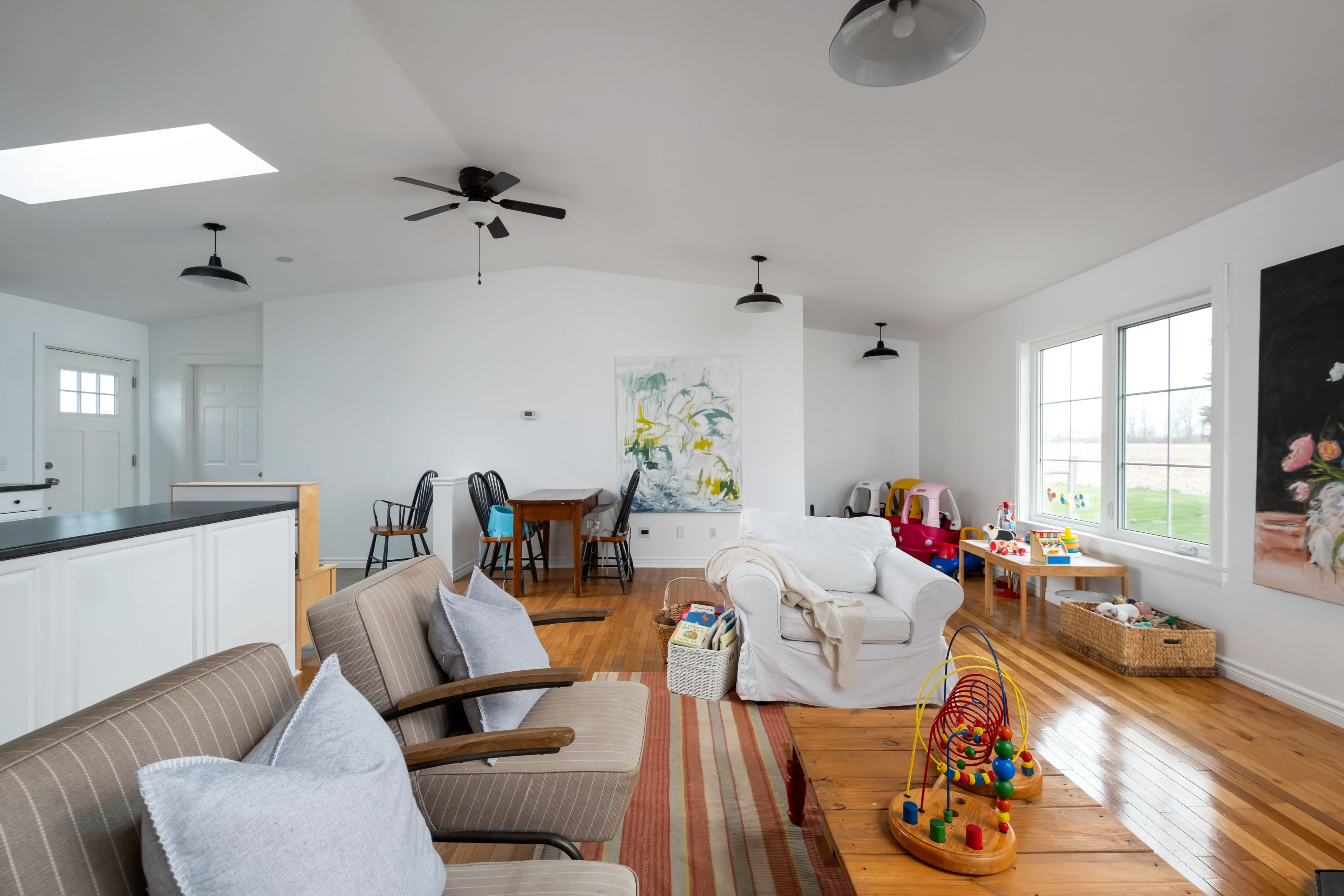 Beautifully renovated farmhouse on 1. 91 acres featuring a self-contained apartment and sweeping countryside views! Set down a romantic laneway & completely hidden in the summer months, this modern farmhouse feels like a discovered treasure-quiet, relaxing, & immersed in views of cornfields, a neighbouring pond & distant barns. Every room is bathed in white, highlighting the rich wide-plank hardwood floors & the home's elevated farmhouse design. The kitchen features stainless steel appliances & quartz counters, while all bathrooms are beautifully finished with quality tile & quartz vanities. With 3,620 s. F. Of total living space, the multigenerational layout offers a highly functional footprint for family living andentertaining. A heated-tile mudroom welcomes you in, leading to a secondary, fully separate mudroom-perfect for kids' lockers, sports gear, or a dog-wash room. From here, one expansive living space flows to the open-concept dining area & kitchen, with a wall of windows overlooking a picturesque pond, wraparound porch & perennial gardens. Multiple main-floor walkouts & oversized windows draw in natural light & frame a panoramic sweep of farmland that gently slopes toward a grove of trees. It's the kind of setting where the view becomes the entertainment-birds crossing the sky & the weather shifting across open fields. A cozy den adds versatility, functioning beautifully as a library or home office. Upstairs, 3 bright bedrooms share a spacious 4-pc bathroom, while the primary suite offers its own serene 3-pc bath & walk-in closet. Thoughtfully designed for flexibility, the home also includes a 1-bed apartment with full unfinished basement. As family needs evolve, this layout adapts with ease-ideal for grown kids, aging parents, or supplemental rental income. A peaceful backdrop, a beautifully finished interior & a layout that invites gathering and connection-this is a rare country property that blends modern comfort with the timeless beauty of rural living.