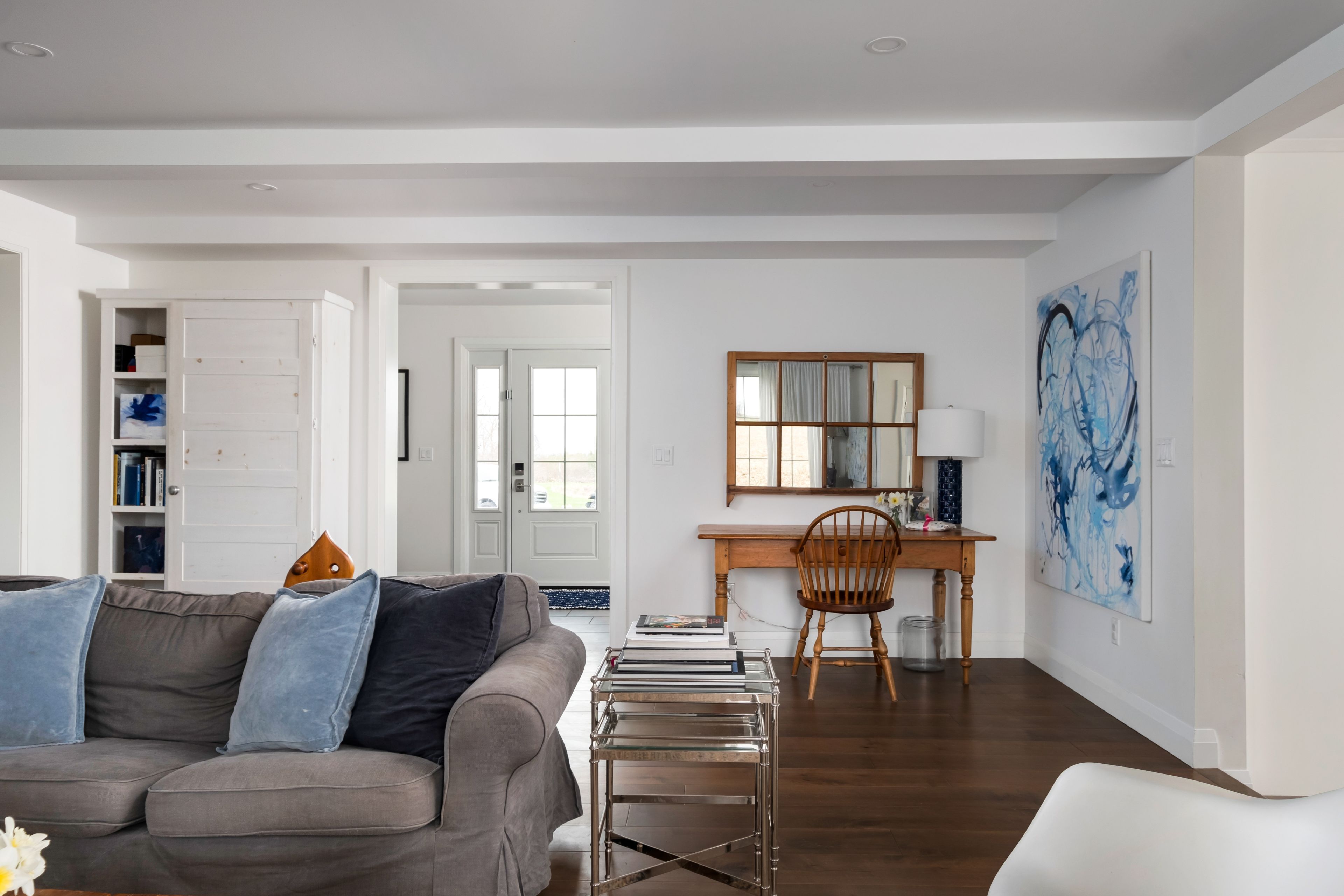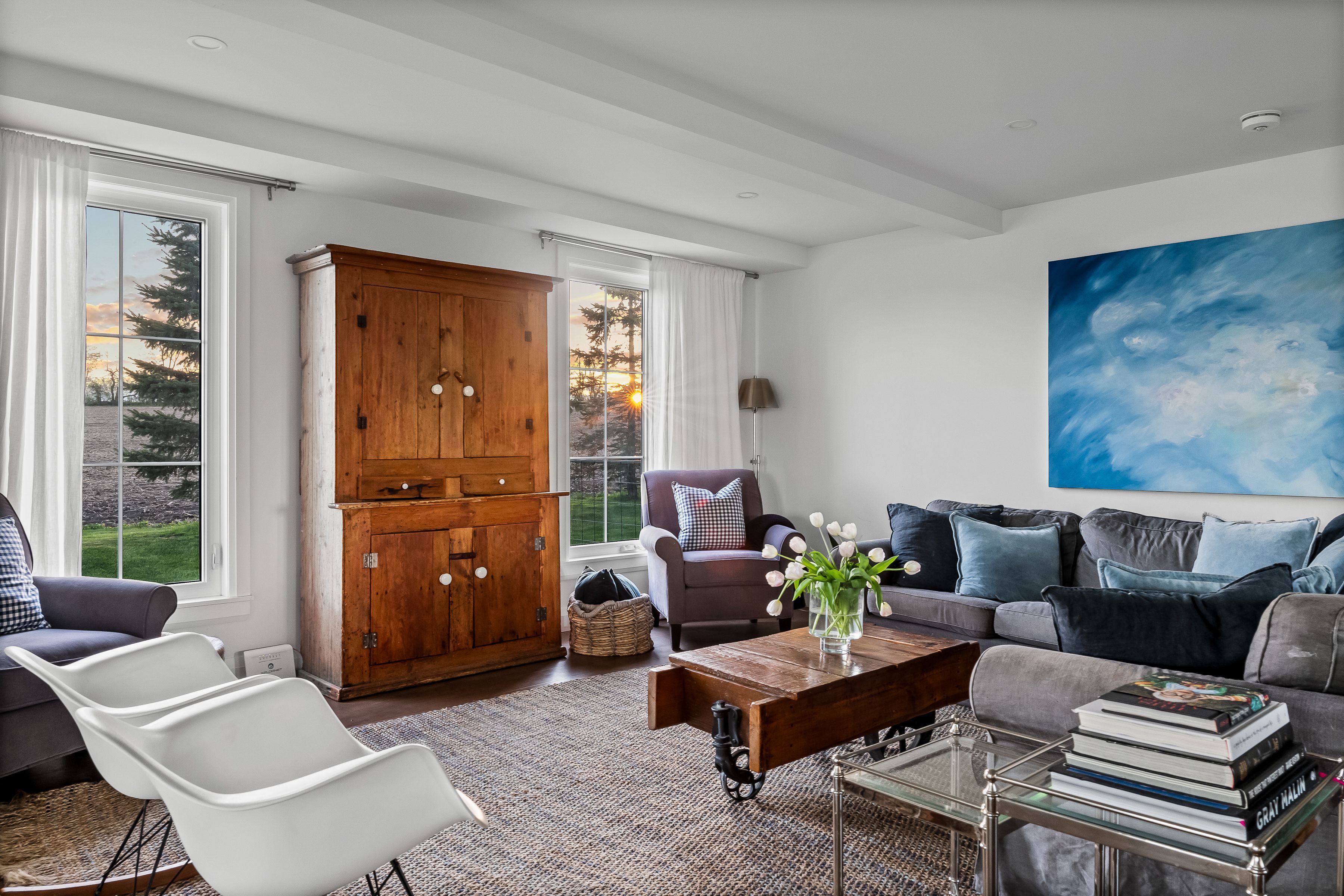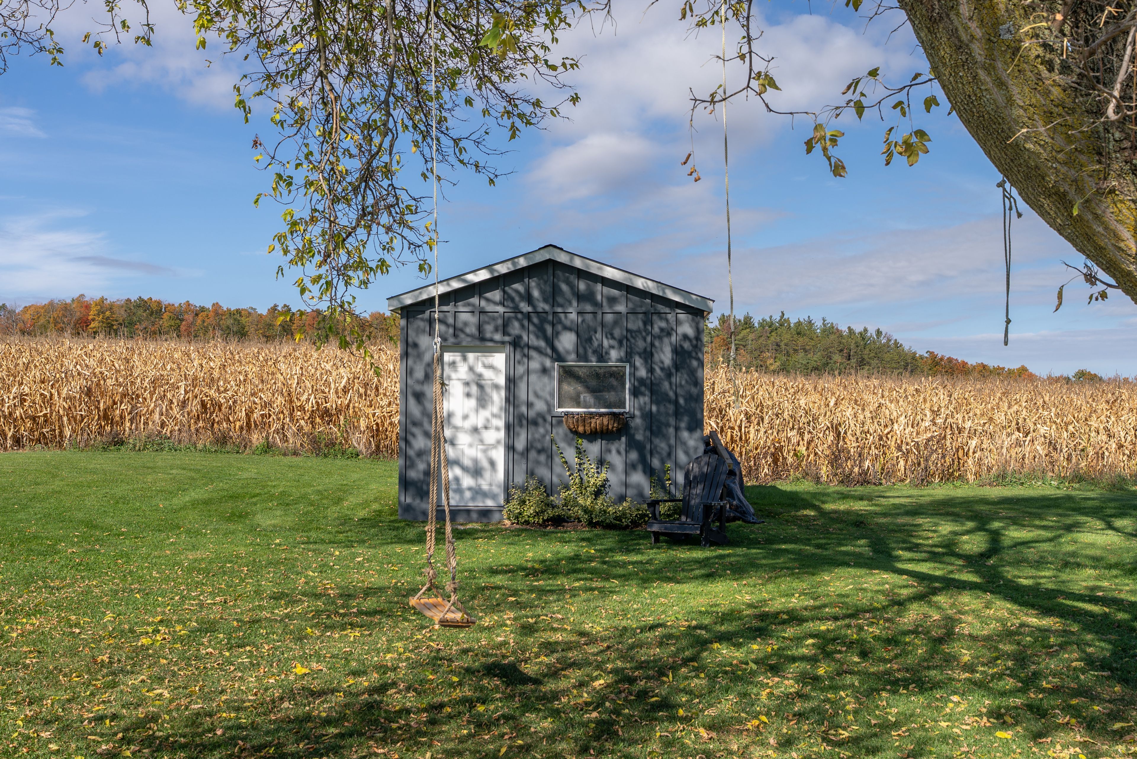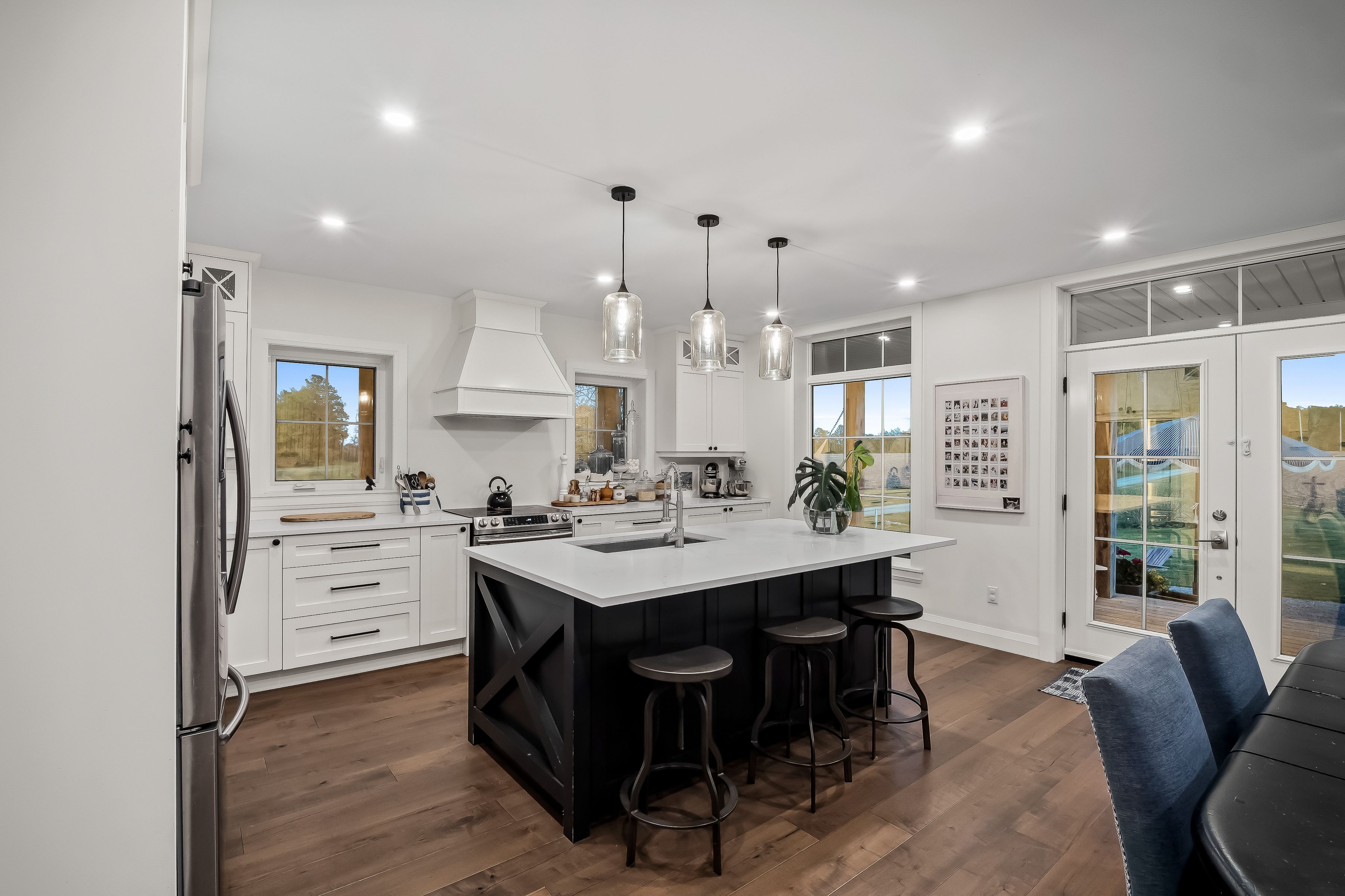 Beautifully renovated farmhouse on 1. 91 acres featuring a self-contained apartment and sweeping countryside views! Set down a romantic laneway & completely hidden in the summer months, this modern farmhouse feels like a discovered treasure-quiet, relaxing, & immersed in views of cornfields, a neighbouring pond & distant barns. Every room is bathed in white, highlighting the rich wide-plank hardwood floors & the home's elevated farmhouse design. The kitchen features stainless steel appliances & quartz counters, while all bathrooms are beautifully finished with quality tile & quartz vanities. With 3,620 s. F. Of total living space, the multigenerational layout offers a highly functional footprint for family living andentertaining. A heated-tile mudroom welcomes you in, leading to a secondary, fully separate mudroom-perfect for kids' lockers, sports gear, or a dog-wash room. From here, one expansive living space flows to the open-concept dining area & kitchen, with a wall of windows overlooking a picturesque pond, wraparound porch & perennial gardens. Multiple main-floor walkouts & oversized windows draw in natural light & frame a panoramic sweep of farmland that gently slopes toward a grove of trees. It's the kind of setting where the view becomes the entertainment-birds crossing the sky & the weather shifting across open fields. A cozy den adds versatility, functioning beautifully as a library or home office. Upstairs, 3 bright bedrooms share a spacious 4-pc bathroom, while the primary suite offers its own serene 3-pc bath & walk-in closet. Thoughtfully designed for flexibility, the home also includes a 1-bed apartment with full unfinished basement. As family needs evolve, this layout adapts with ease-ideal for grown kids, aging parents, or supplemental rental income. A peaceful backdrop, a beautifully finished interior & a layout that invites gathering and connection-this is a rare country property that blends modern comfort with the timeless beauty of rural living.
