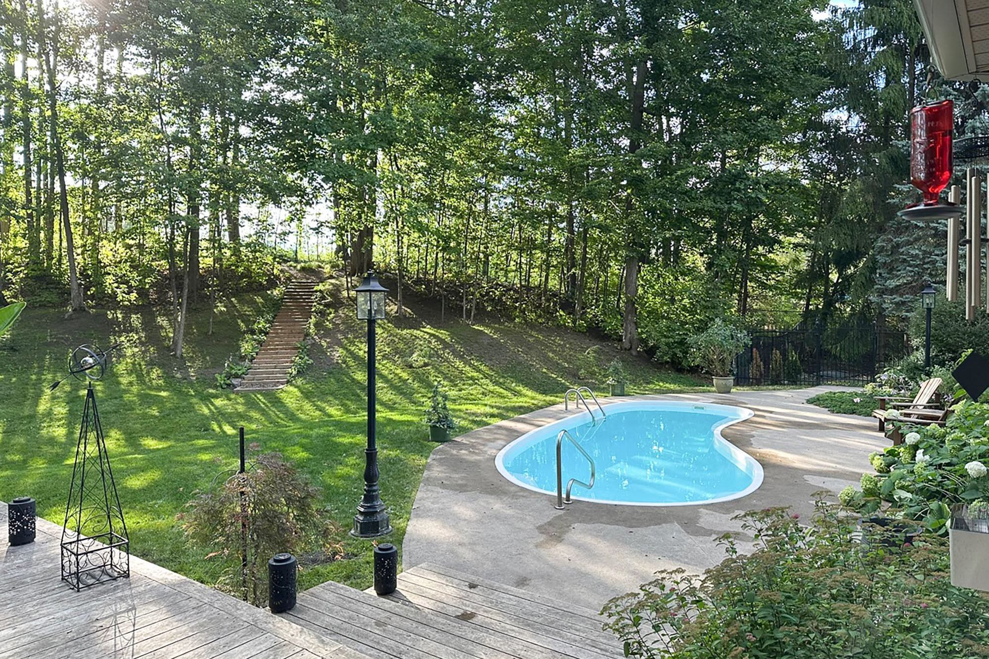 Top 5 reasons you will love this home: 1) beautifully renovated home set within a prestigious estate neighbourhood, ideally positioned on a sprawling one-acre lot with tranquil greenspace stretching behind, offering a rare balance of privacy and natural beauty while creating a peaceful retreat in an established community 2) appreciate the upgraded kitchen showcasing quality craftsmanship with elegant quartz countertops, a timeless neutral backsplash, and a large centre island perfect for gathering, meal preparation, and casual dining, all complemented by thoughtfully designed cabinetry and functional storage 3) fully fenced backyard oasis featuring a sparkling saltwater pool and a spacious 20'x27' deck ideal for lounging or entertaining, complemented by a charming gazebo and remote-controlled outdoor lighting, all beautifully surrounded by lush gardens, mature trees, and exceptional privacy, creating a serene and inviting outdoor retreat 4) sprawling newly finished basement offering exceptional additional living space, complete with a guest bedroom and a stylish full bathroom featuring quartz countertops, along with ample room to create a home gym, hobby area, additional bedrooms, or flexible living spaces to suit your lifestyle 5) gracefully set just minutes to highway 400 and the beautiful shores of innisfil beach, offering quick commuting access while enjoying nearby waterfront recreation, scenic views, and relaxing lakeside escapes. 2,188 above grade sq. Ft. Plus a finished basement. *please note some images have been virtually staged to show the potential of the home.